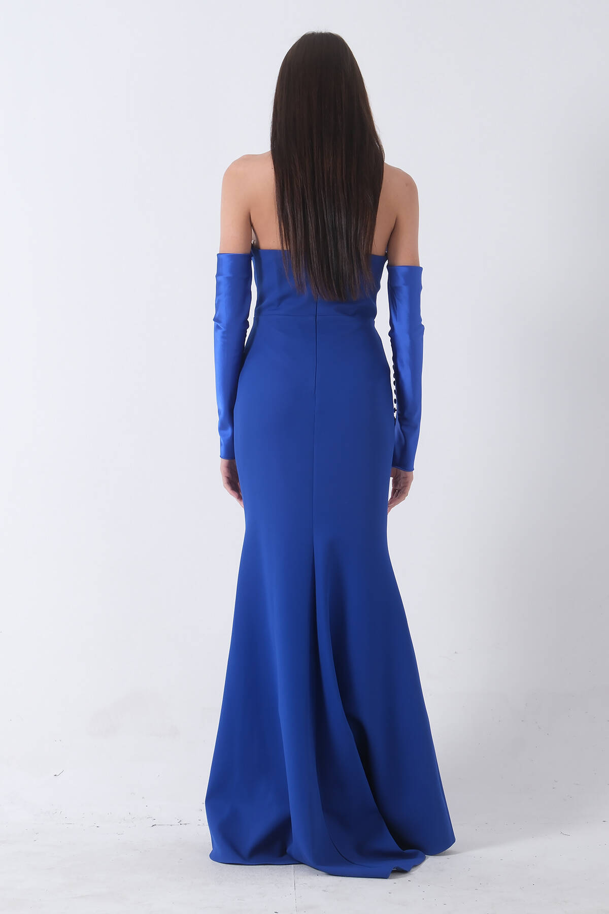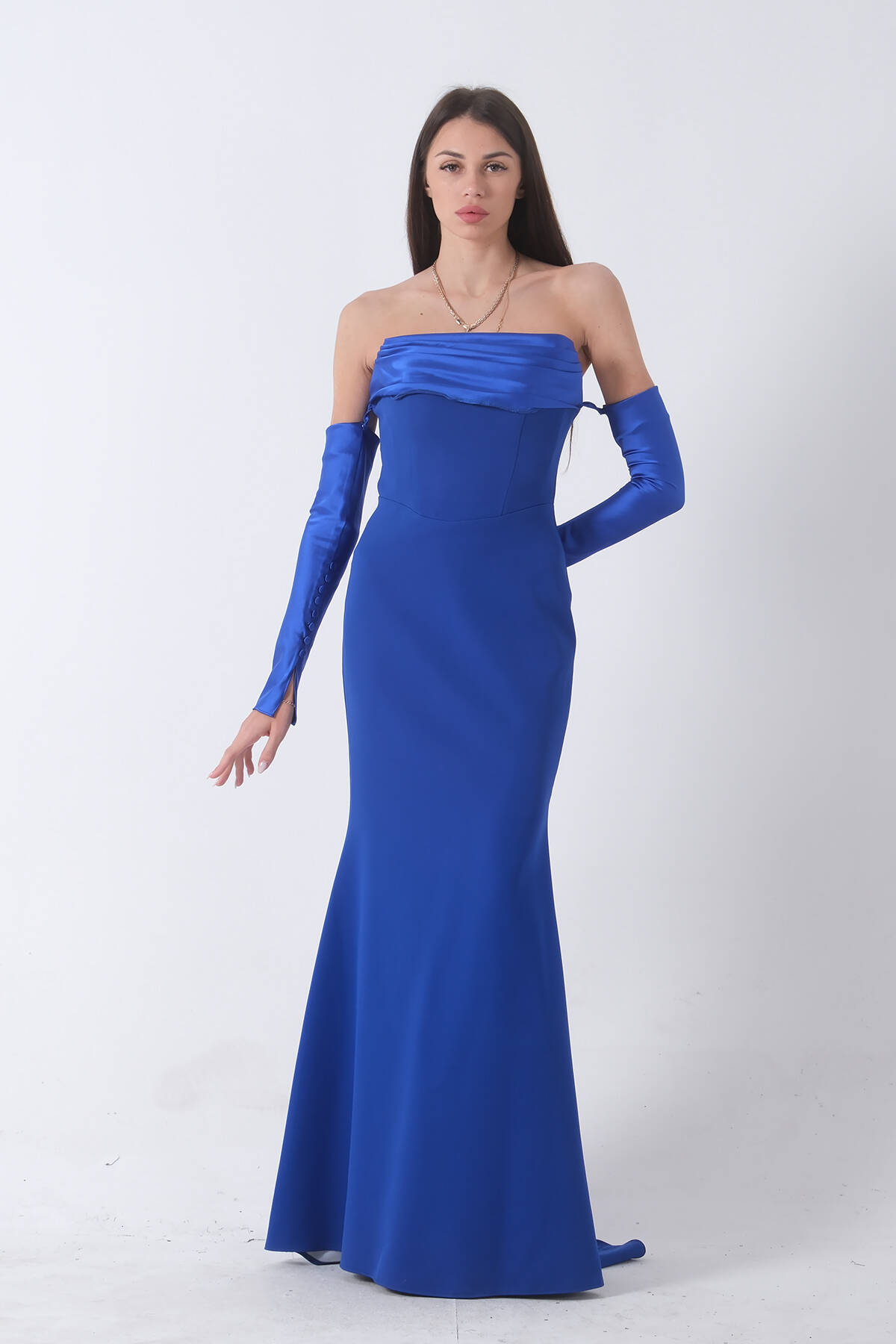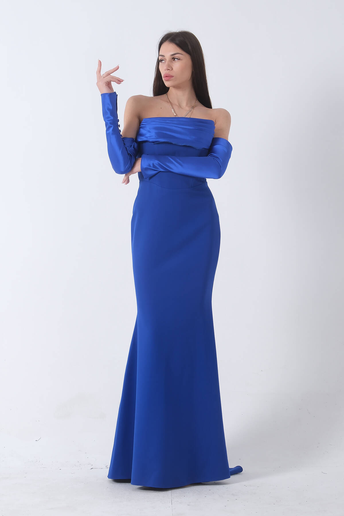 Saks Drapeli Düğme Detaylı Uzun Abiye 9705361.26