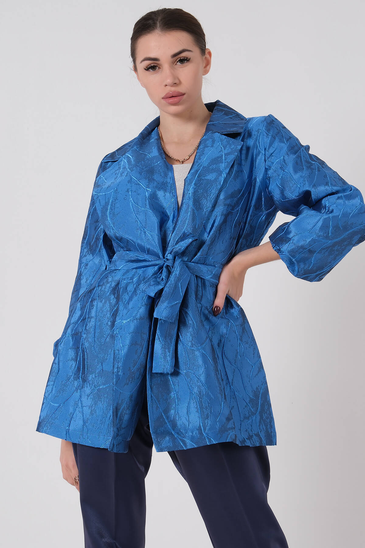 Siyah Yakalı Kendinden Pelerinli Kemerli Deri Ceket 5309366.01