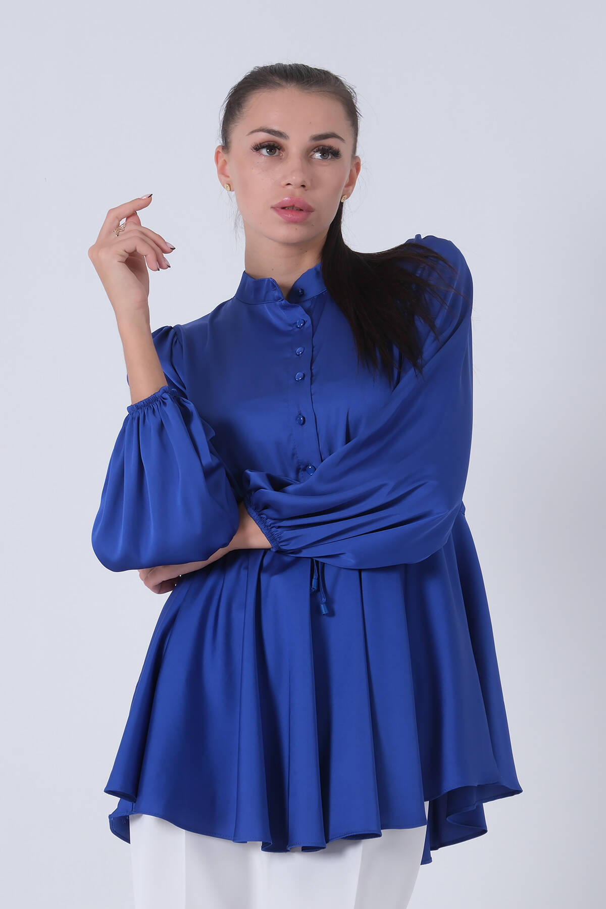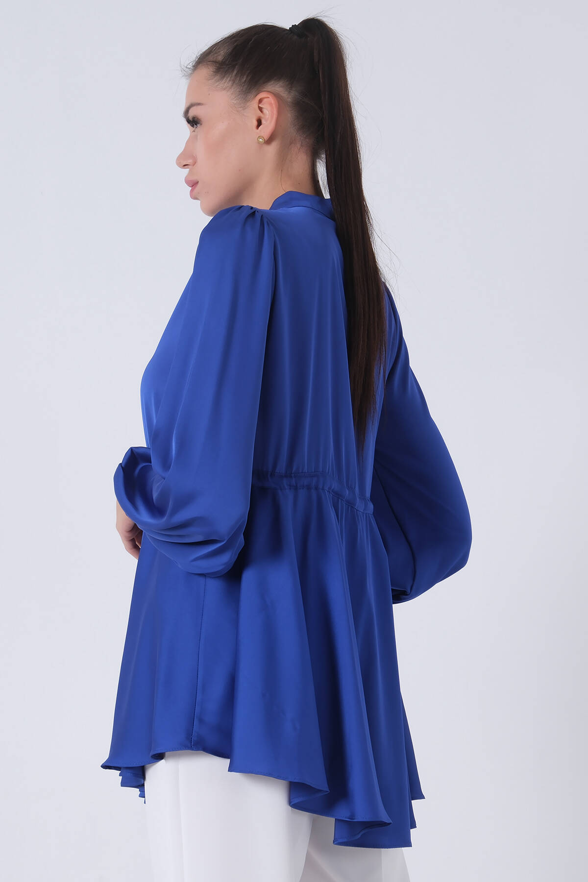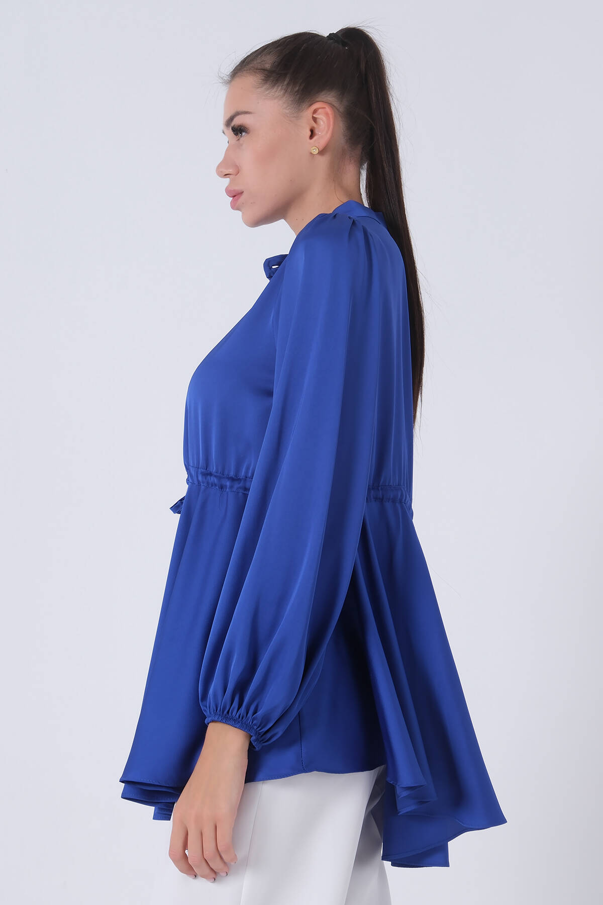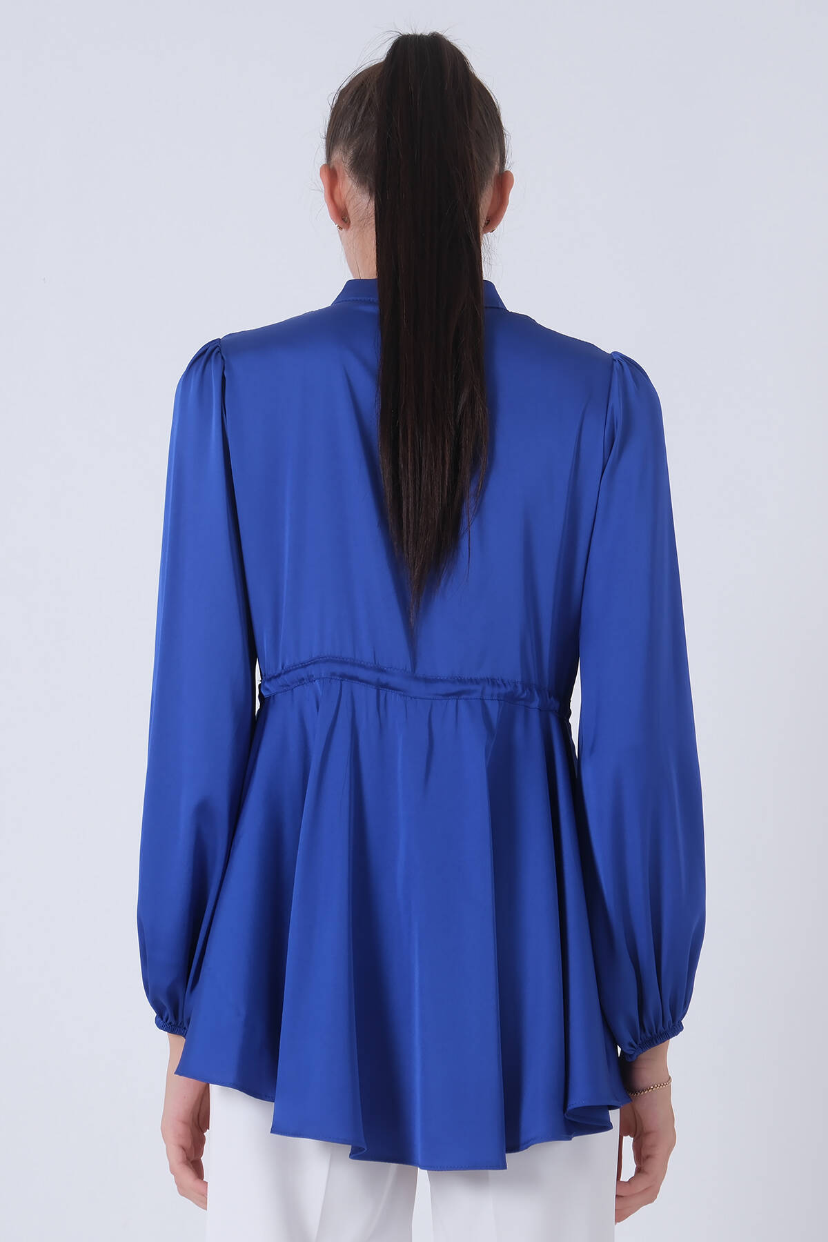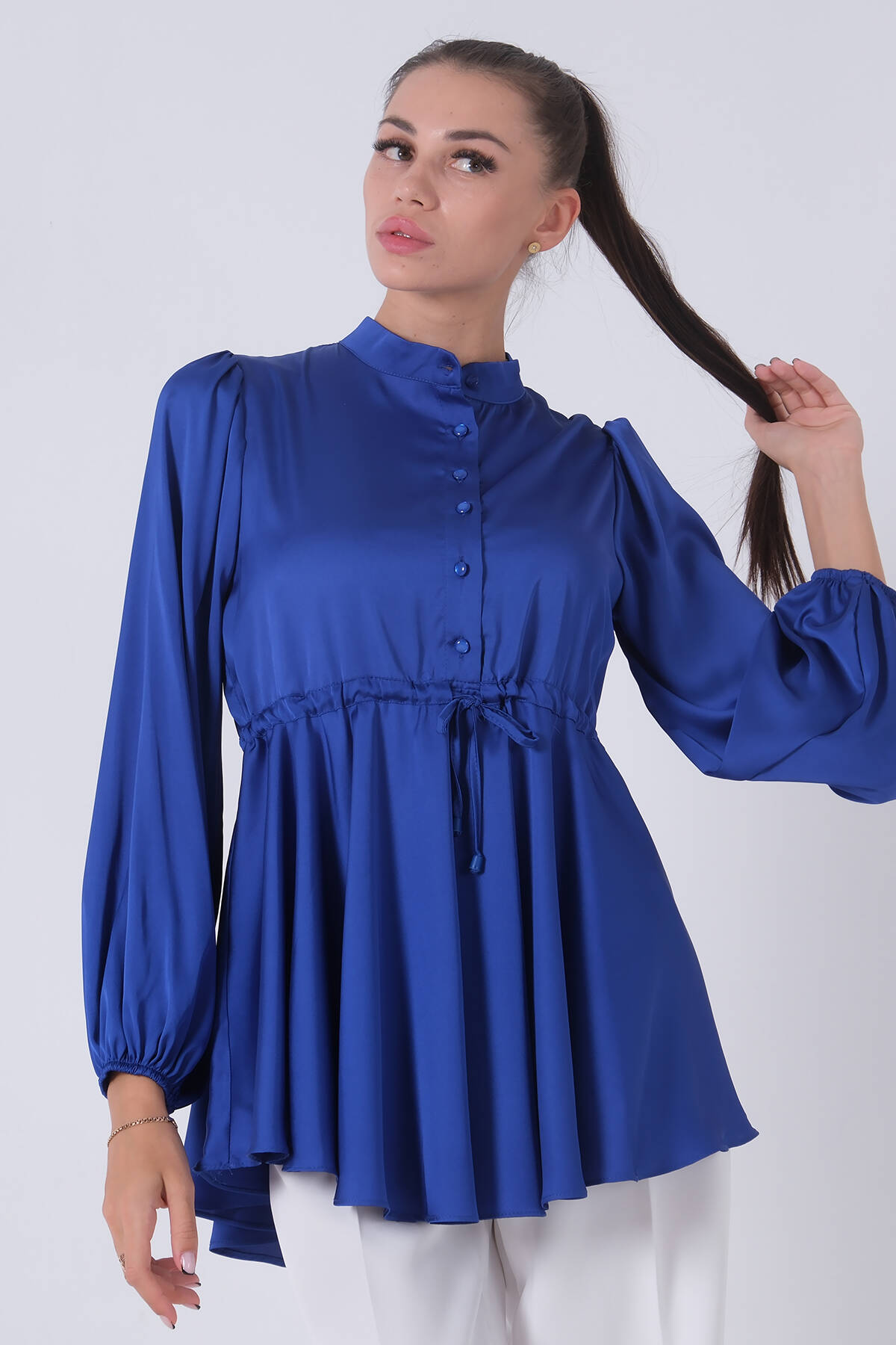 Saks Kolu Lastikli Belden Bağlamalı Saten Tunik 44510418.26