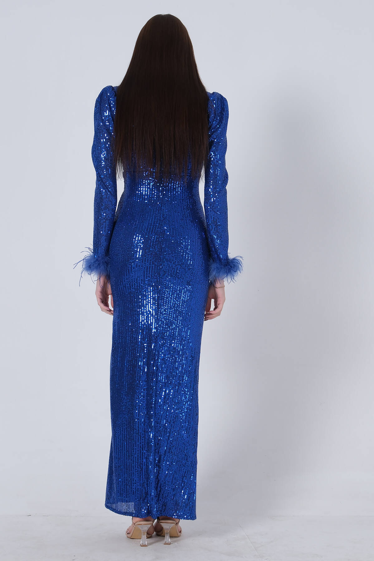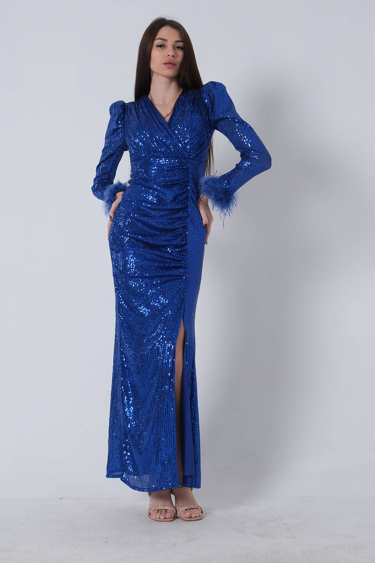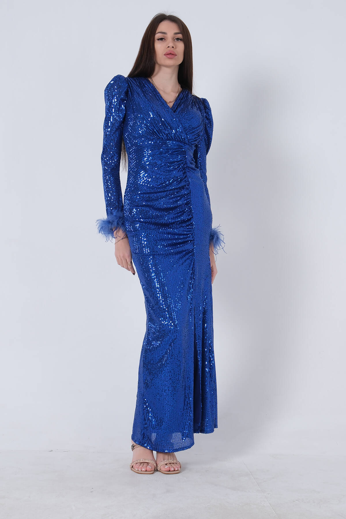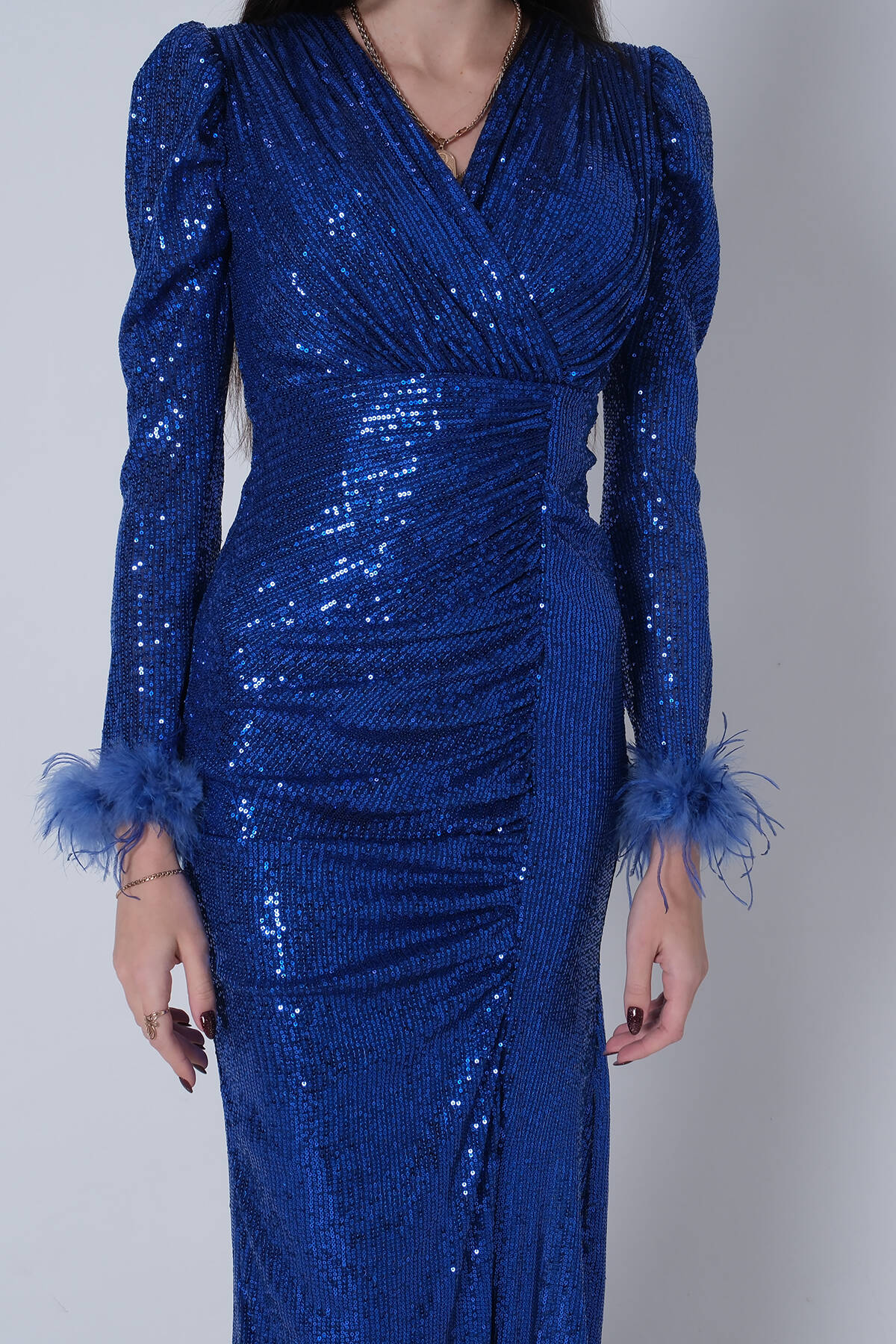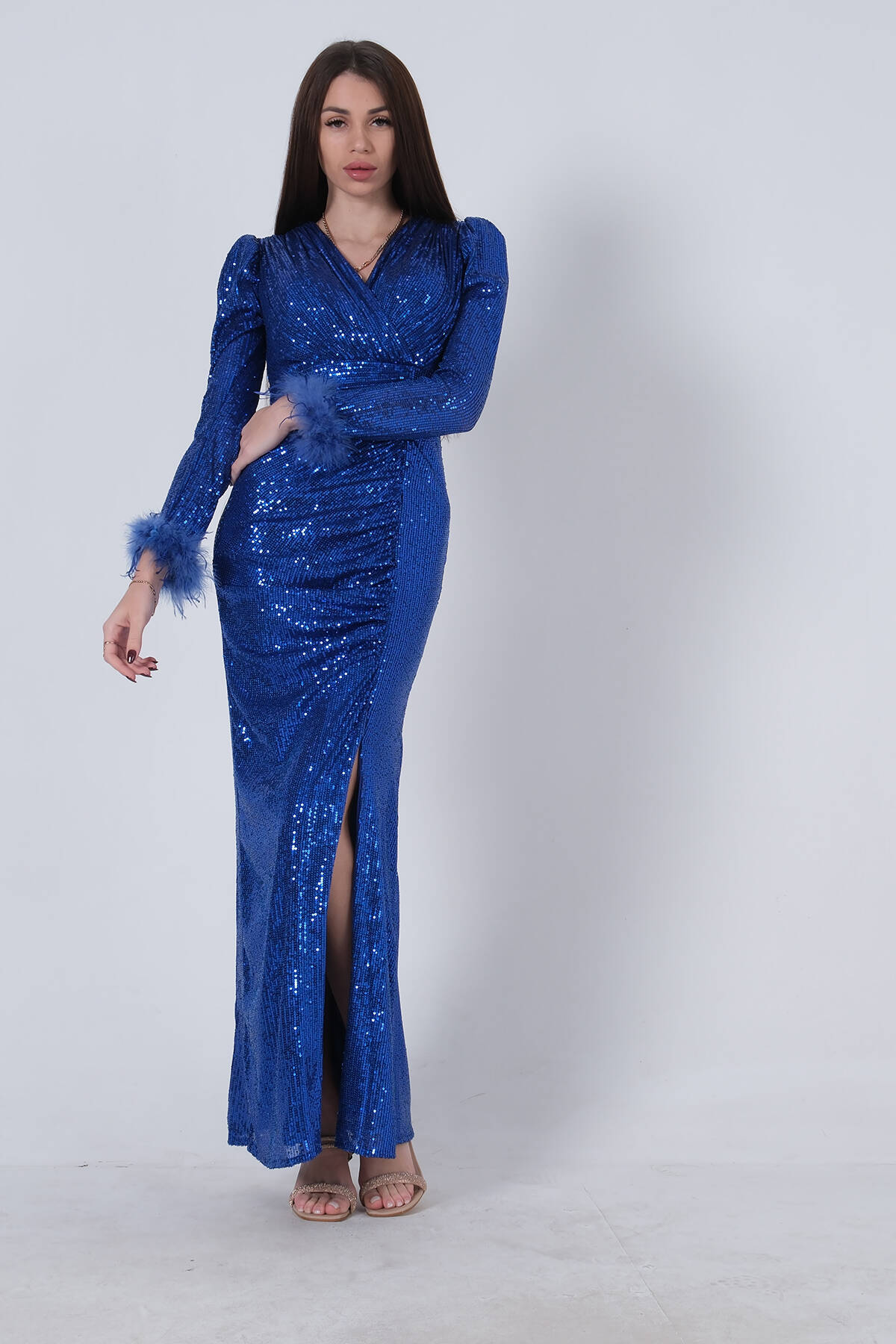 Saks Kruvaze Yaka Kol Ucu Tüylü Pul Payet Abiye 9705182.26