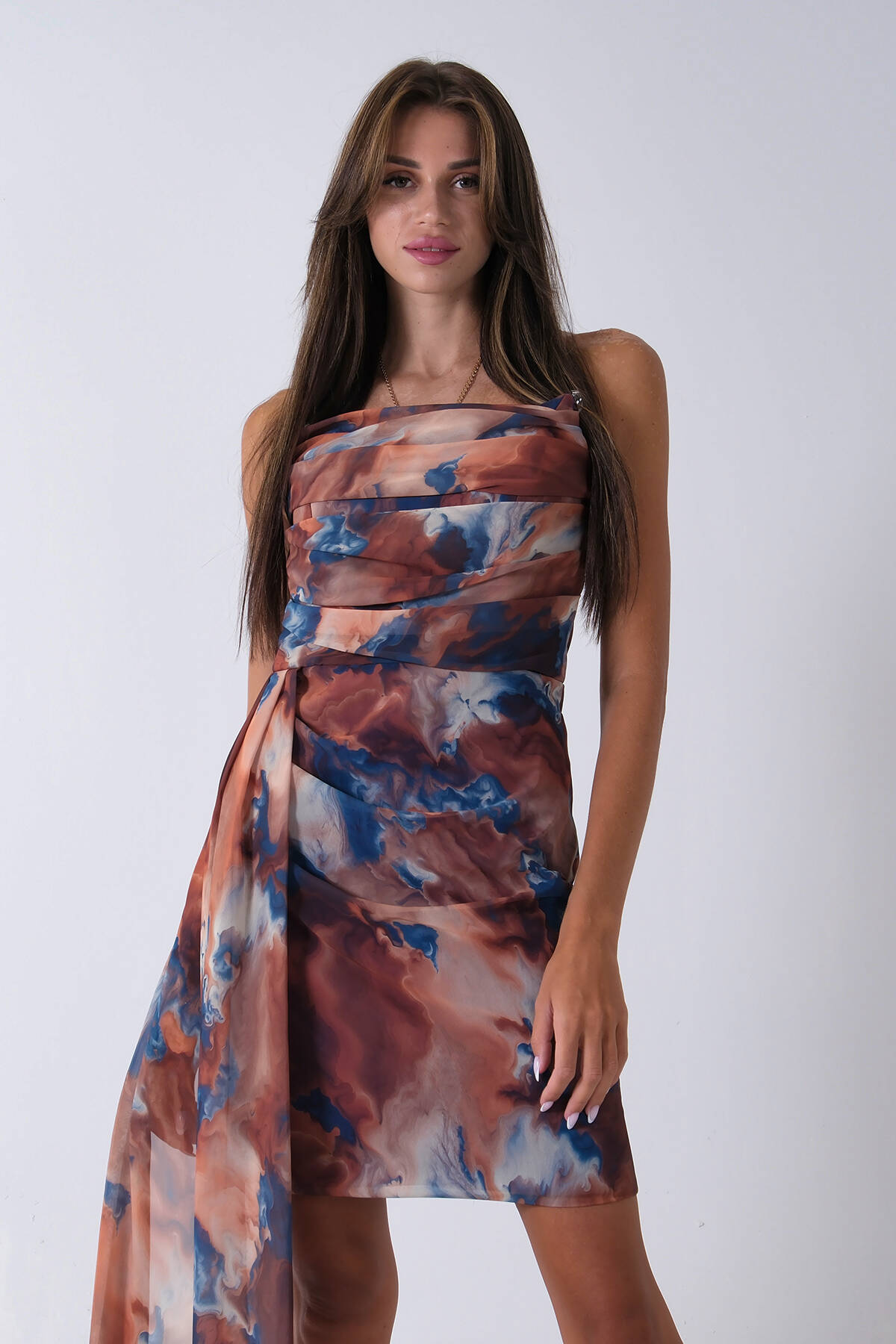 Saks Midi Boy Desenli Tül Şifon Abiye 0802002.26