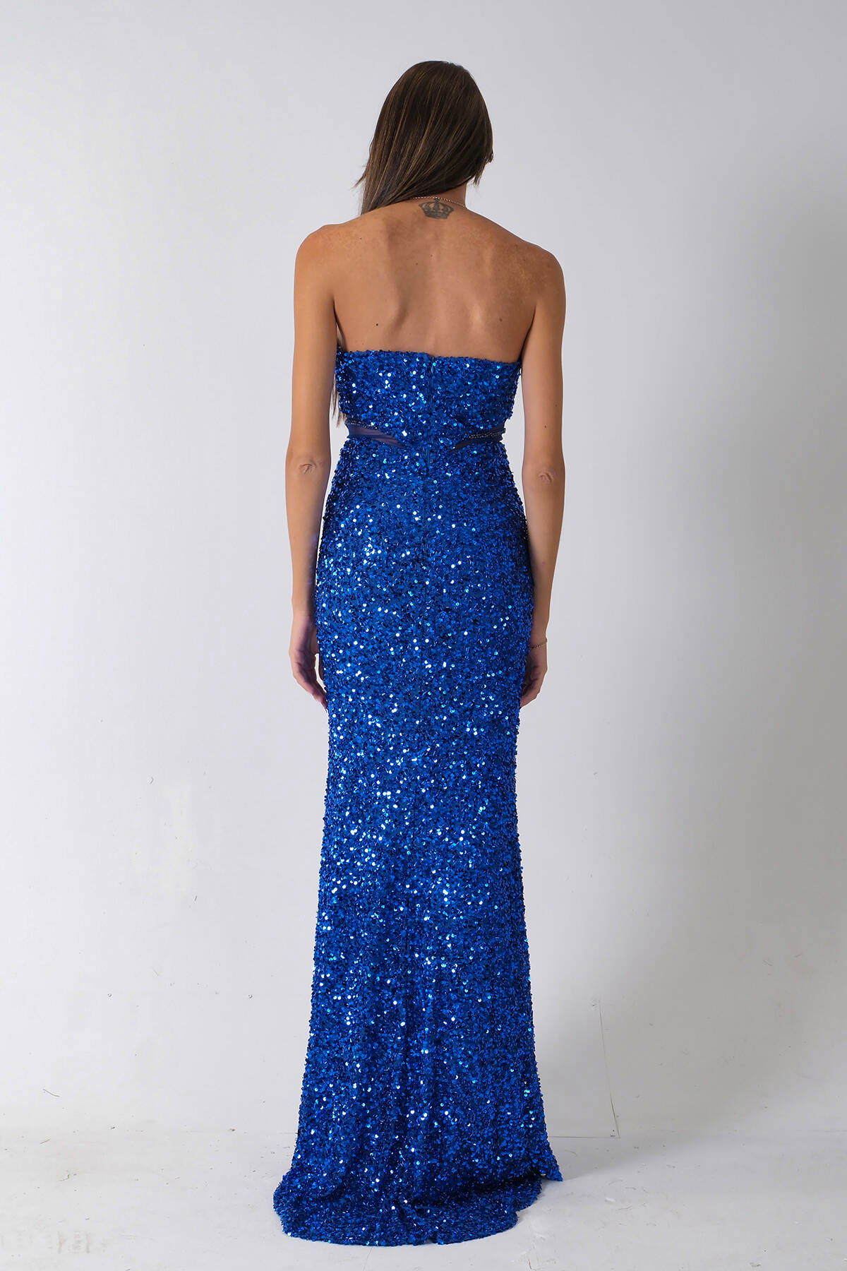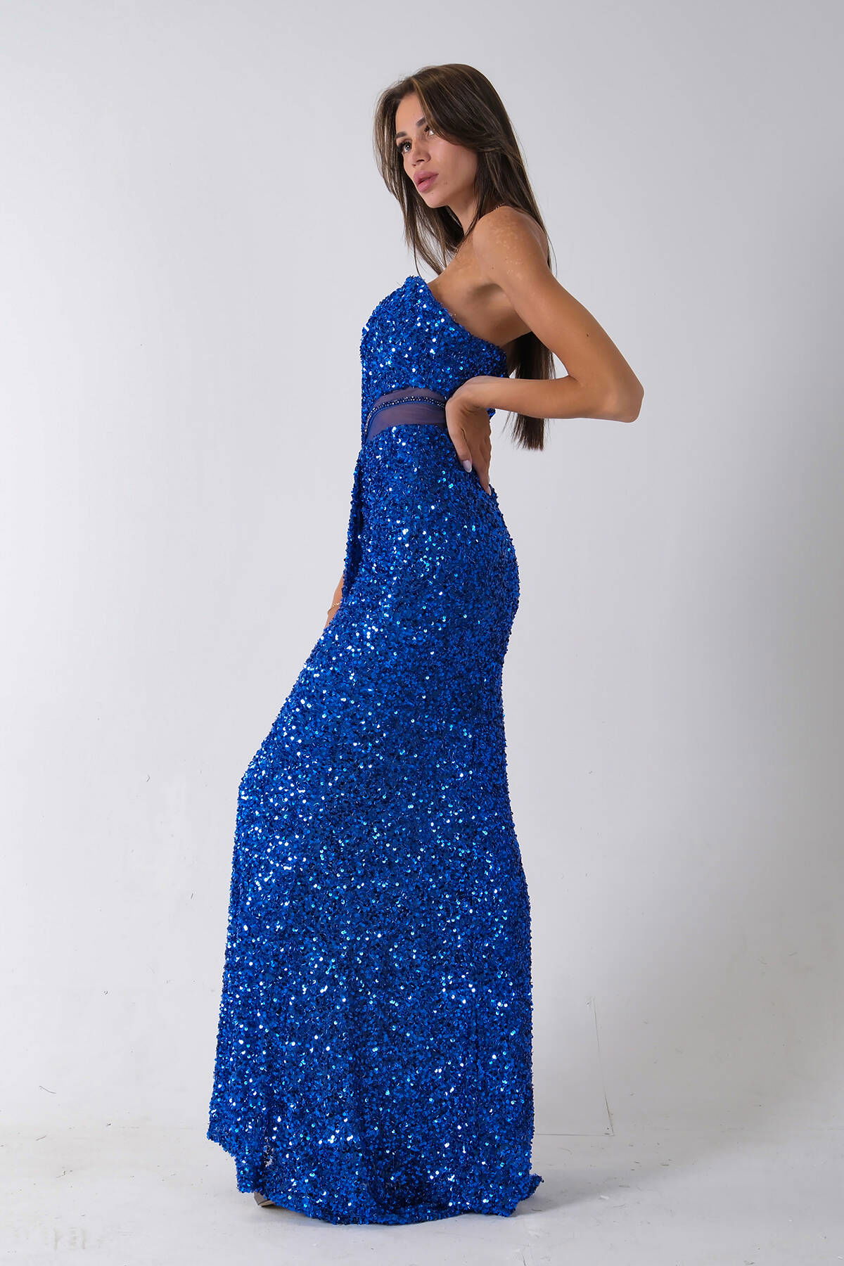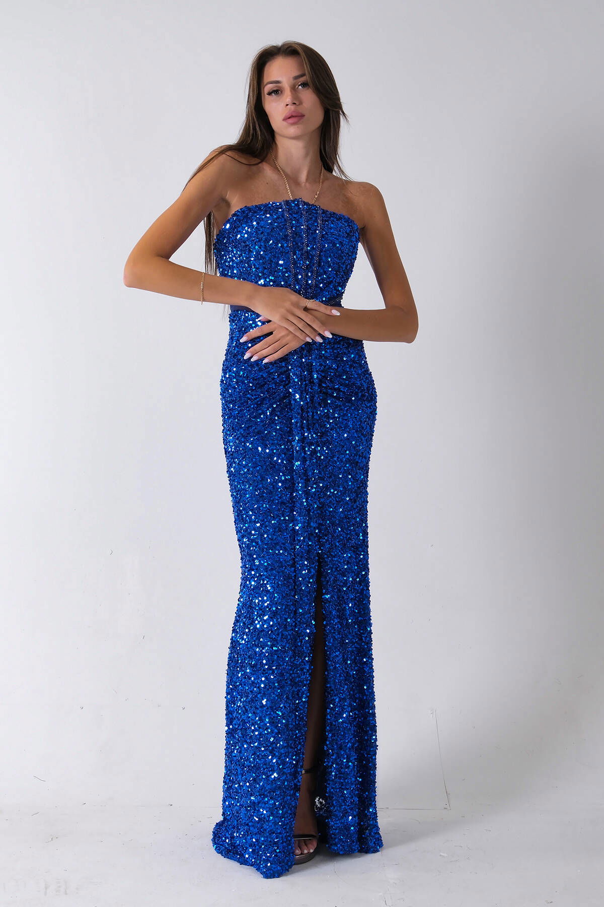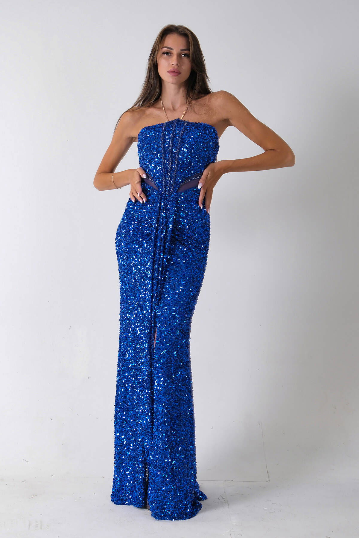 Saks Önü Taş Detaylı Yırtmaçlı Pul Payet Straplez Abiye 0801163.26