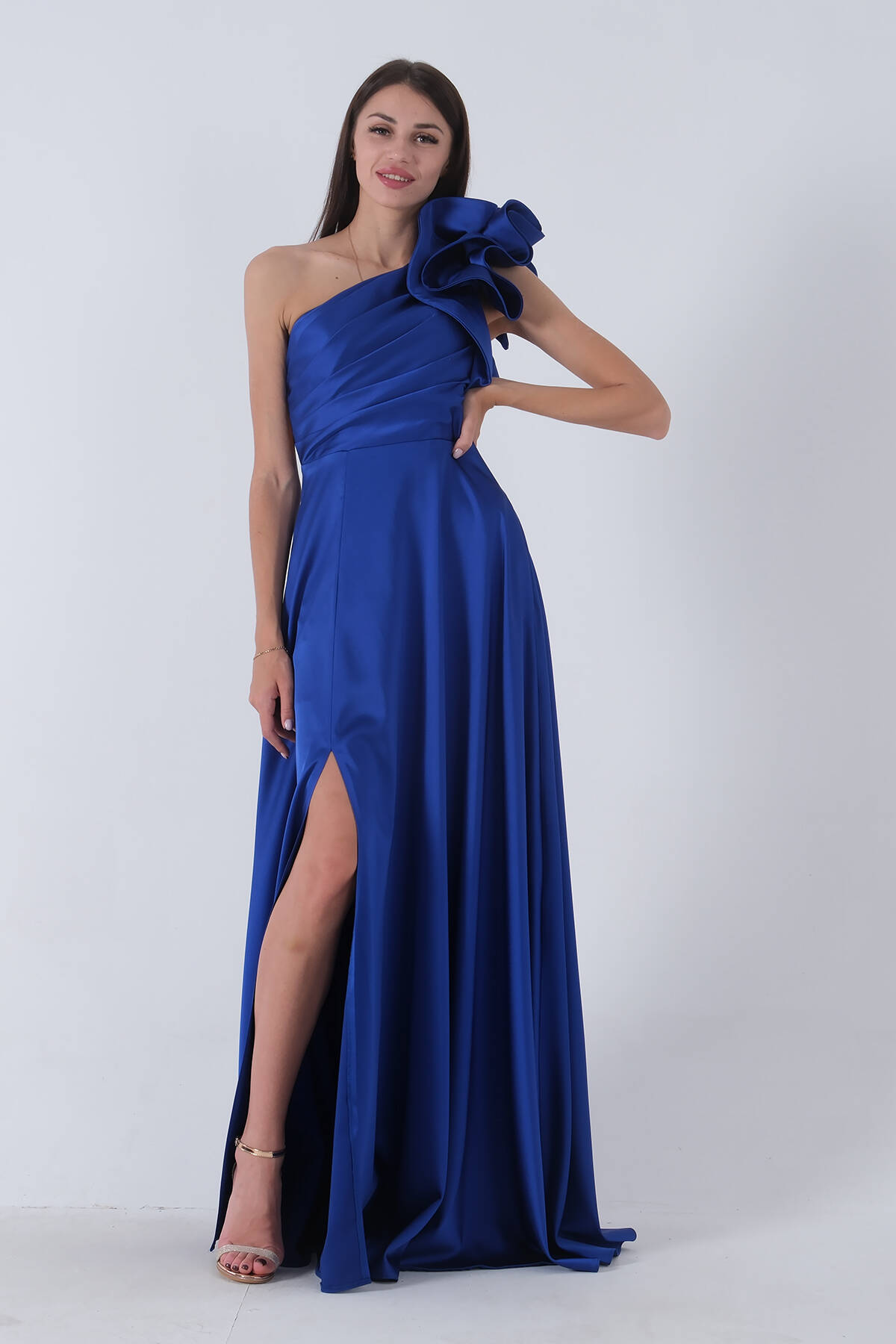 Saks Saten Omuz Fiyonklu Abiye Elbise 1302192.26