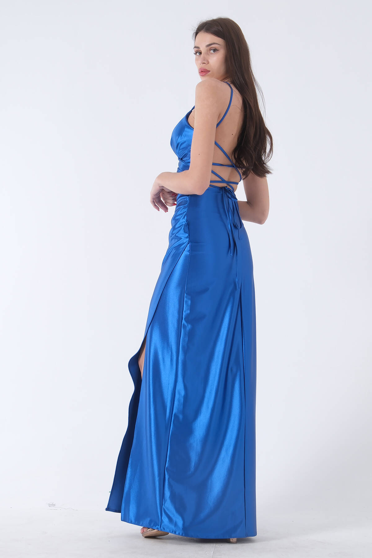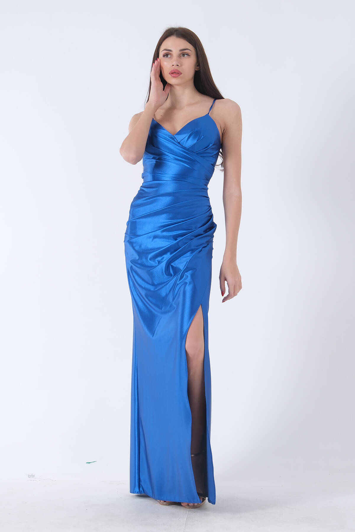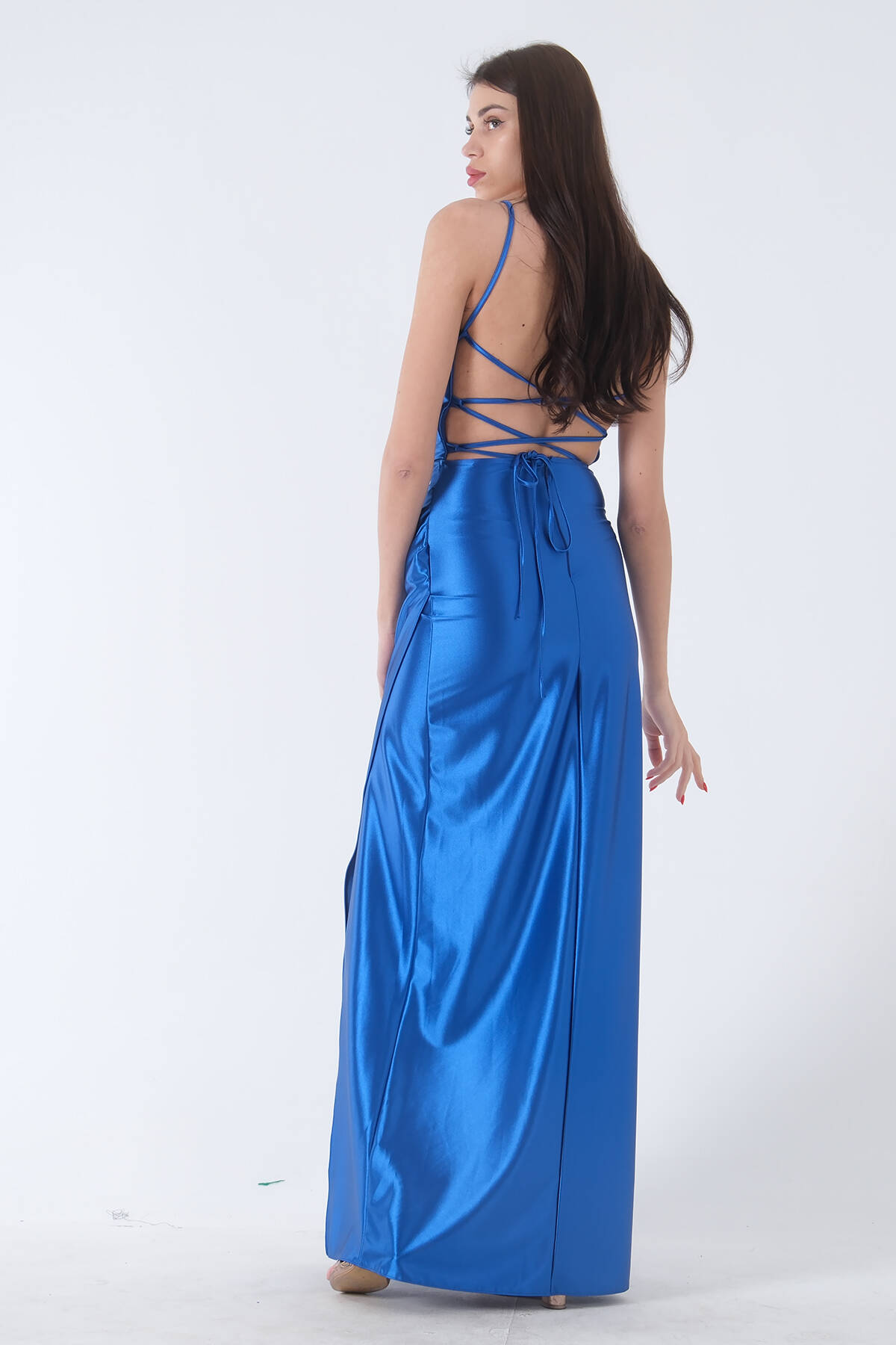 Modelin Ölçüleri : Boy: 1.80 cm / Göğüs: 88 cm / Bel: 69 cm /Basen : 94 cm Mankenin Üzerindeki Ürün 38/M Bedendir %100 Polyester İnce Askılı V Yaka Drape Detaylı Sırt Dekoltesi Bedene Göre Ayarlanabilir Bağcıklı Yırtmaçlı Saten Abiye Elbise Ürün Boyu : 150 cm Stüdyo Çekimlerinde Renkler Işık Farklılıgından Dolayı Değişiklik Gösterebilir (Dikkat! Ürünlerimiz güvenlik bandı ile gönderilmektedir . Güvenlik bandı olmayan ürünlerin iadesi kabul edilmeyecektir)