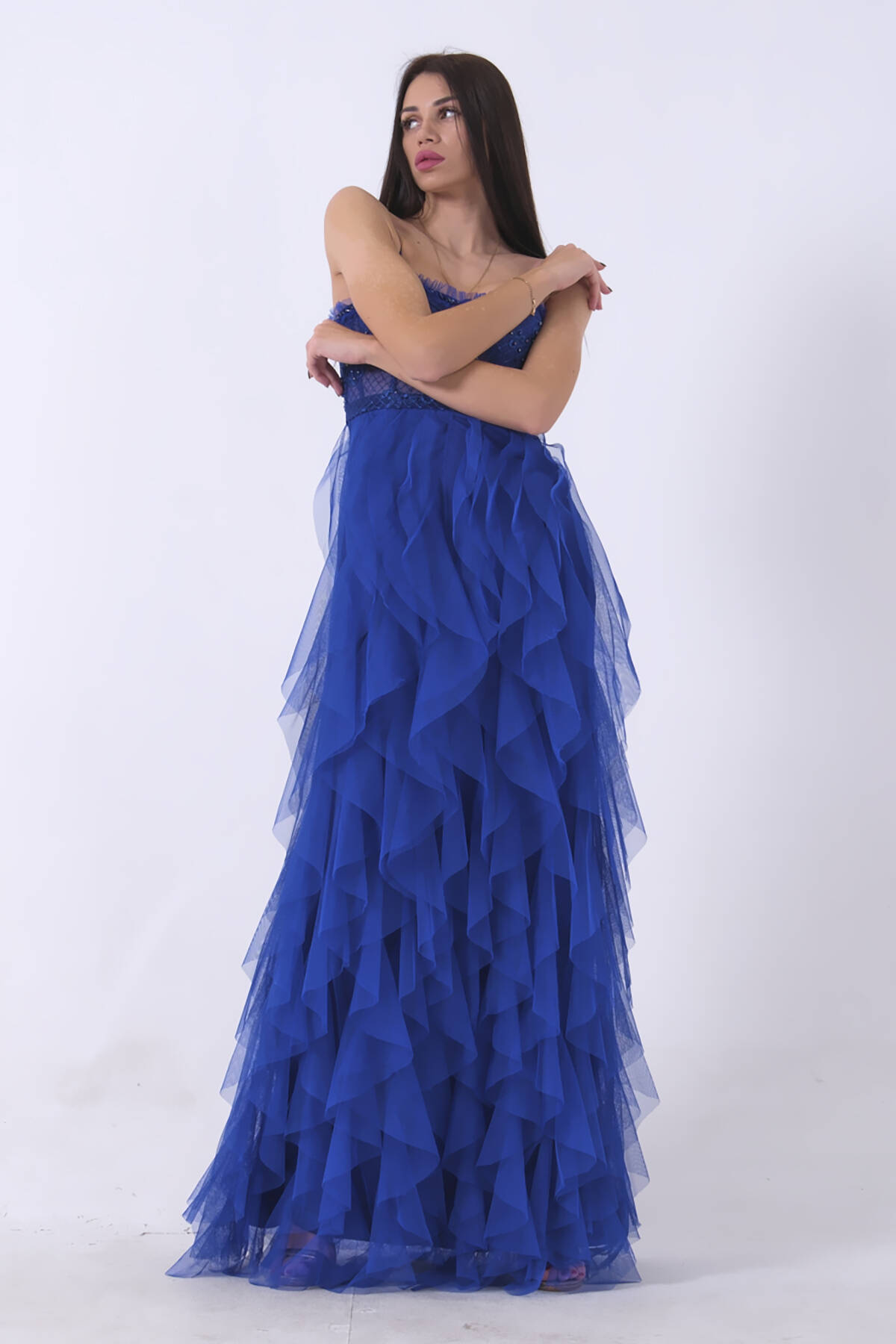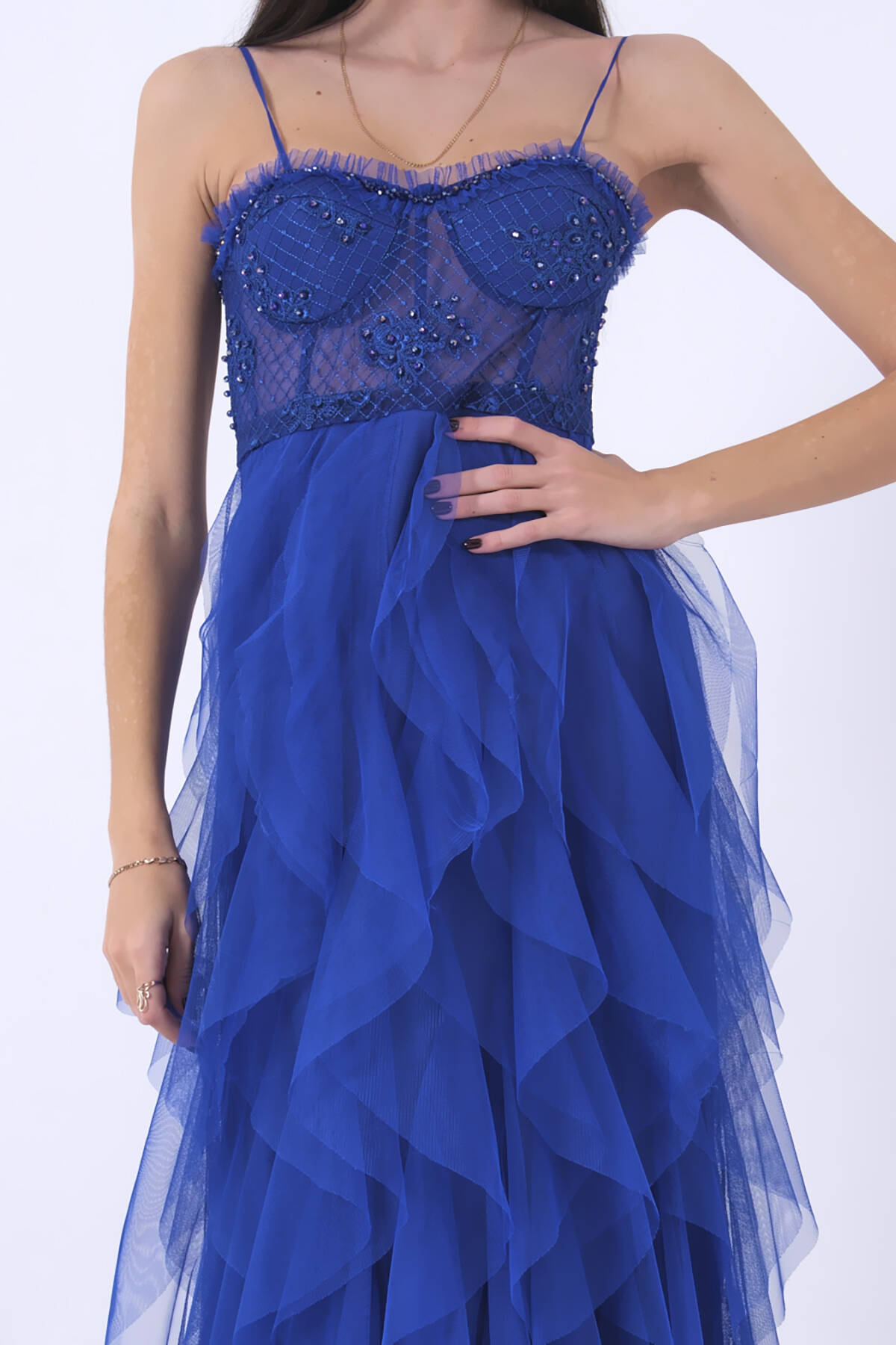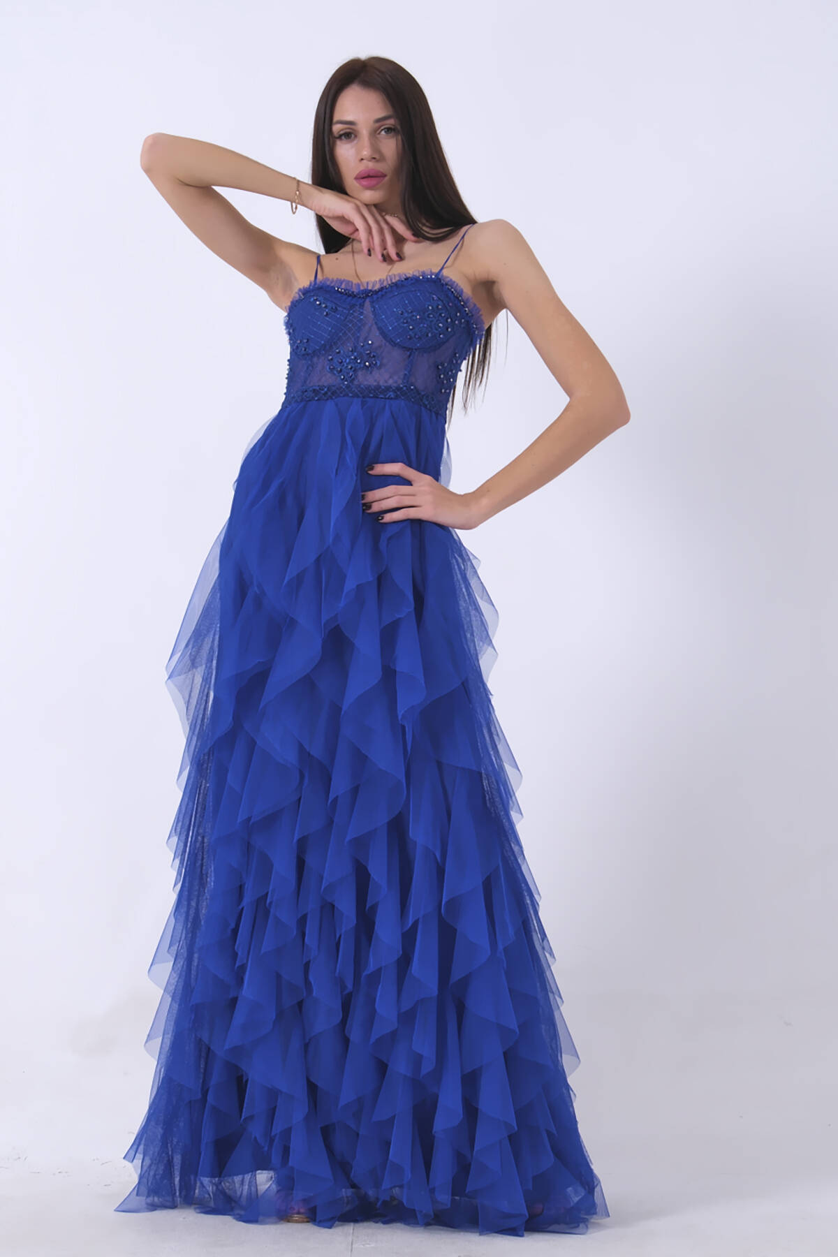 Saks Transparan Taşlı Eteği Fırfırlı Abiye 9705034.26