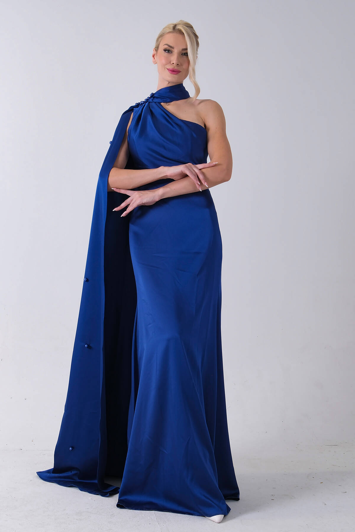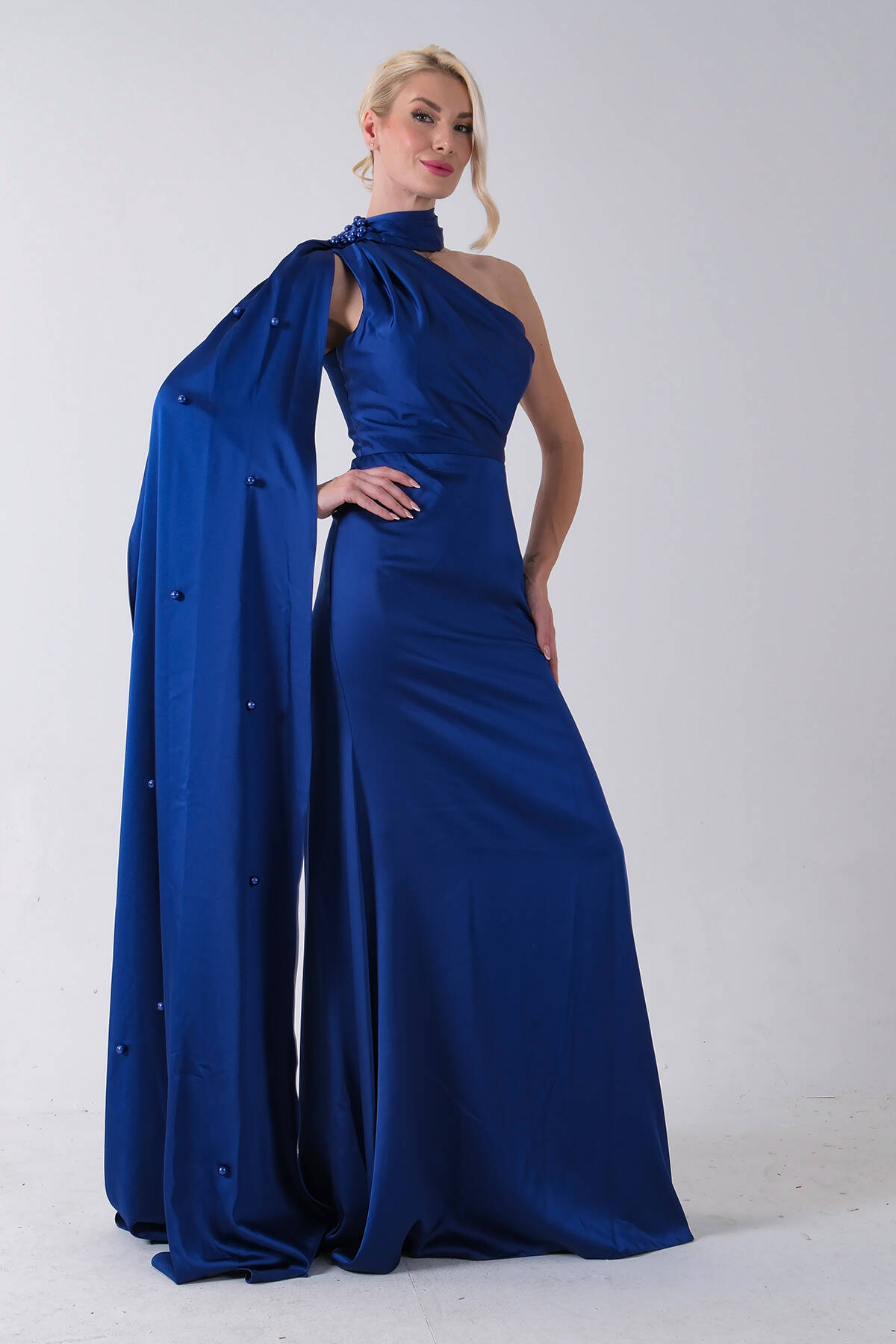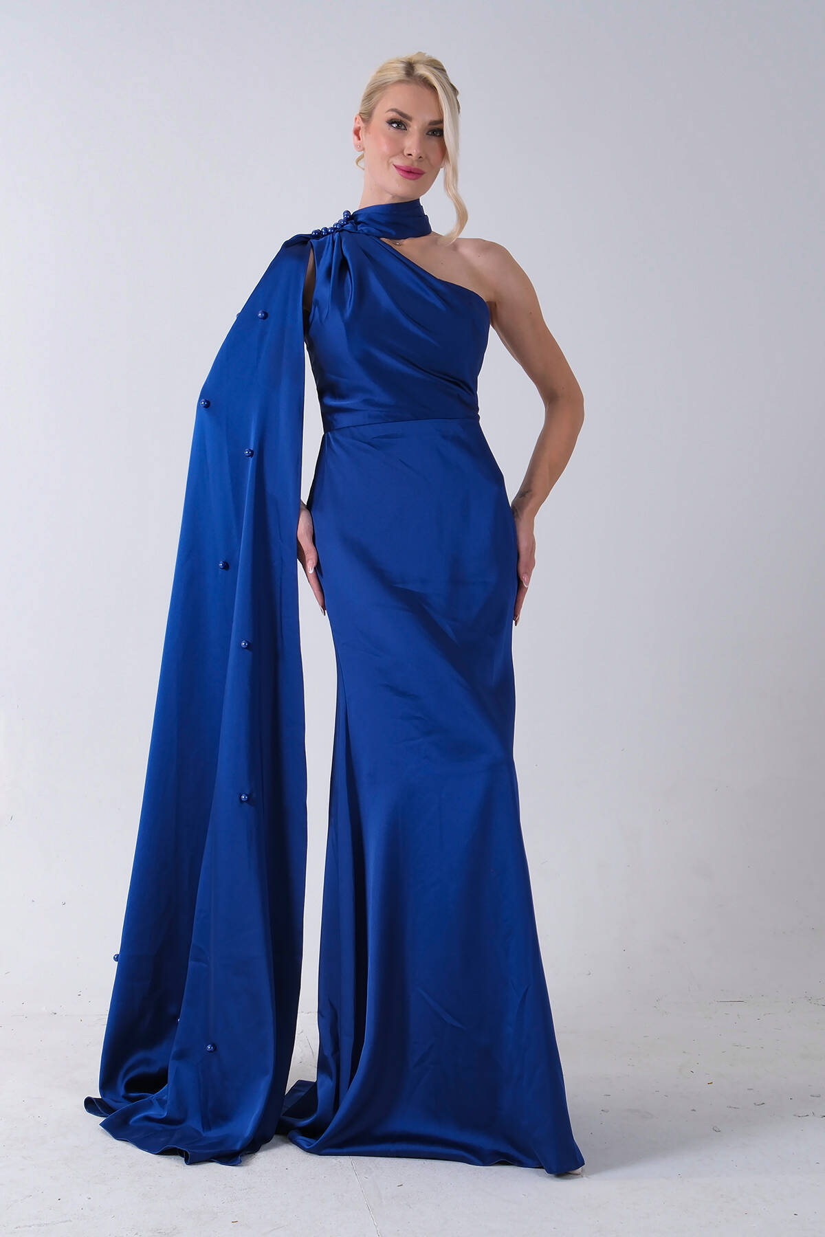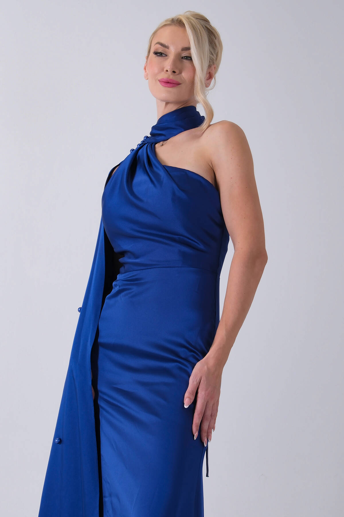 Saks Yaka Kuşak Detaylı Tek Omuz Abiye 0801099.26