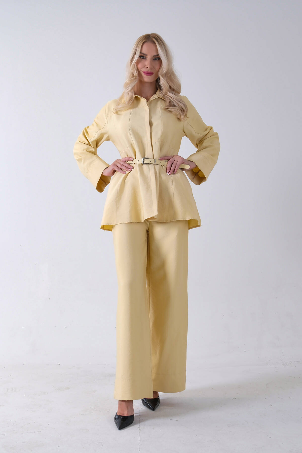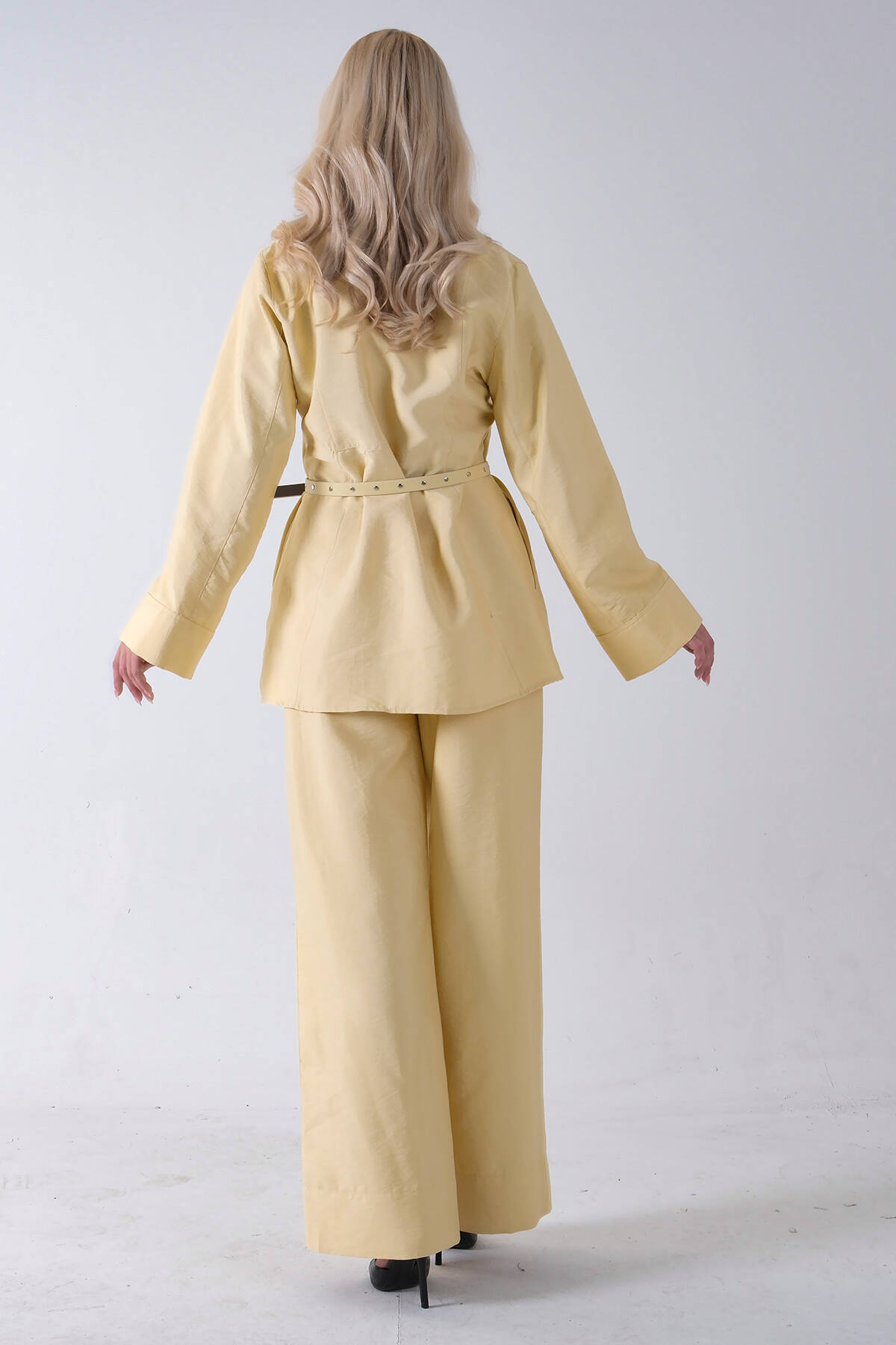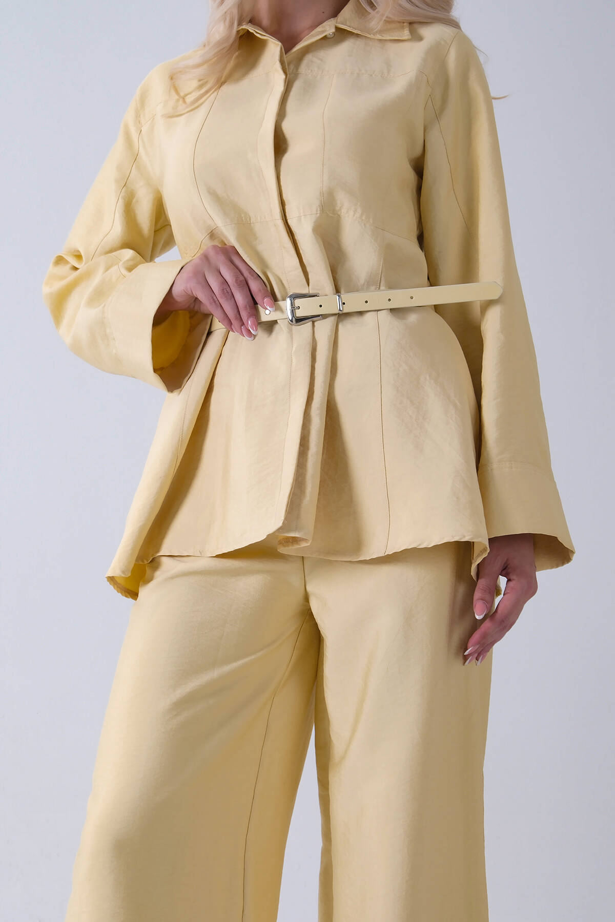 Sarı Bol Paça Pantolon Kemerli Parçalı Tunik Takım 5303167.11