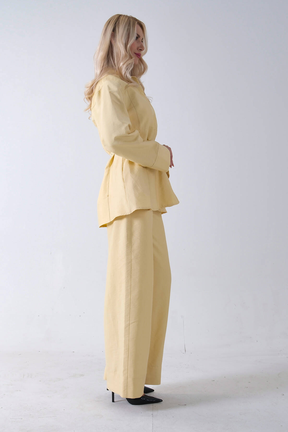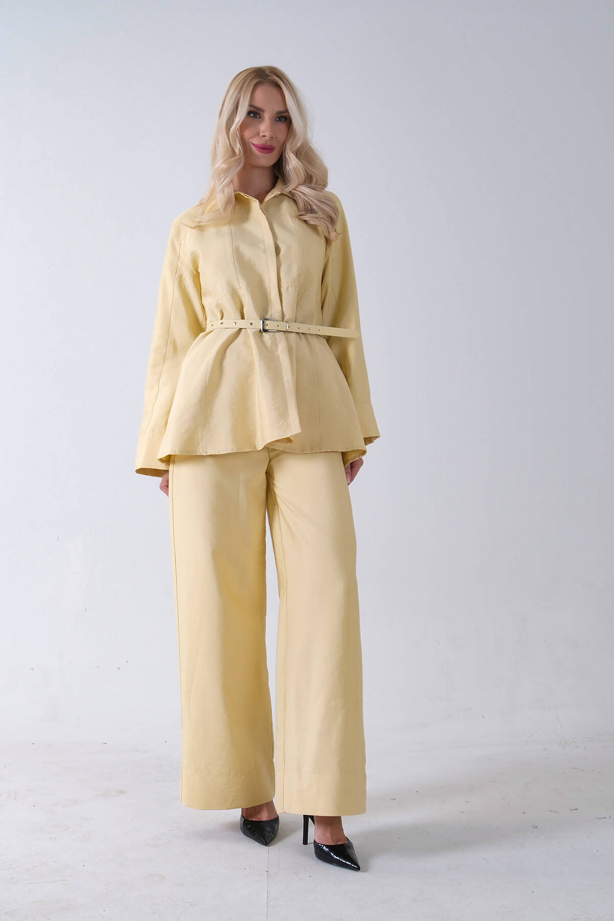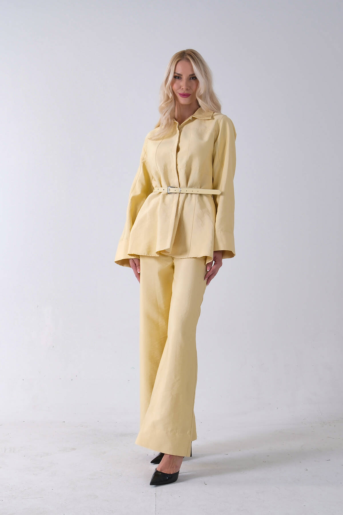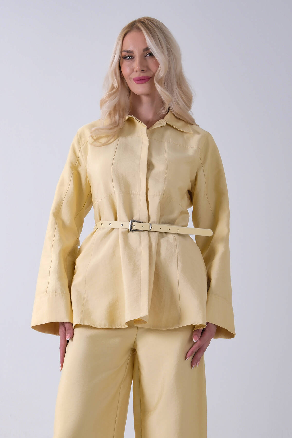Sarı Bol Paça Pantolon Kemerli Parçalı Tunik Takım 5303167.11