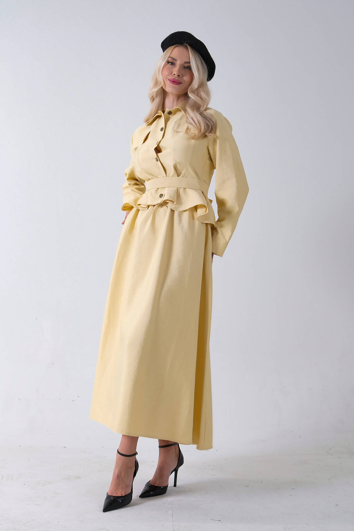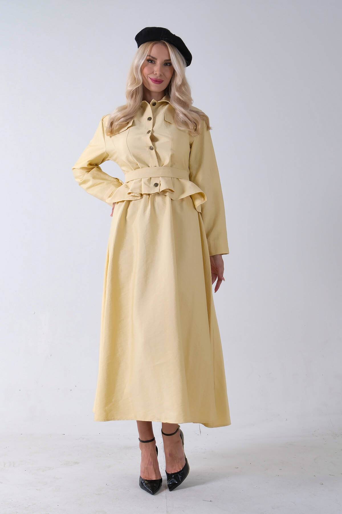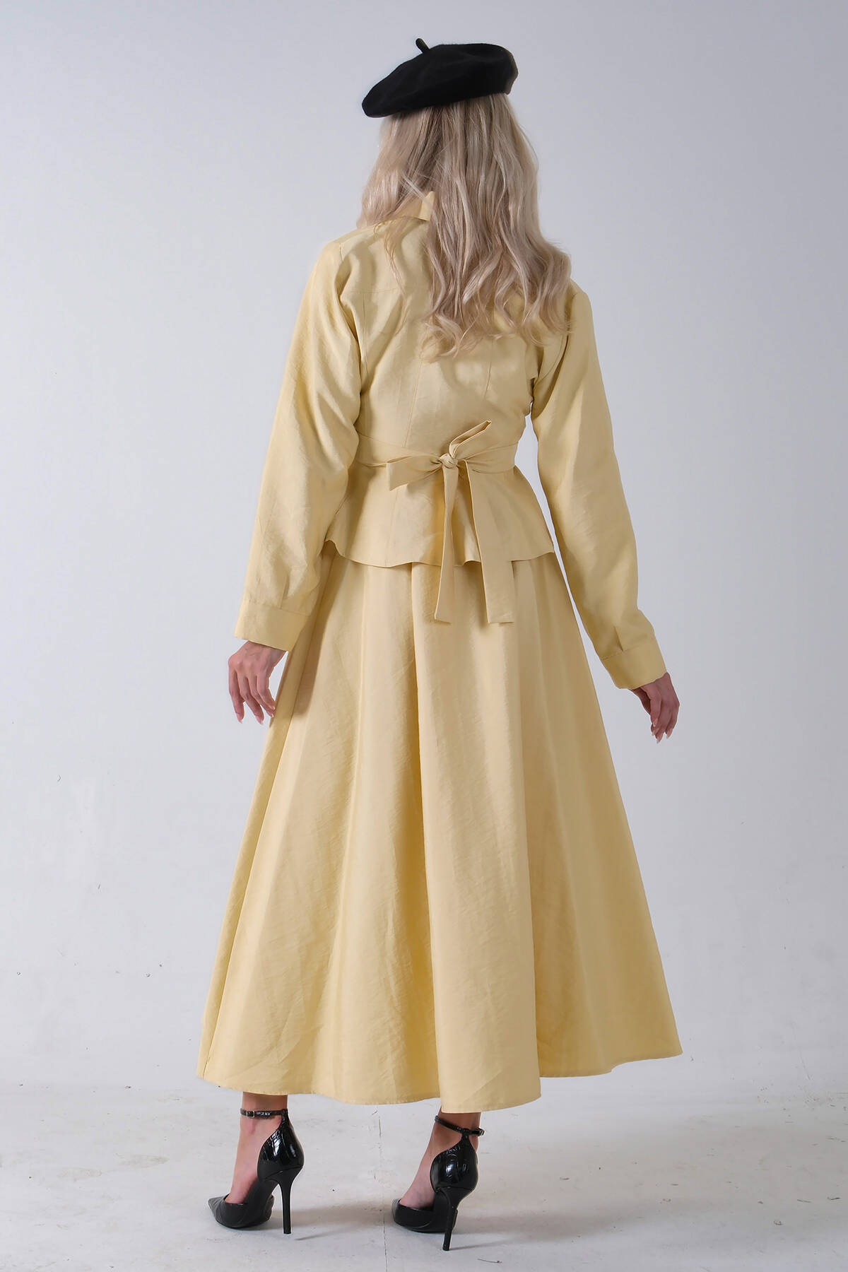 Sarı Ceket Cep Görünüm Detaylı Düğme Kapamalı Etekli Takım 5303168.11