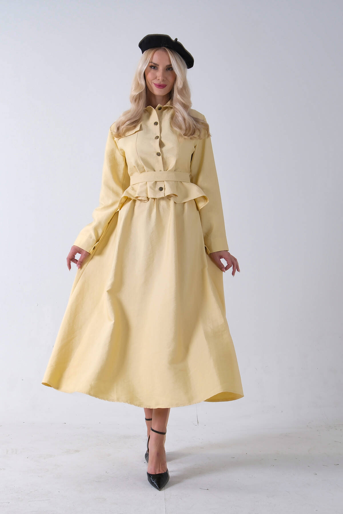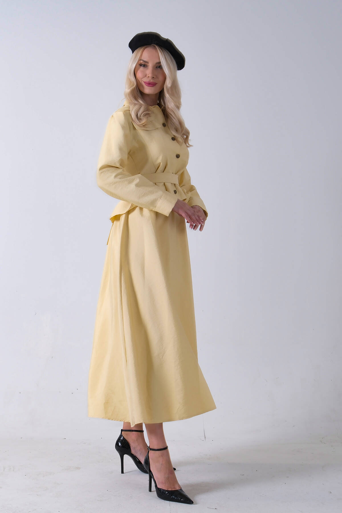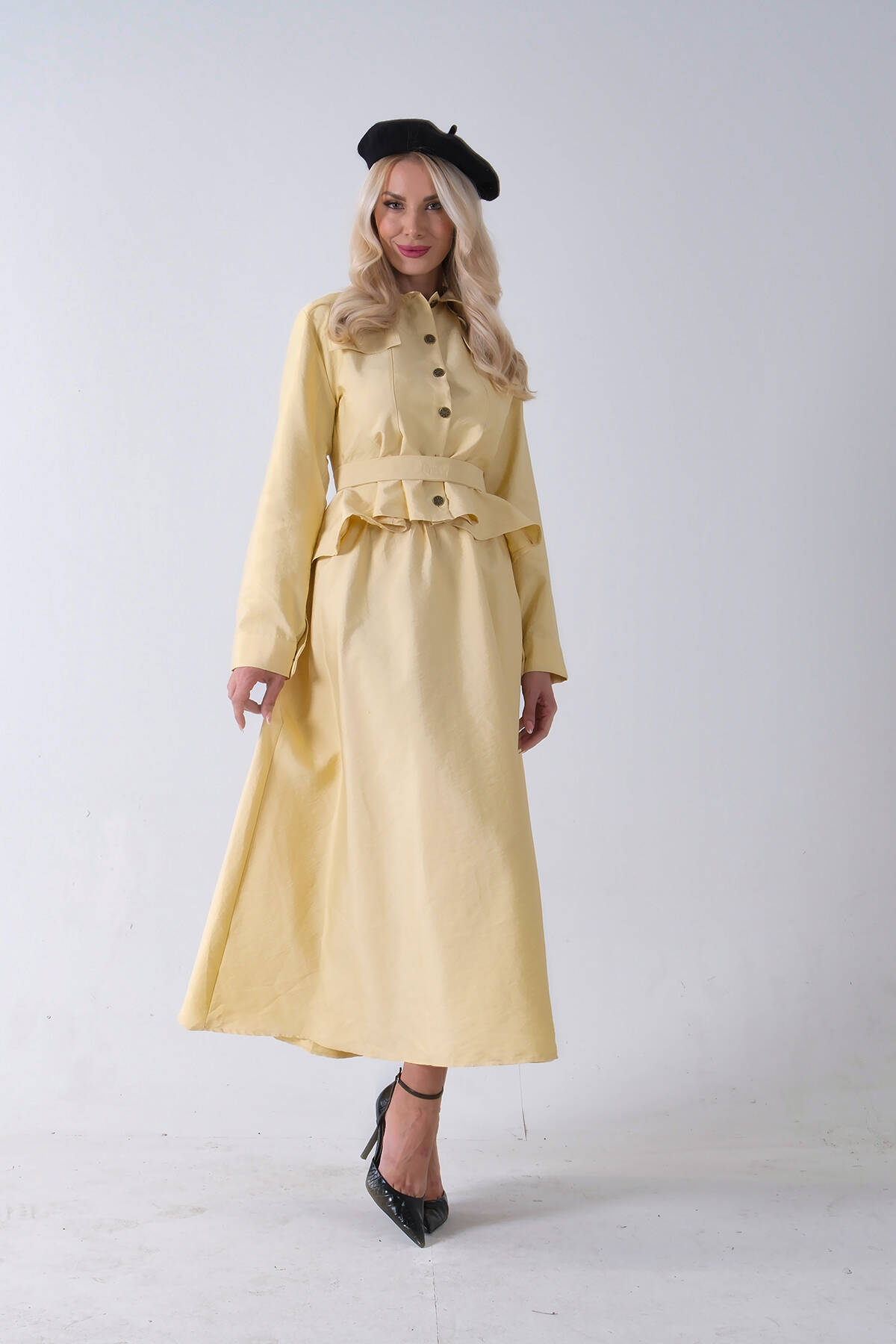 Sarı Ceket Cep Görünüm Detaylı Düğme Kapamalı Etekli Takım 5303168.11