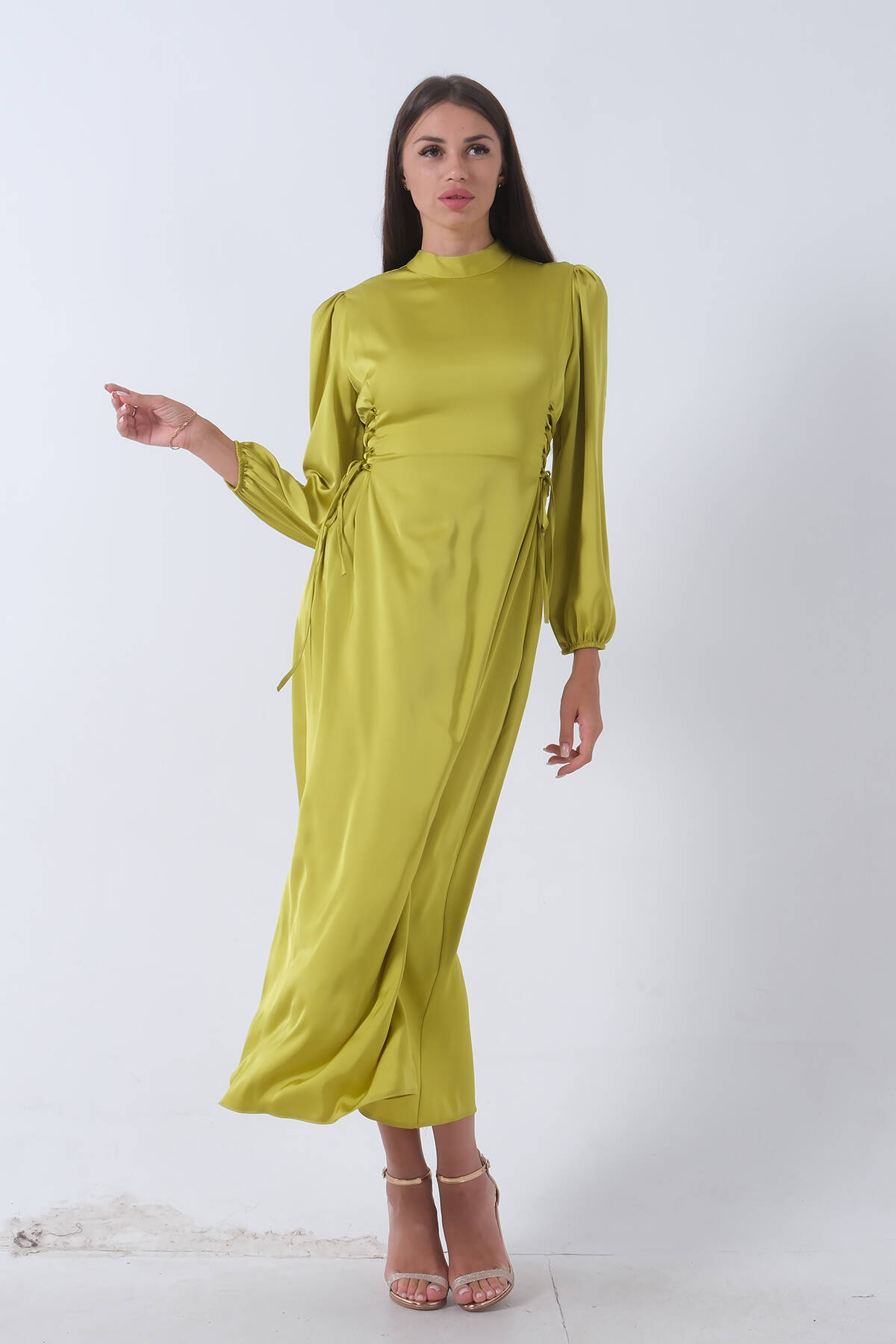 Sarı Kolları Volanlı Yandan Bağlama İp Detaylı Elbise 31061422.11