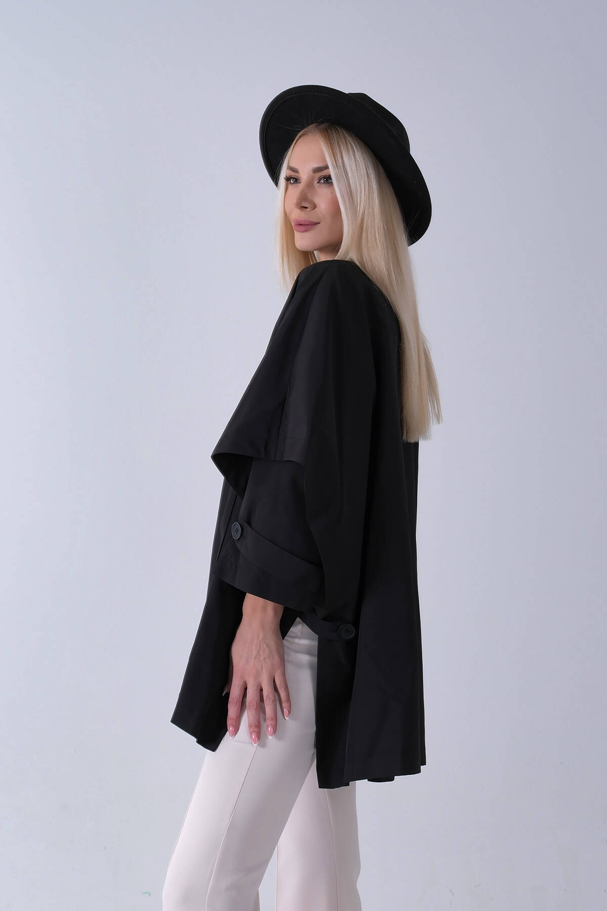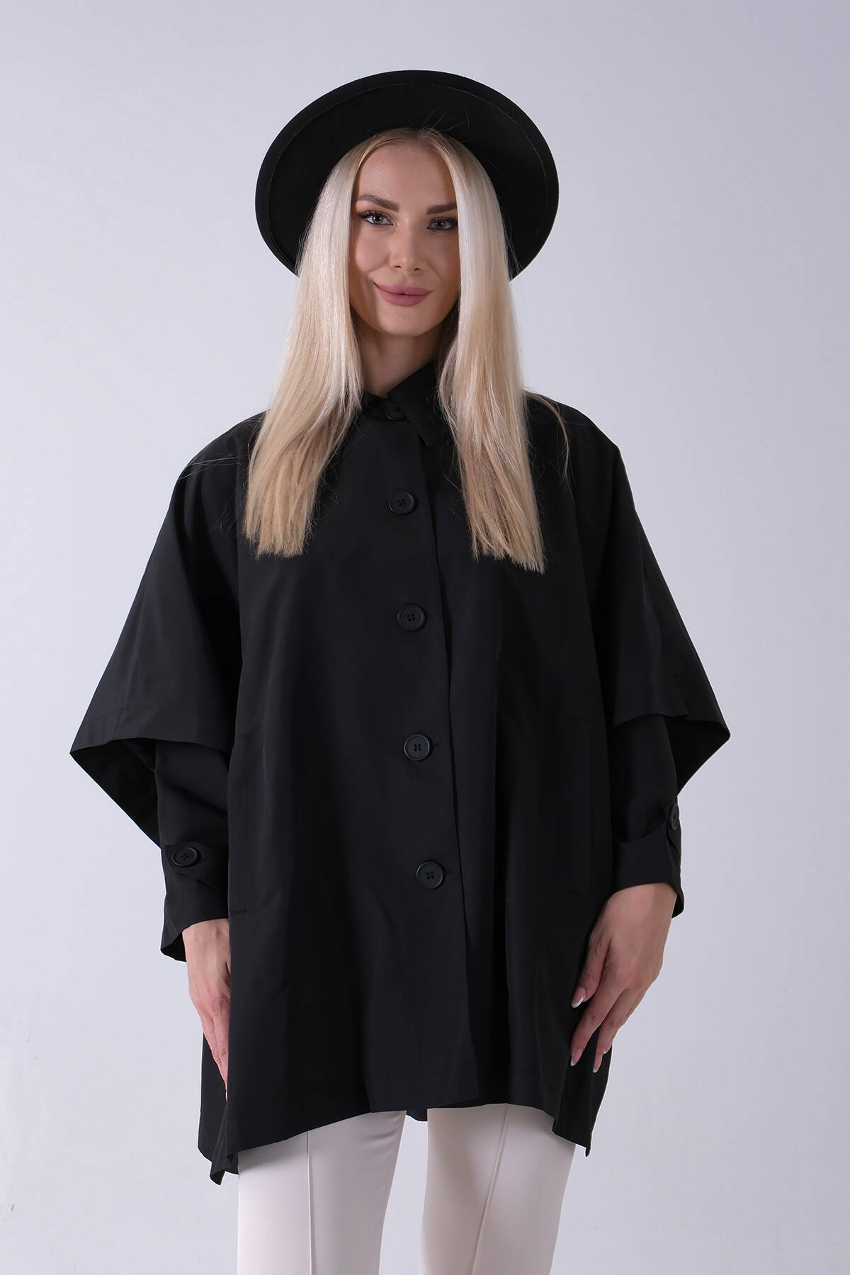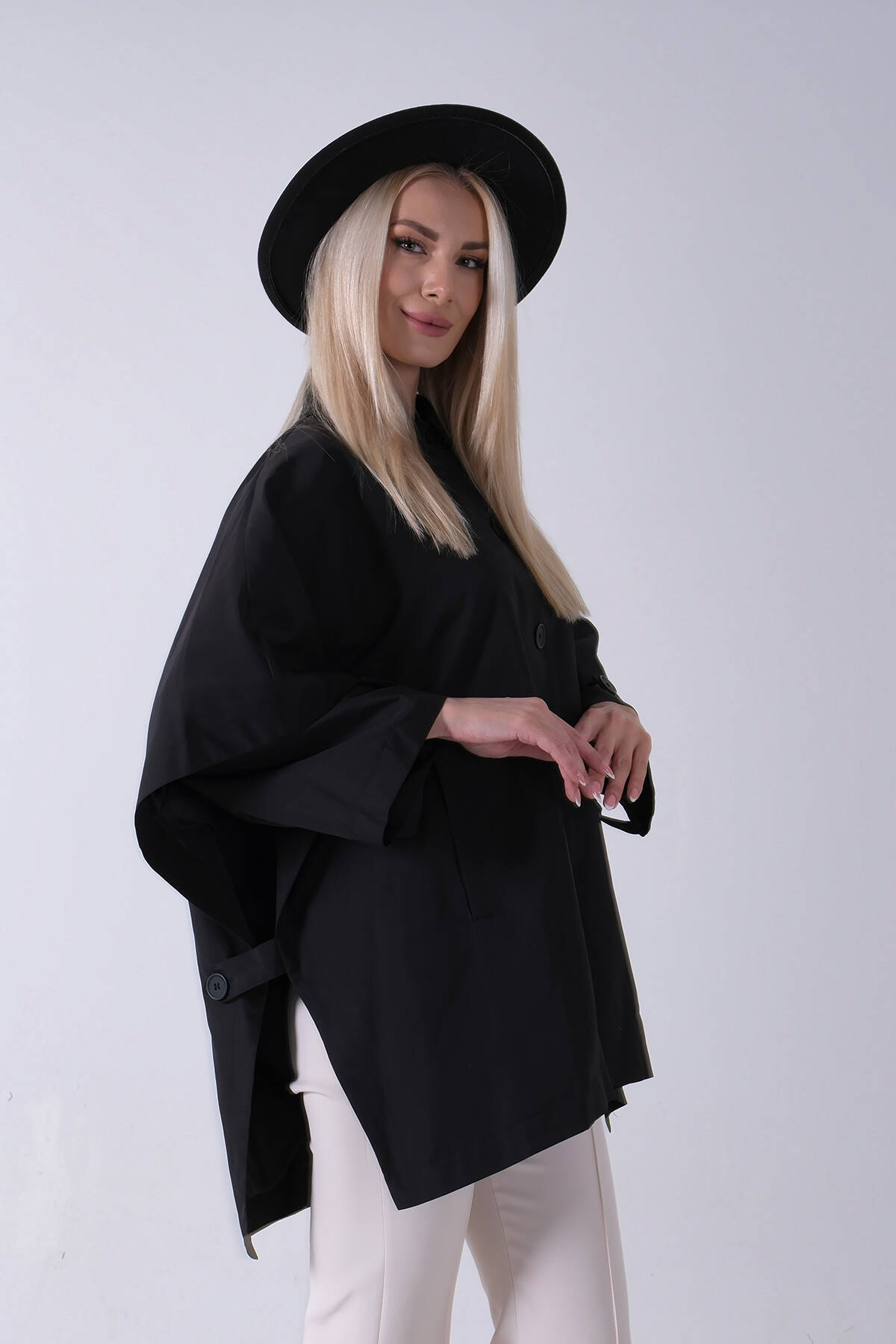 Siyah 5 Düğme Kapamalı Takma Kol Yandan Cepli Trenç 5309343.01