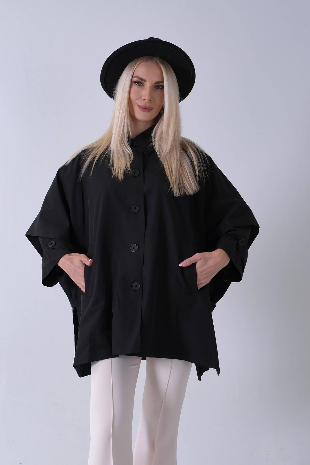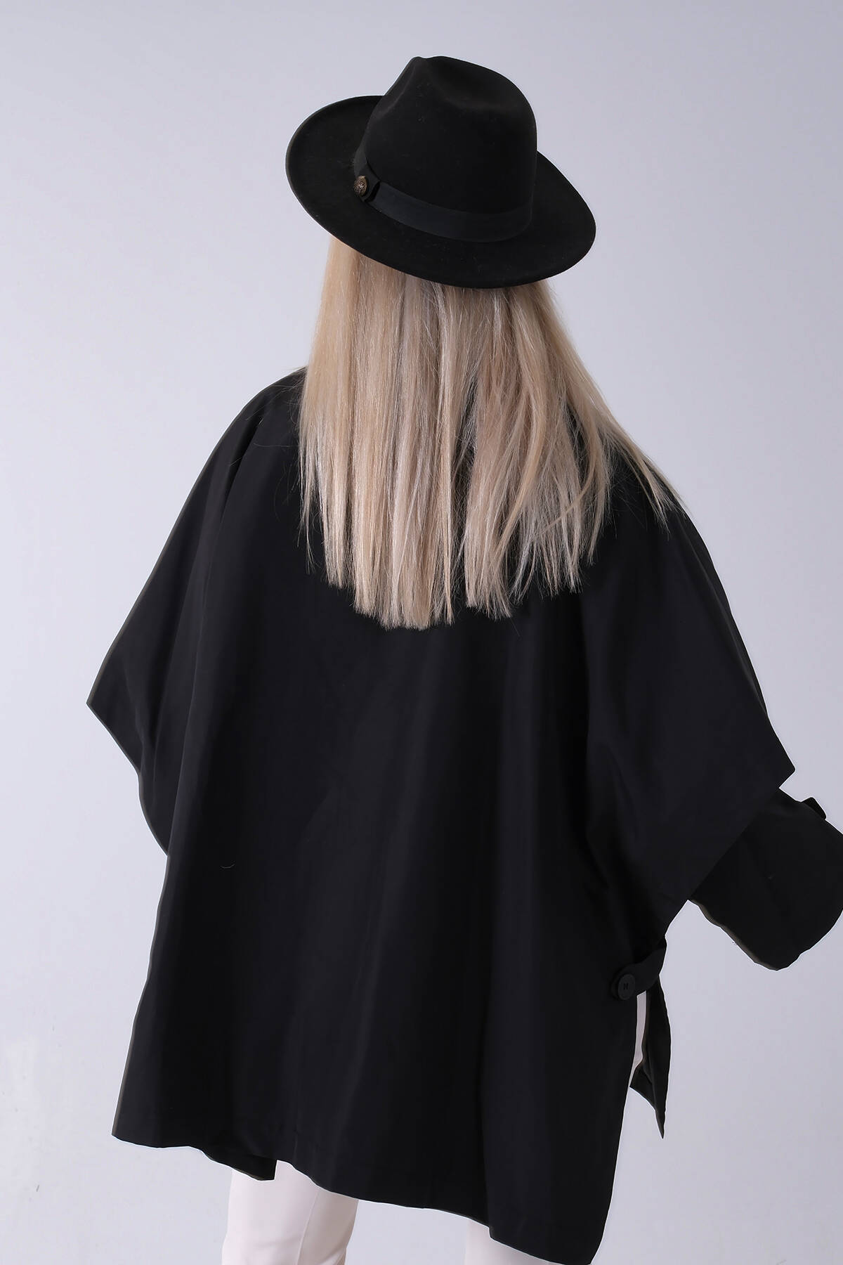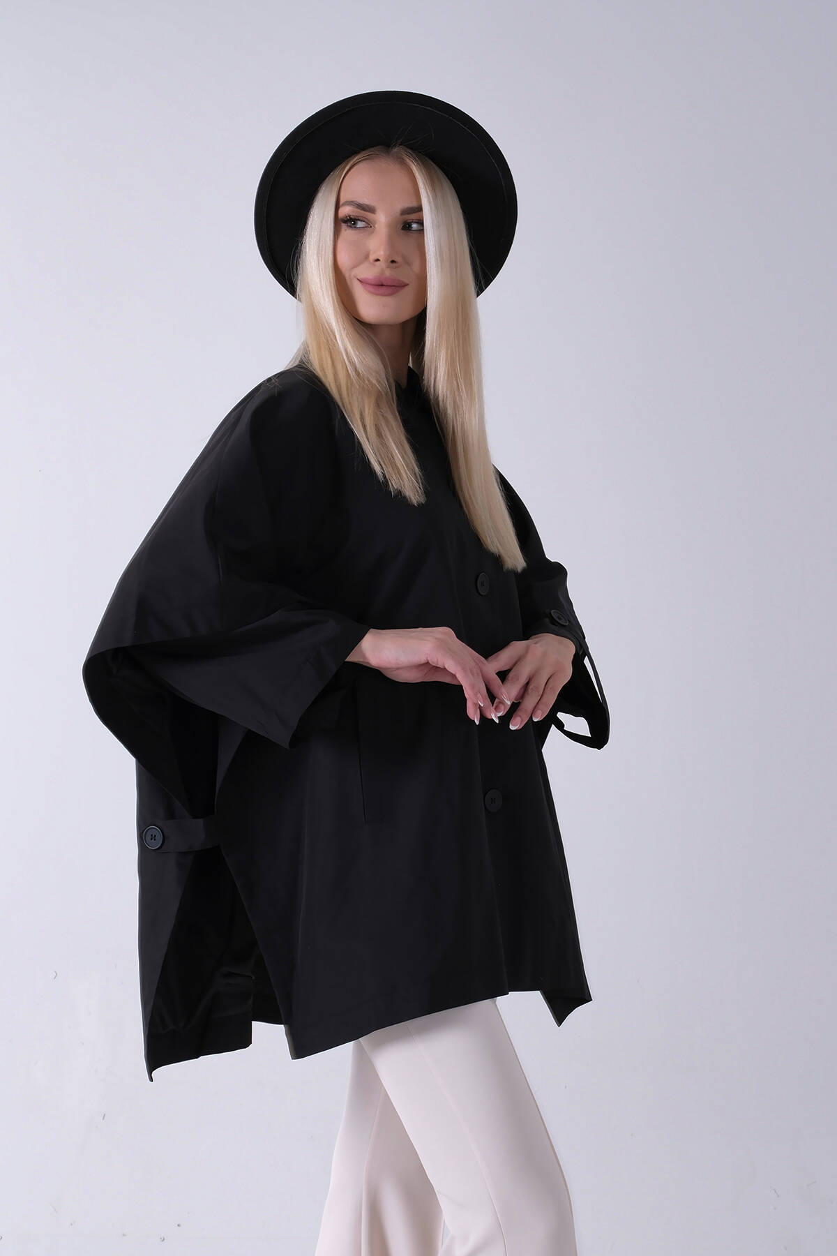 Siyah 5 Düğme Kapamalı Takma Kol Yandan Cepli Trenç 5309343.01