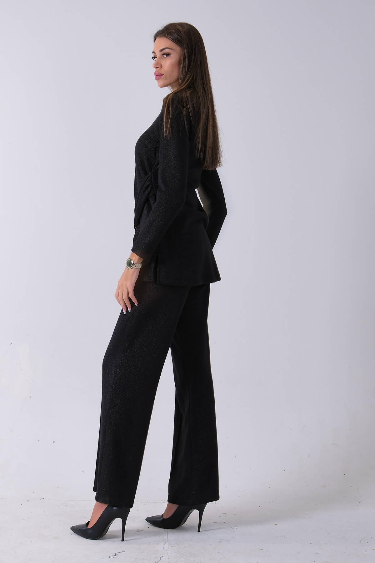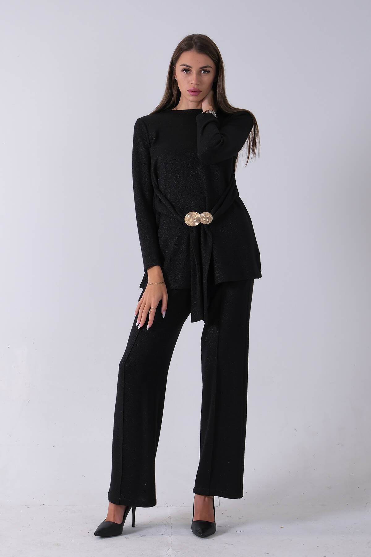 Siyah Altın Toka Detaylı Pantolonlu Takım 4577282.01