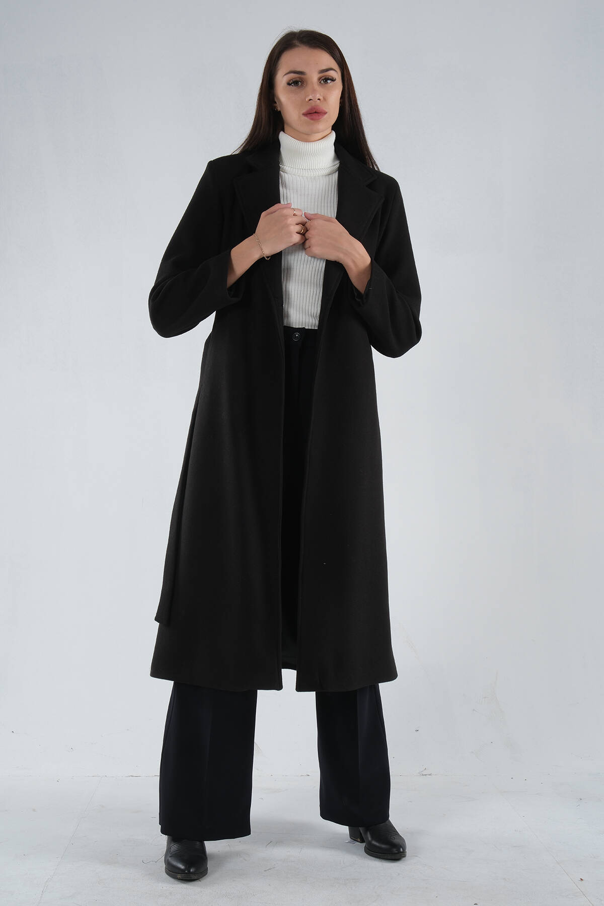 Modelin Ölçüleri : Boy: 1.75 cm / Göğüs: 87 cm / Bel: 66 cm /Basen : 94 cm Mankenin Üzerindeki Ürün 36/S Bedendir %100 Polyester Uzun Kol Kruvaze Yaka Tek Düğmeli Seyyar Kuşaklı Astarlı Çift Cepli Kaşe Kaban Modeli Ürün Boyu: 118 cm Stüdyo Çekimlerinde Renkler Işık Farklılıgından Dolayı Değişiklik Gösterebilir.