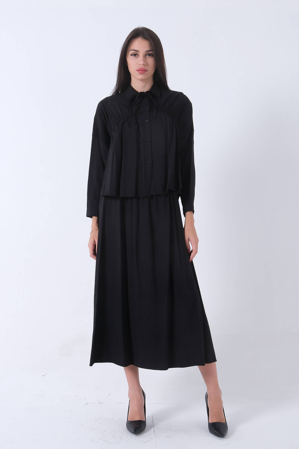 Siyah Bel Bağlama Detaylı Etekli Rahat Takım 422138.01