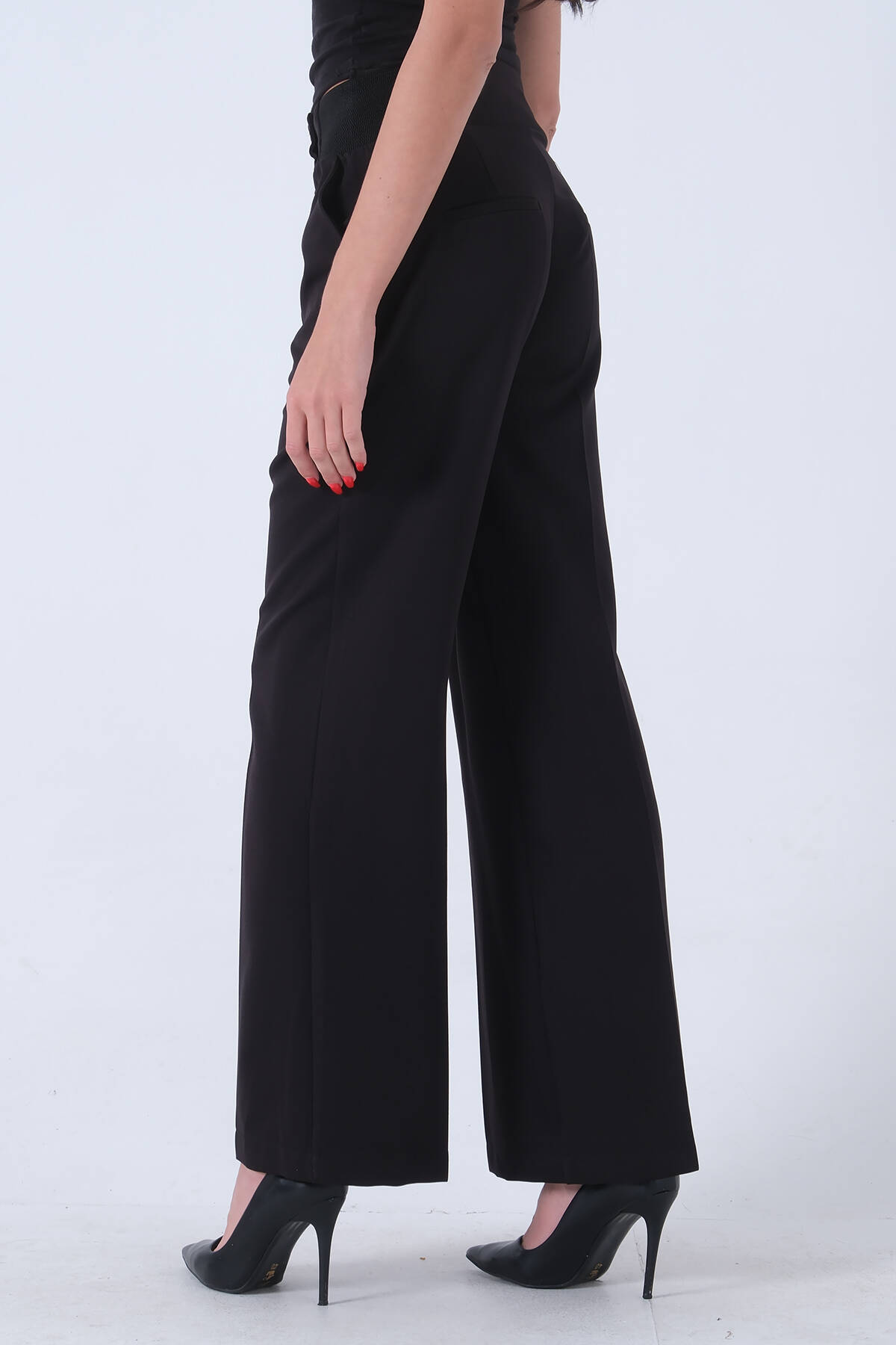 Siyah İnce Kemerli Cepsiz Bol Paça Uzun Pantolon 03030306.01