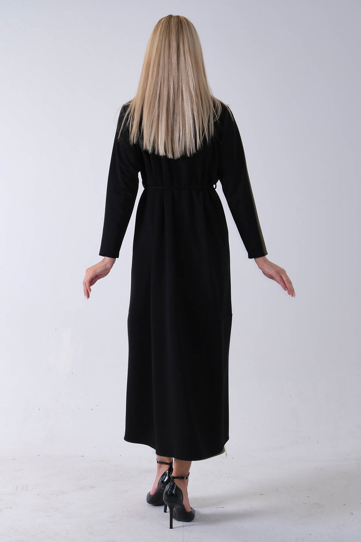 Siyah Üzeri Kendinden Şallı Kemer Bağlamalı Tesettür Elbise 4571581.01