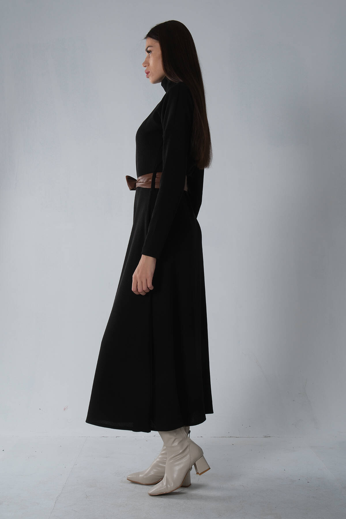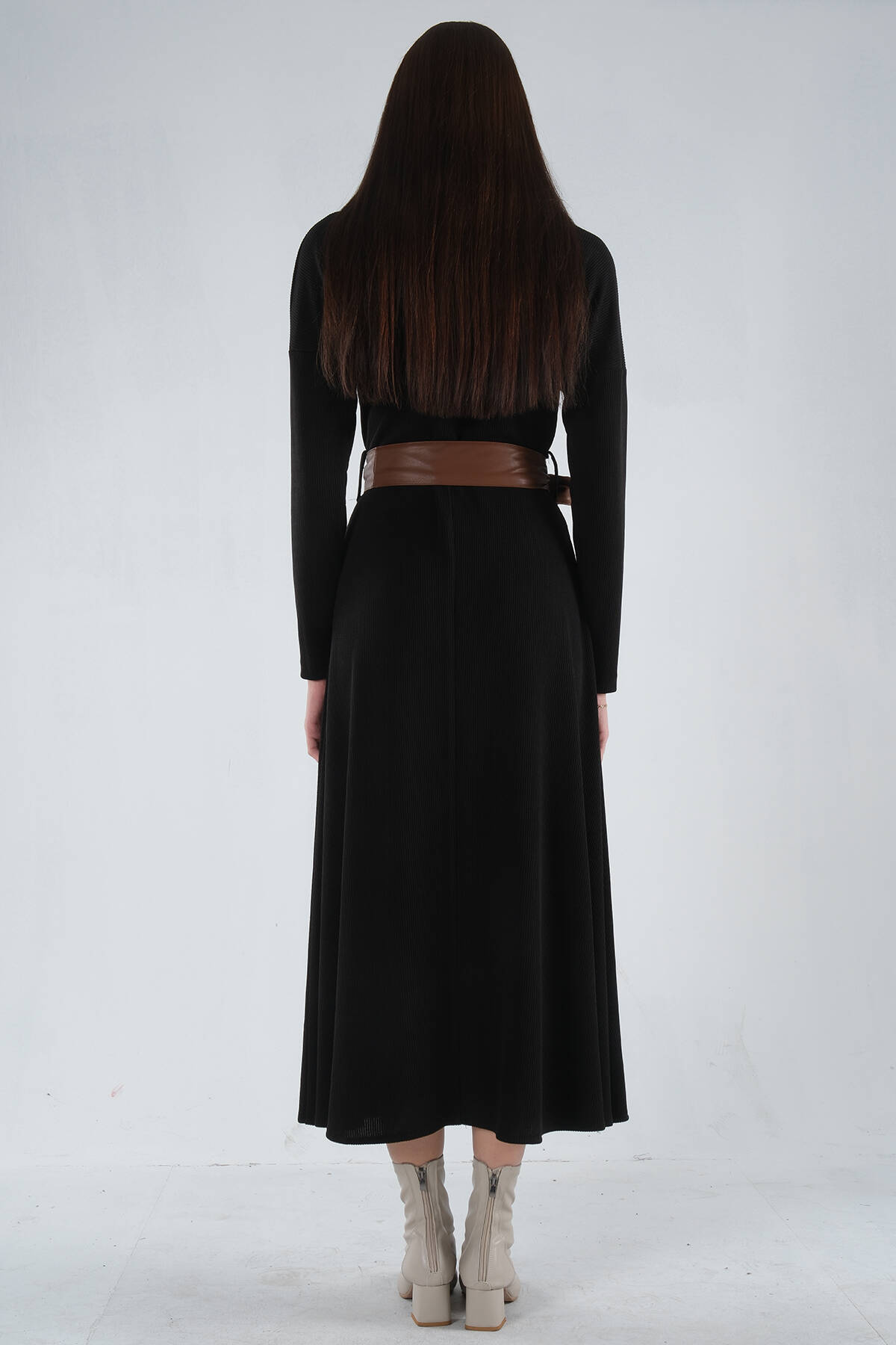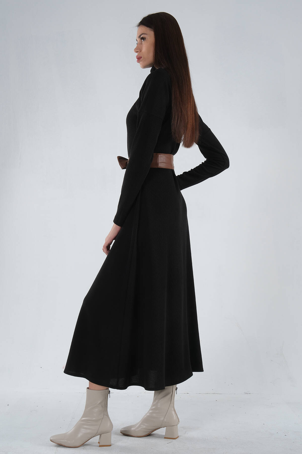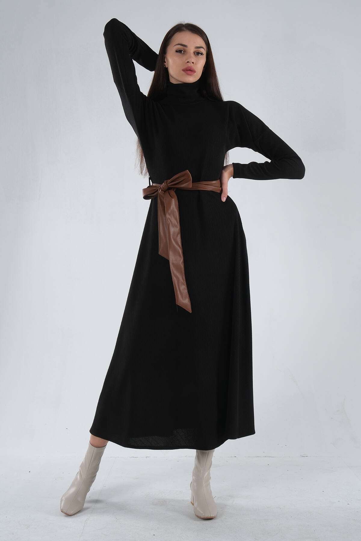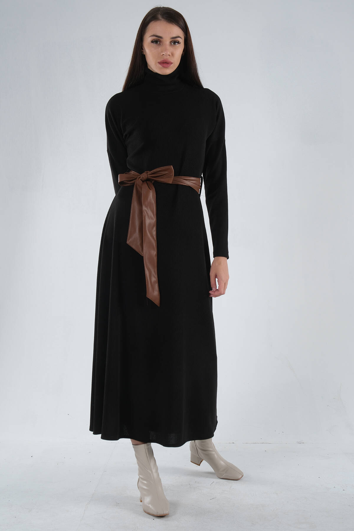 Siyah Beli Kemerli Örme Elbise 0104030.01