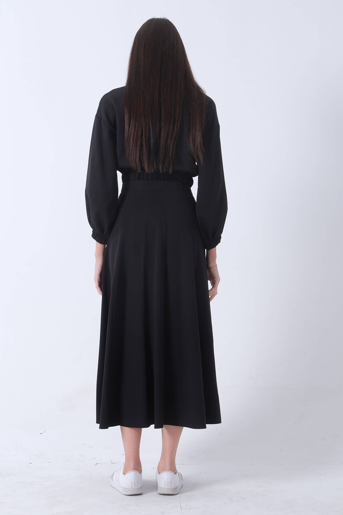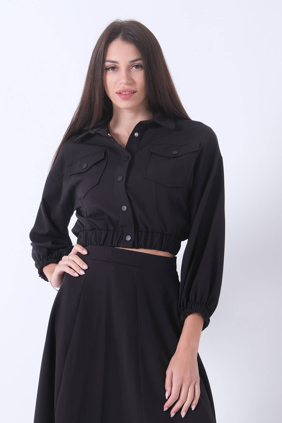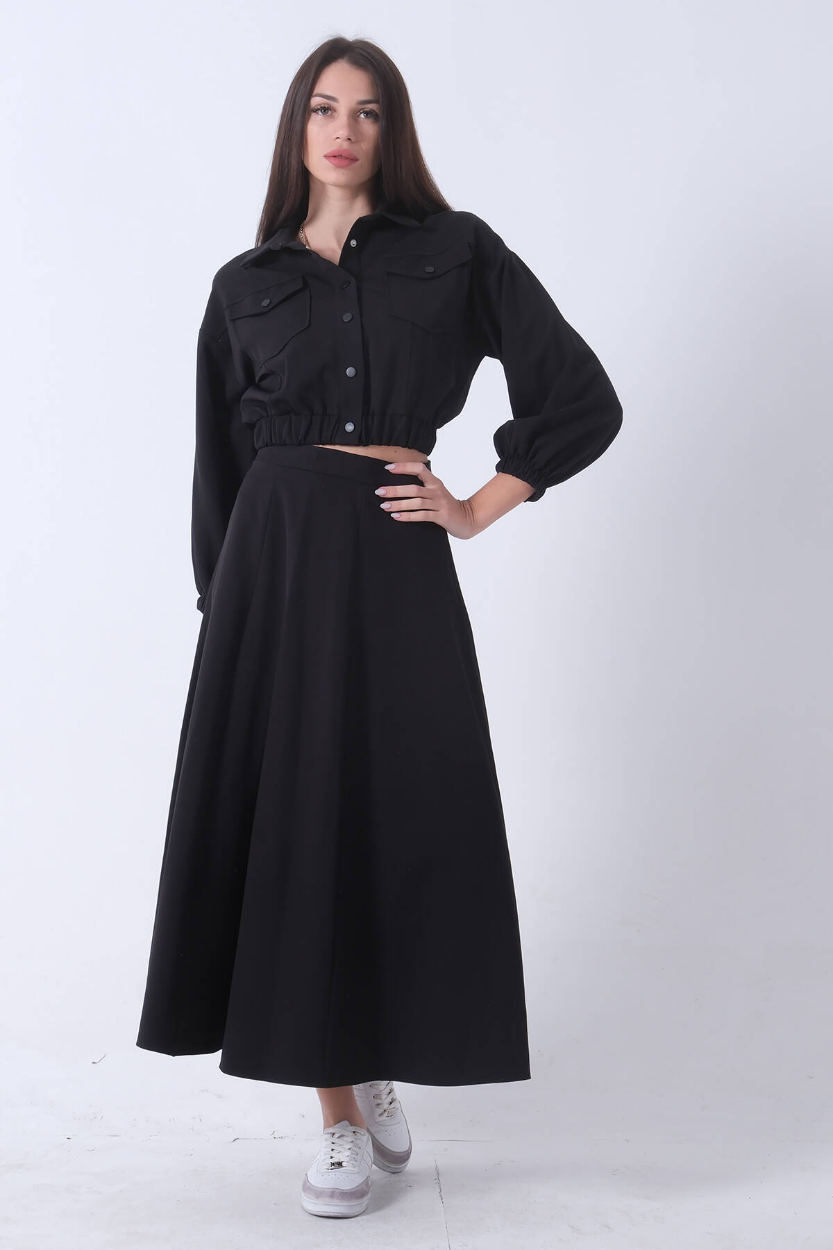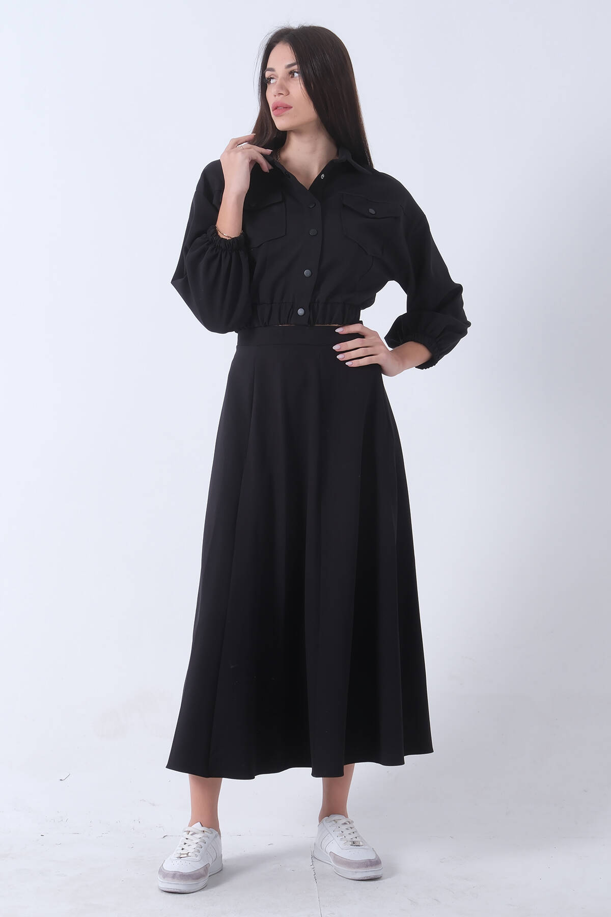 Siyah Beli Lastikli Cepli Ceket ve Etek İkili Takım 4595053.01