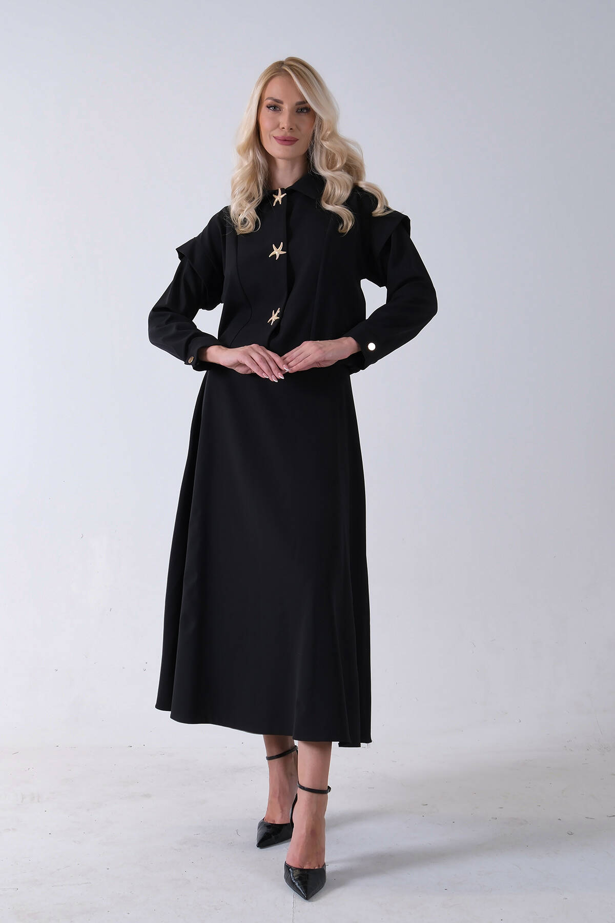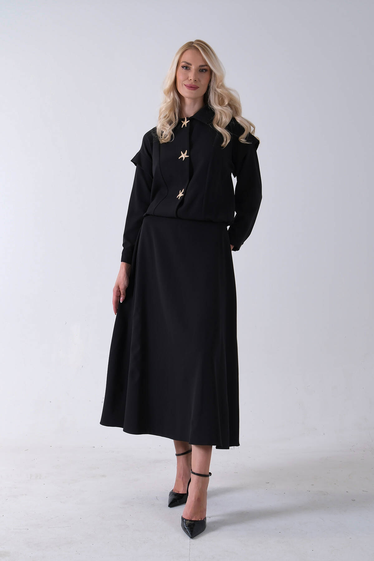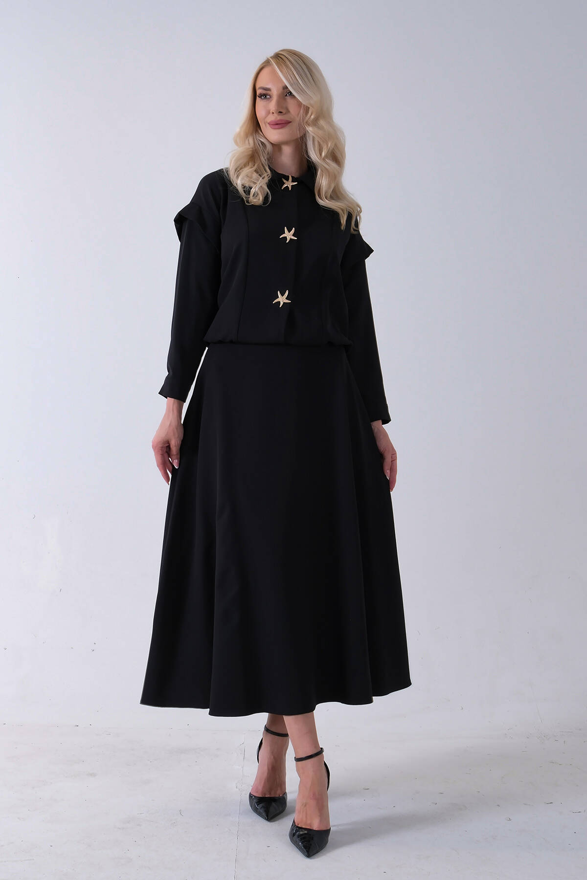 Siyah Beli Lastikli Deniz Yıldızı Çıt Çıt Kapamalı Ceket Detaylı Etekli Takım 4592269.01