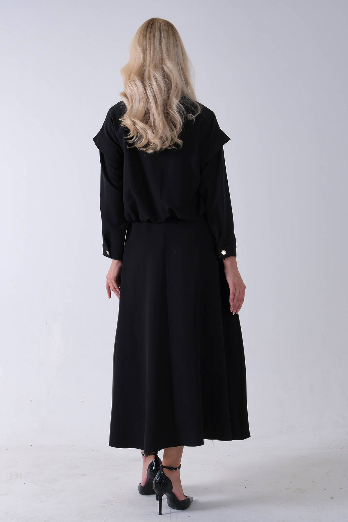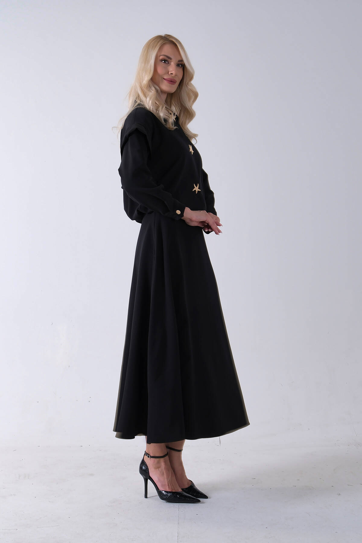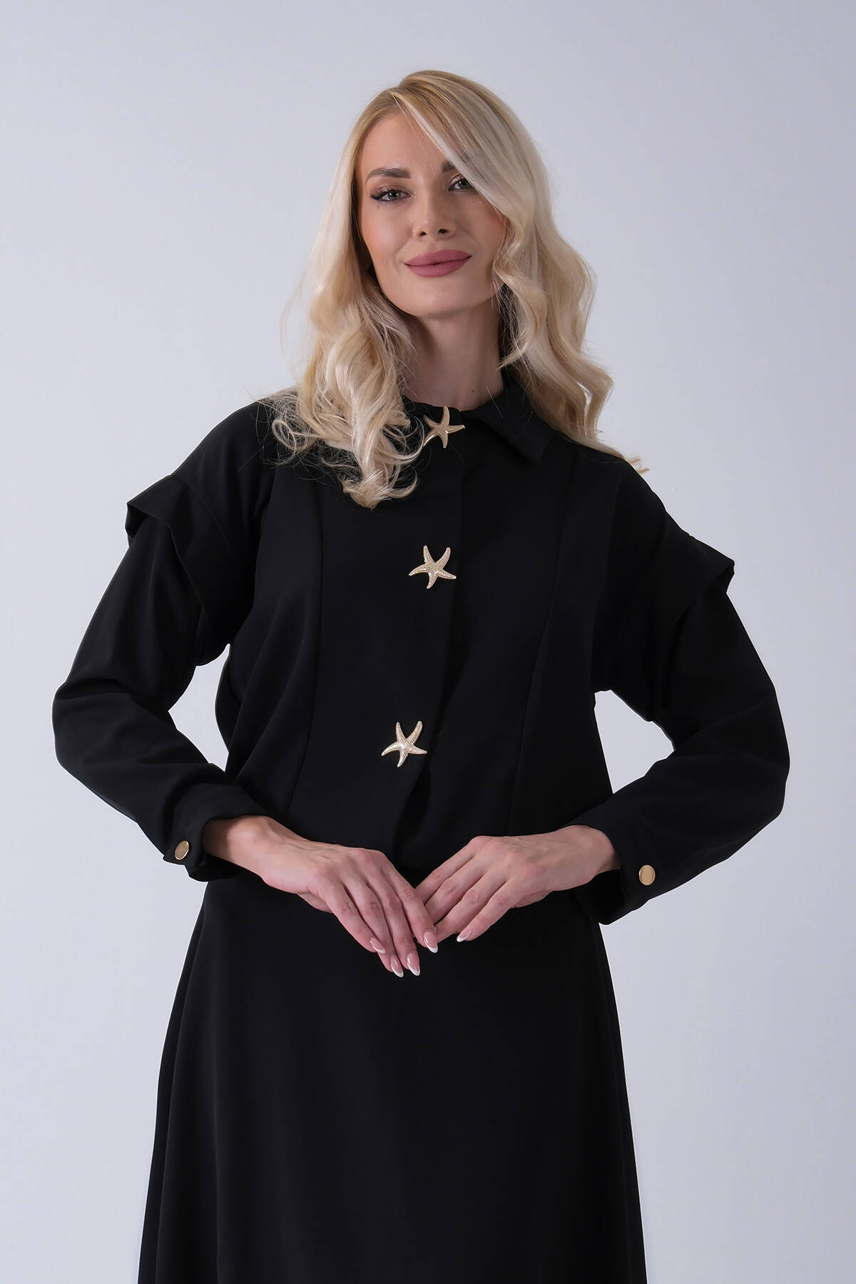 Siyah Beli Lastikli Deniz Yıldızı Çıt Çıt Kapamalı Ceket Detaylı Etekli Takım 4592269.01