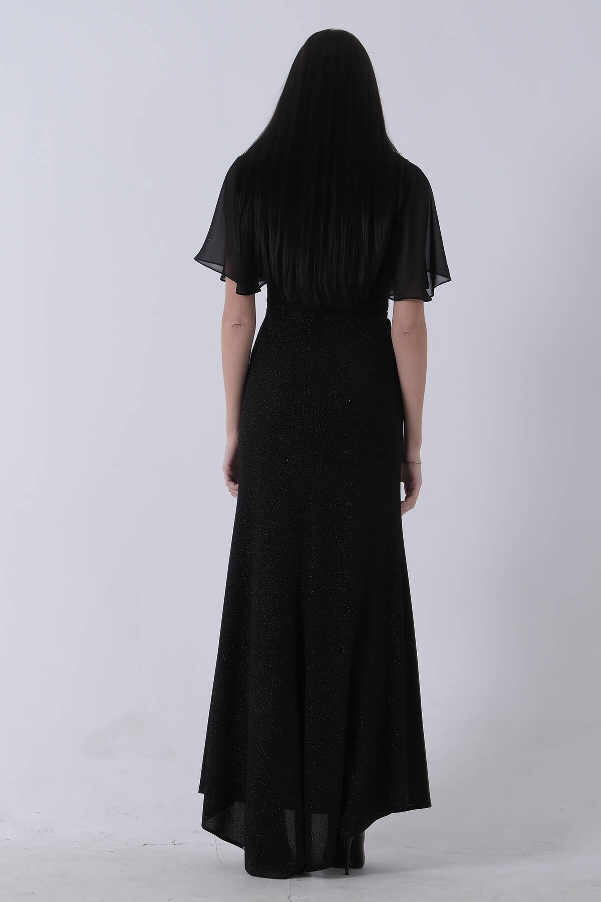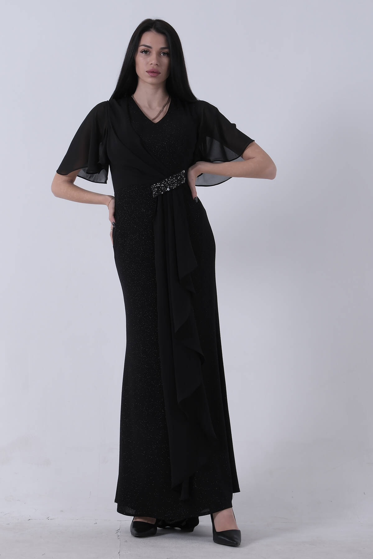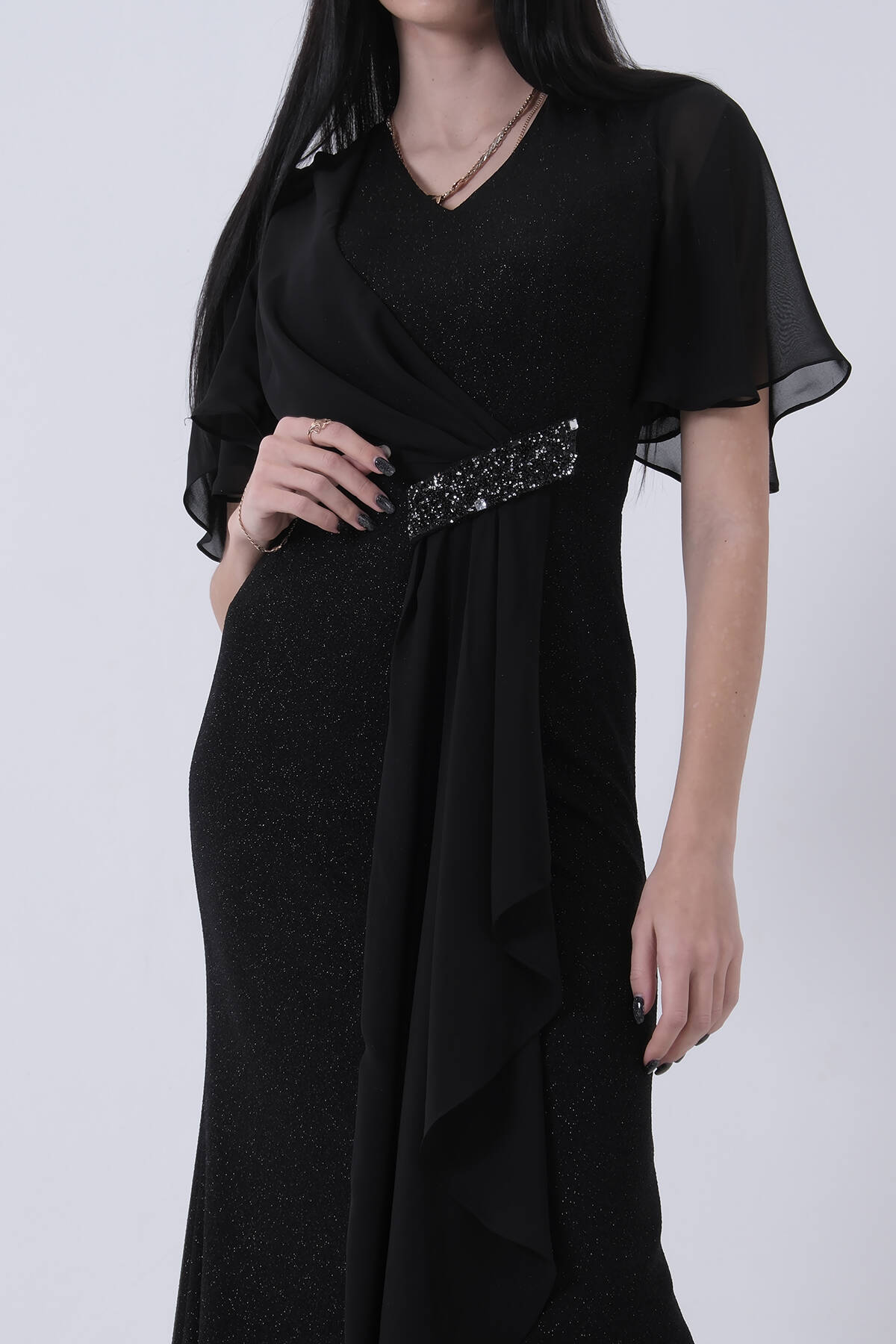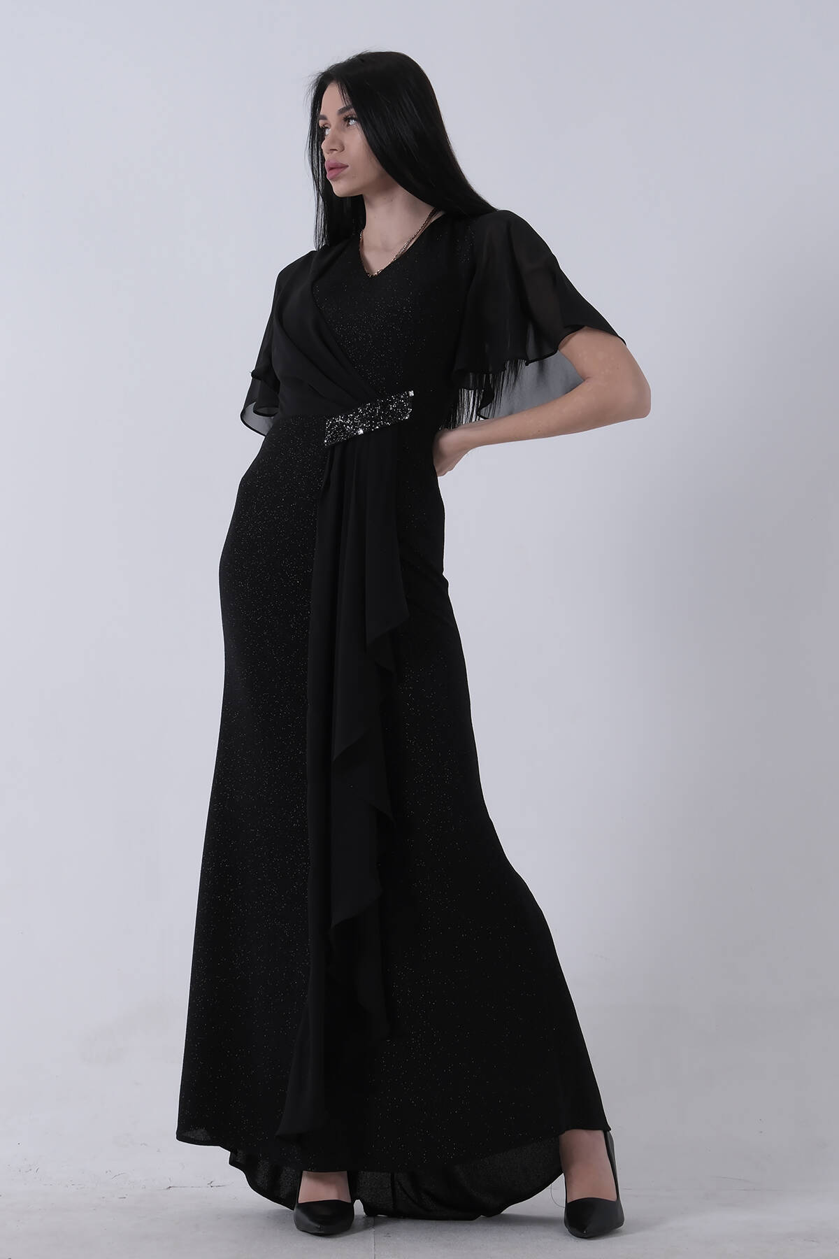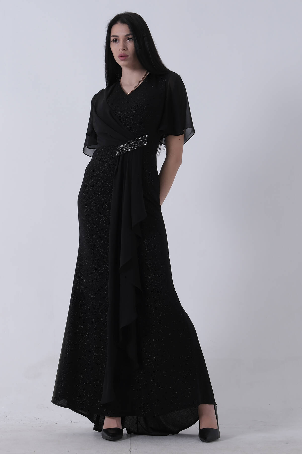 Siyah Beli Taş Detaylı Yarım Kol Tesettür Abiye 08061271.01