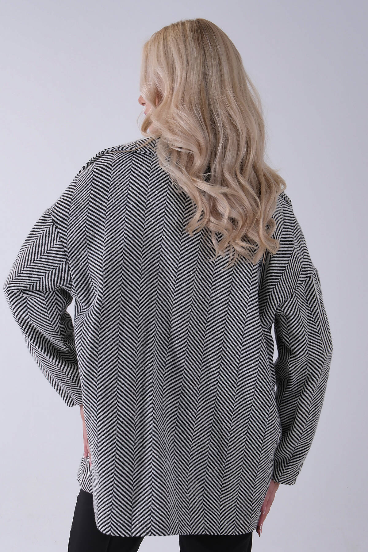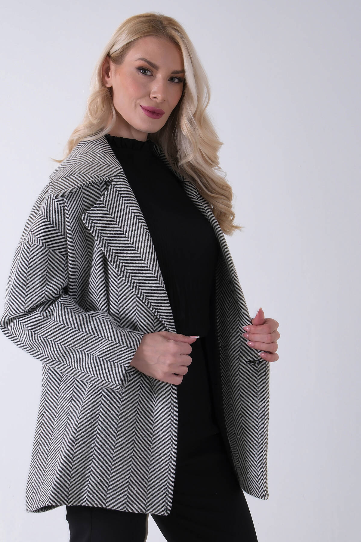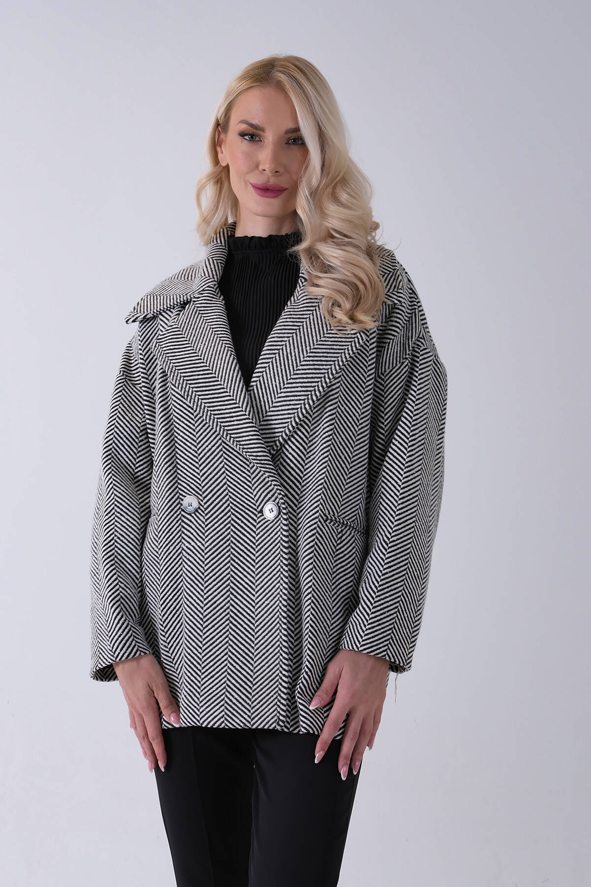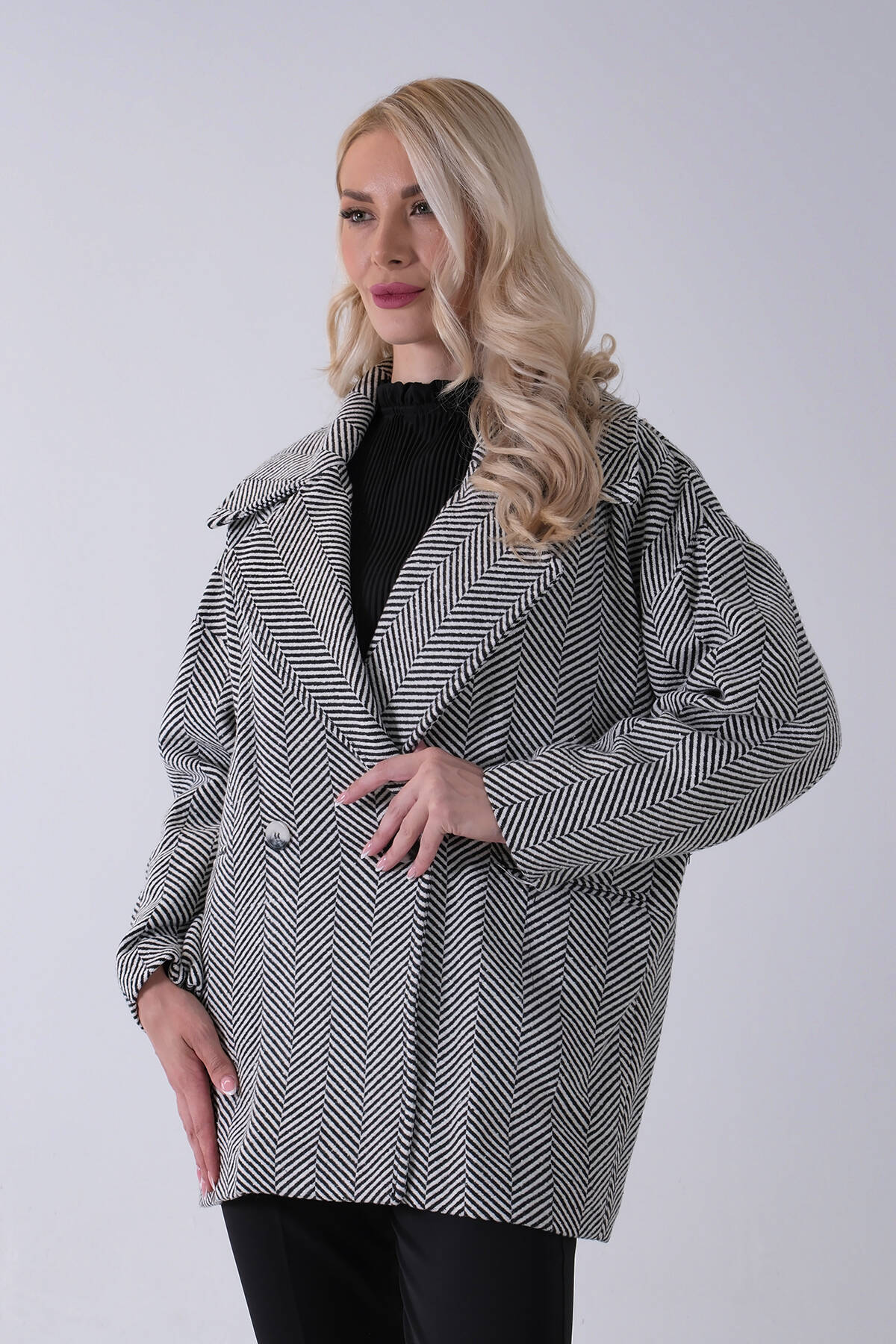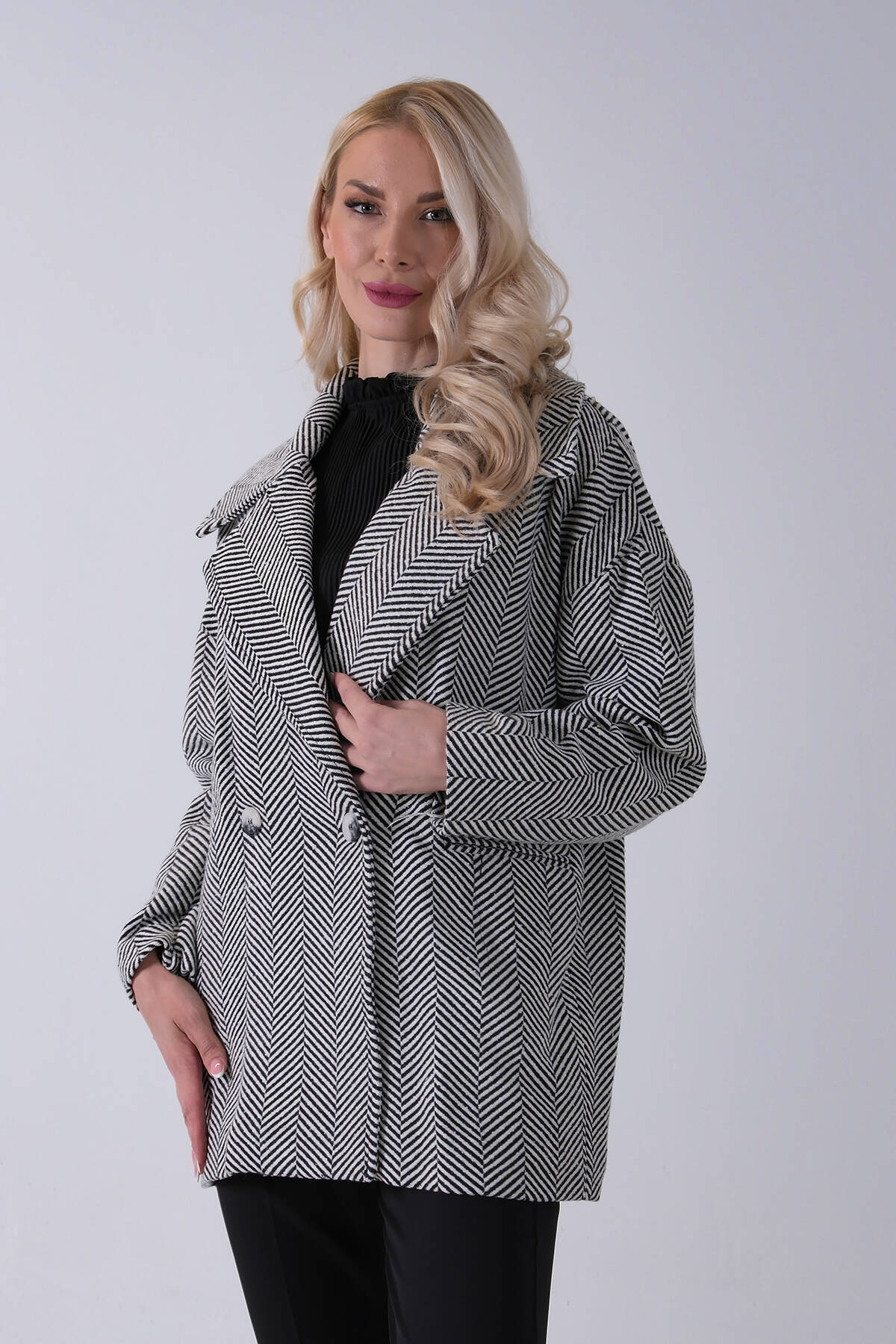 Siyah - Beyaz Çift Fleto Cepli Astarlı Kaşe Kaban 31050739.18