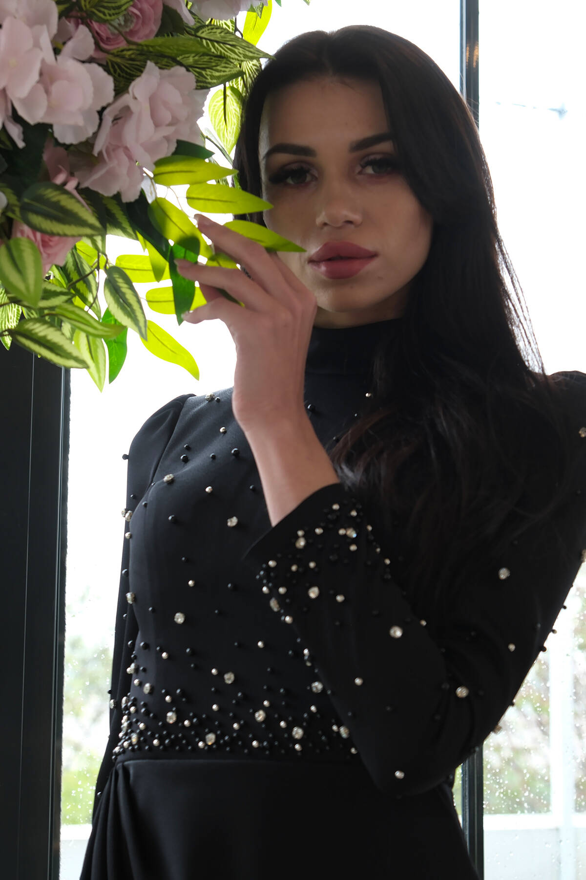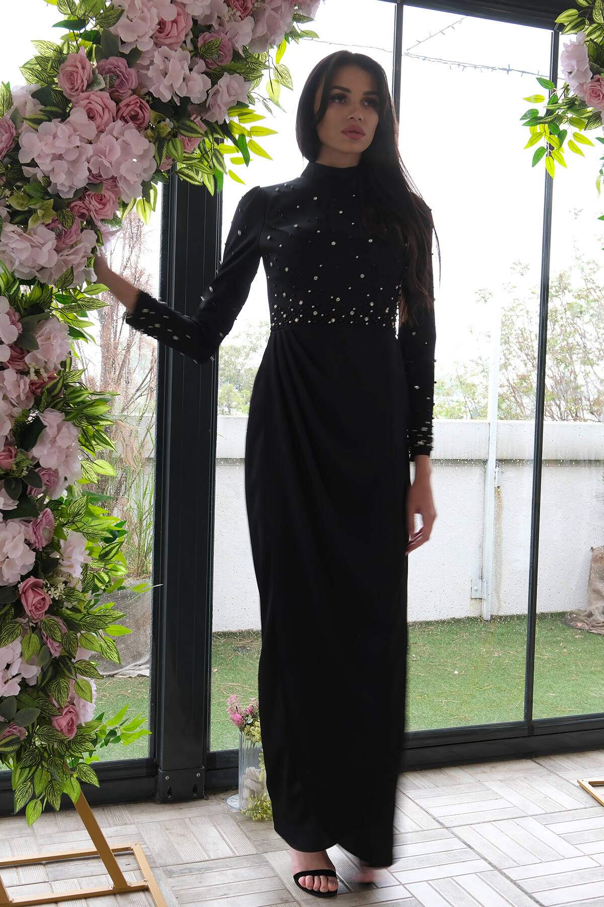 Siyah Bilek Ucu Tüylü Pul Payetli Tesettür Abiye 6502496.01