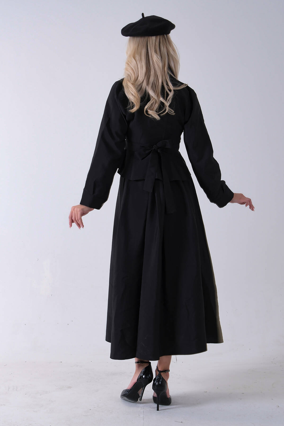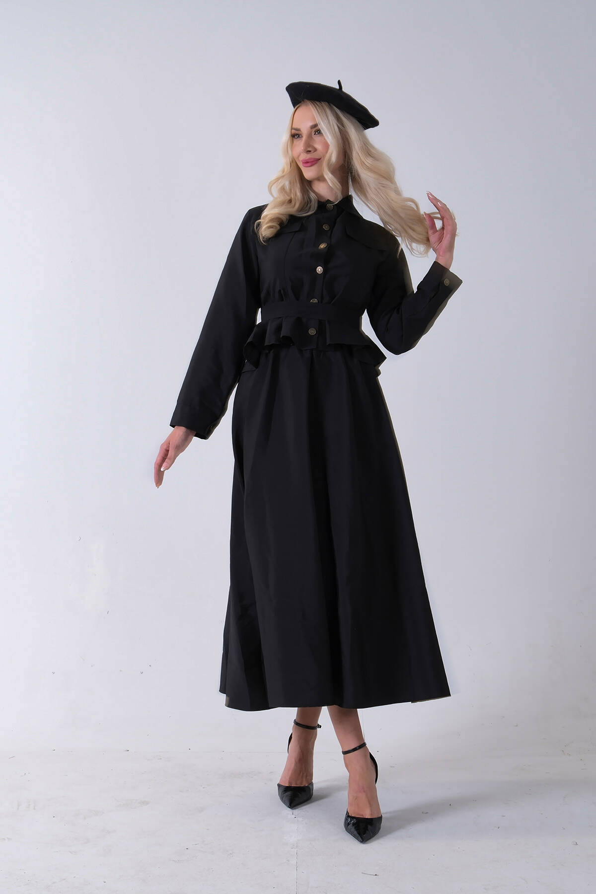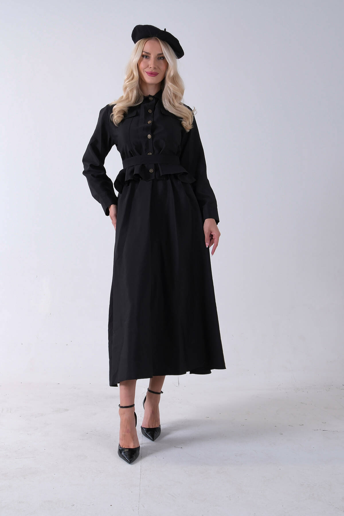 Siyah Ceket Cep Görünüm Detaylı Düğme Kapamalı Etekli Takım 5303168.01