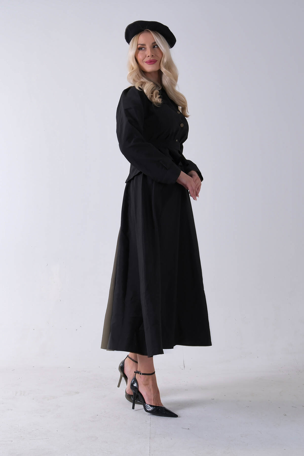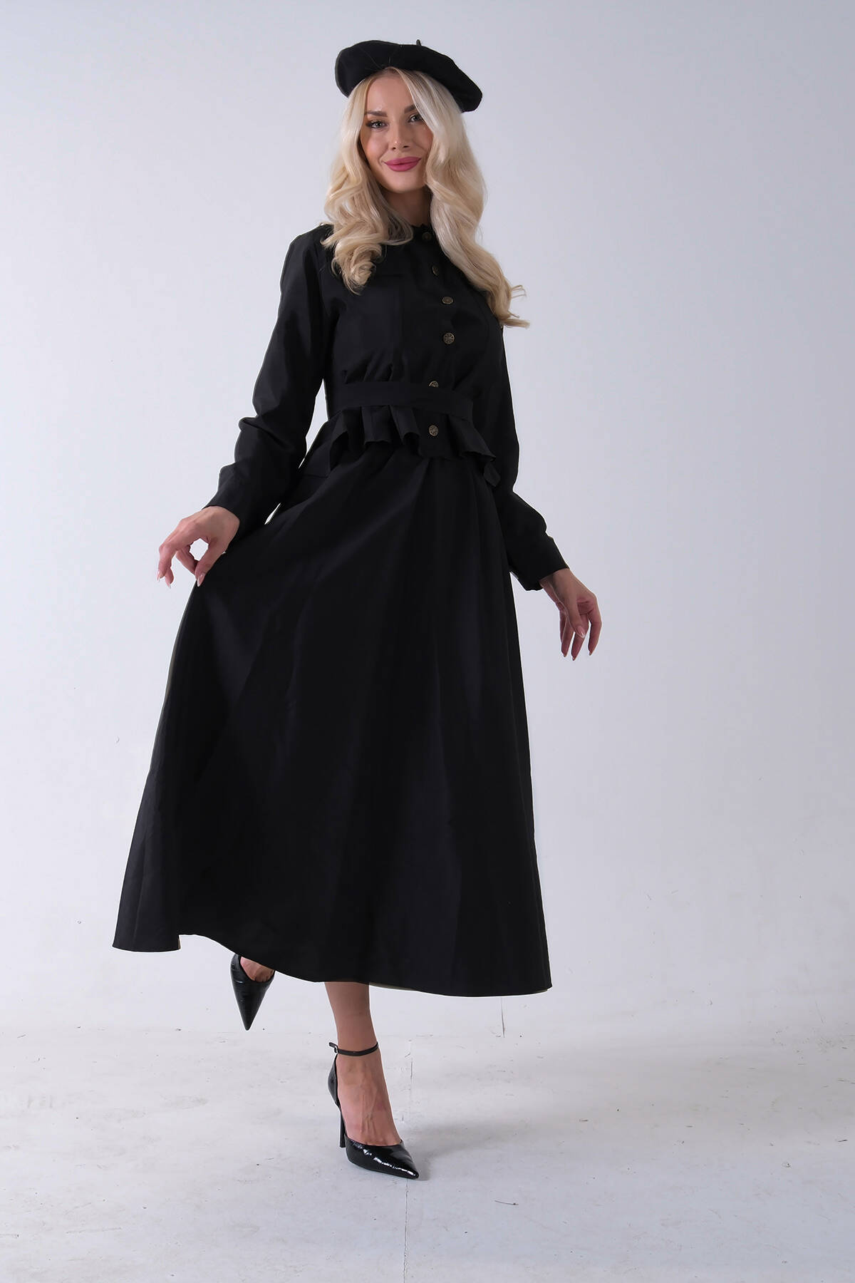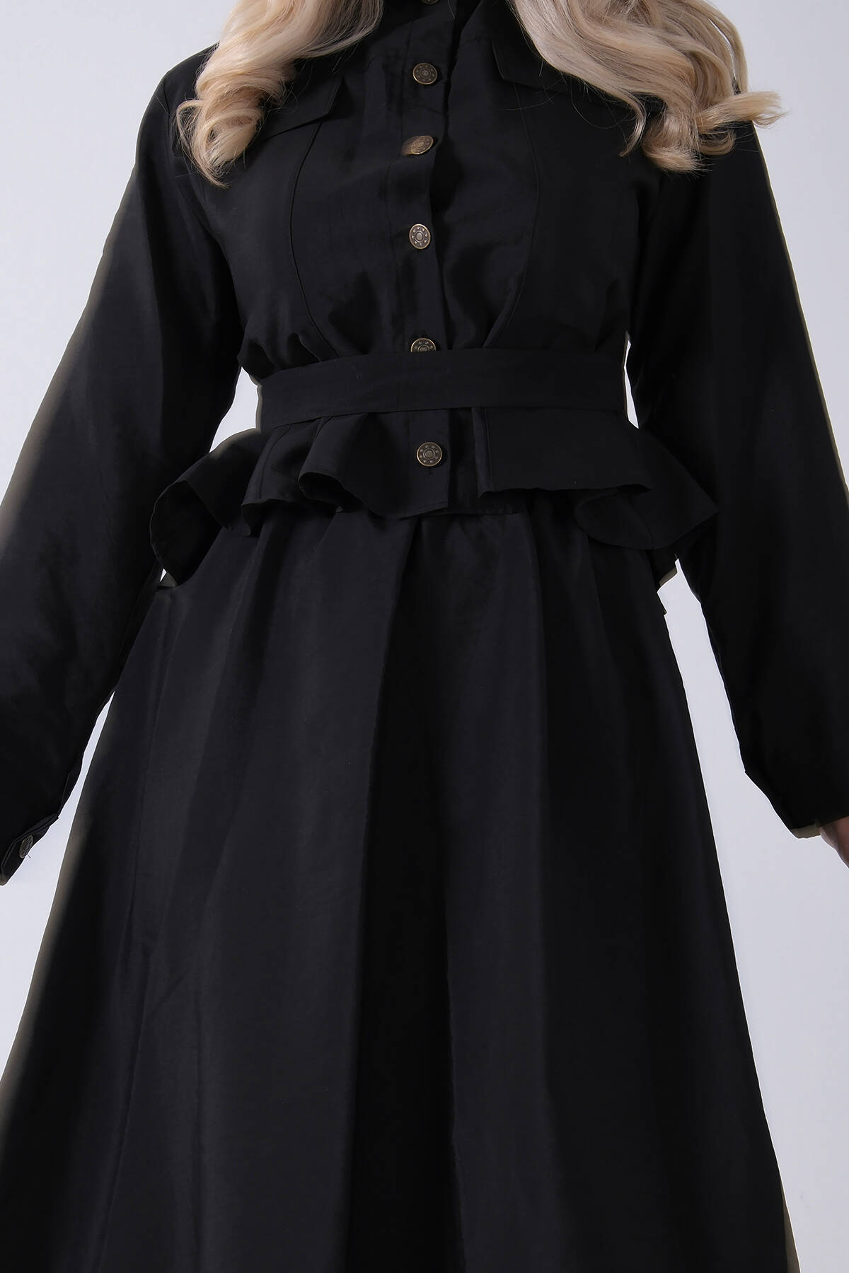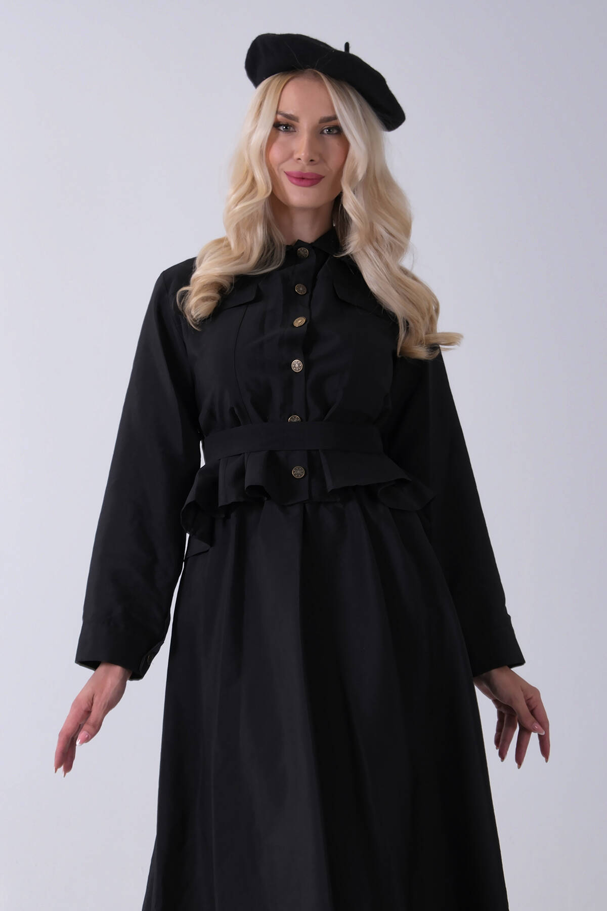Siyah Ceket Cep Görünüm Detaylı Düğme Kapamalı Etekli Takım 5303168.01