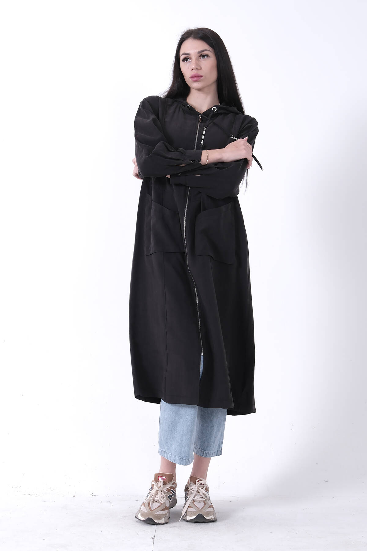 Siyah Çift Cep Detaylı Fermuar Kapamalı Kapüşonlu Kap 44510684.01
