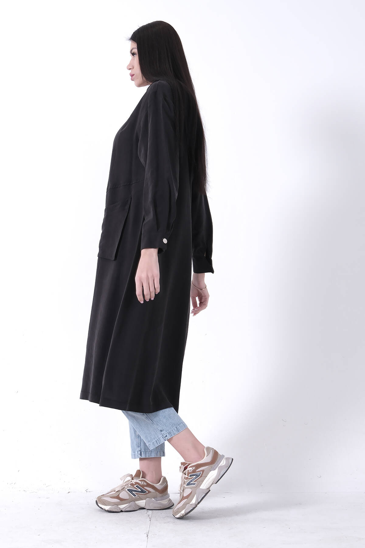 Siyah Önü 4 Düğme Kapamalı Çift Cepli Kuşaklı Kap 940140187.01