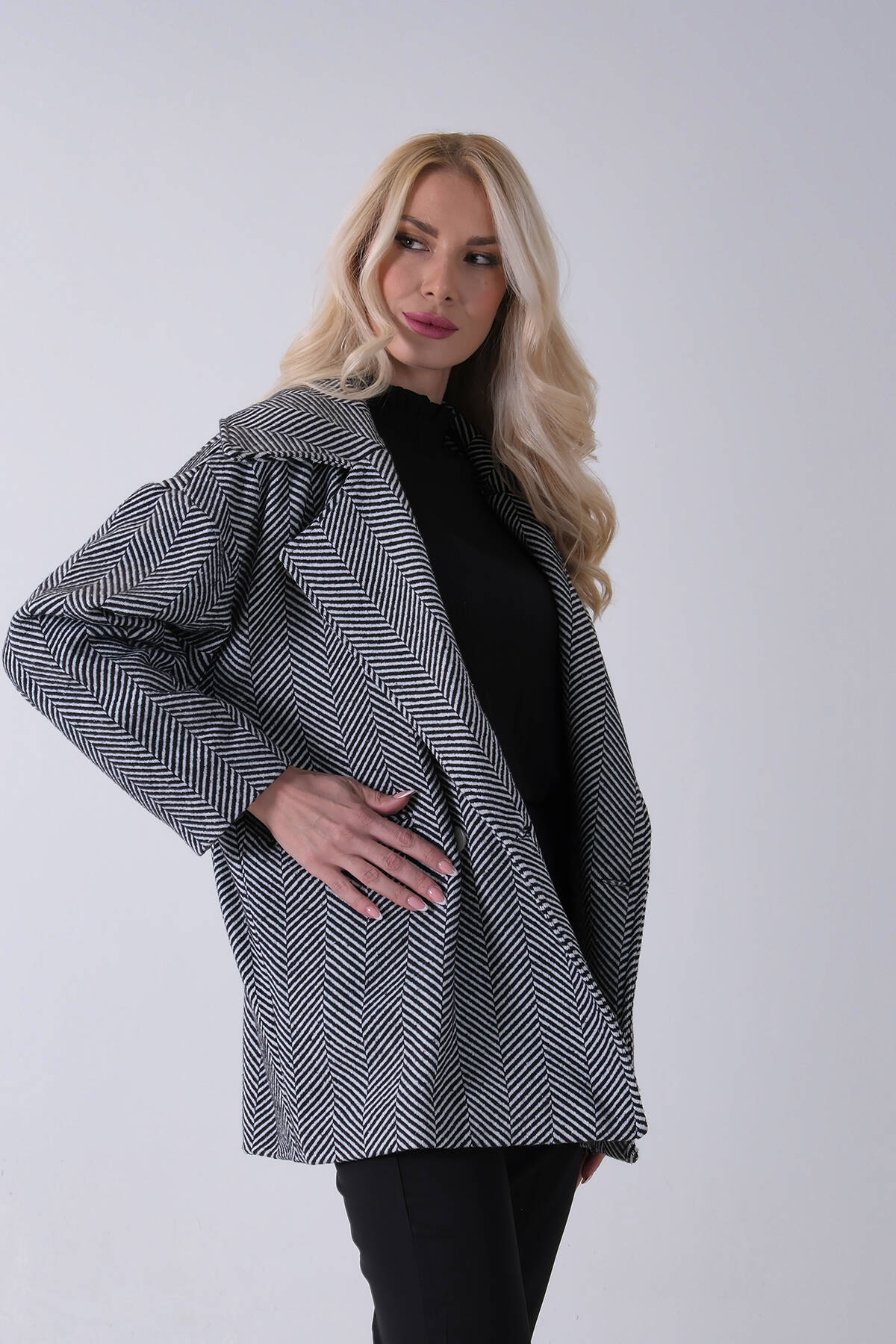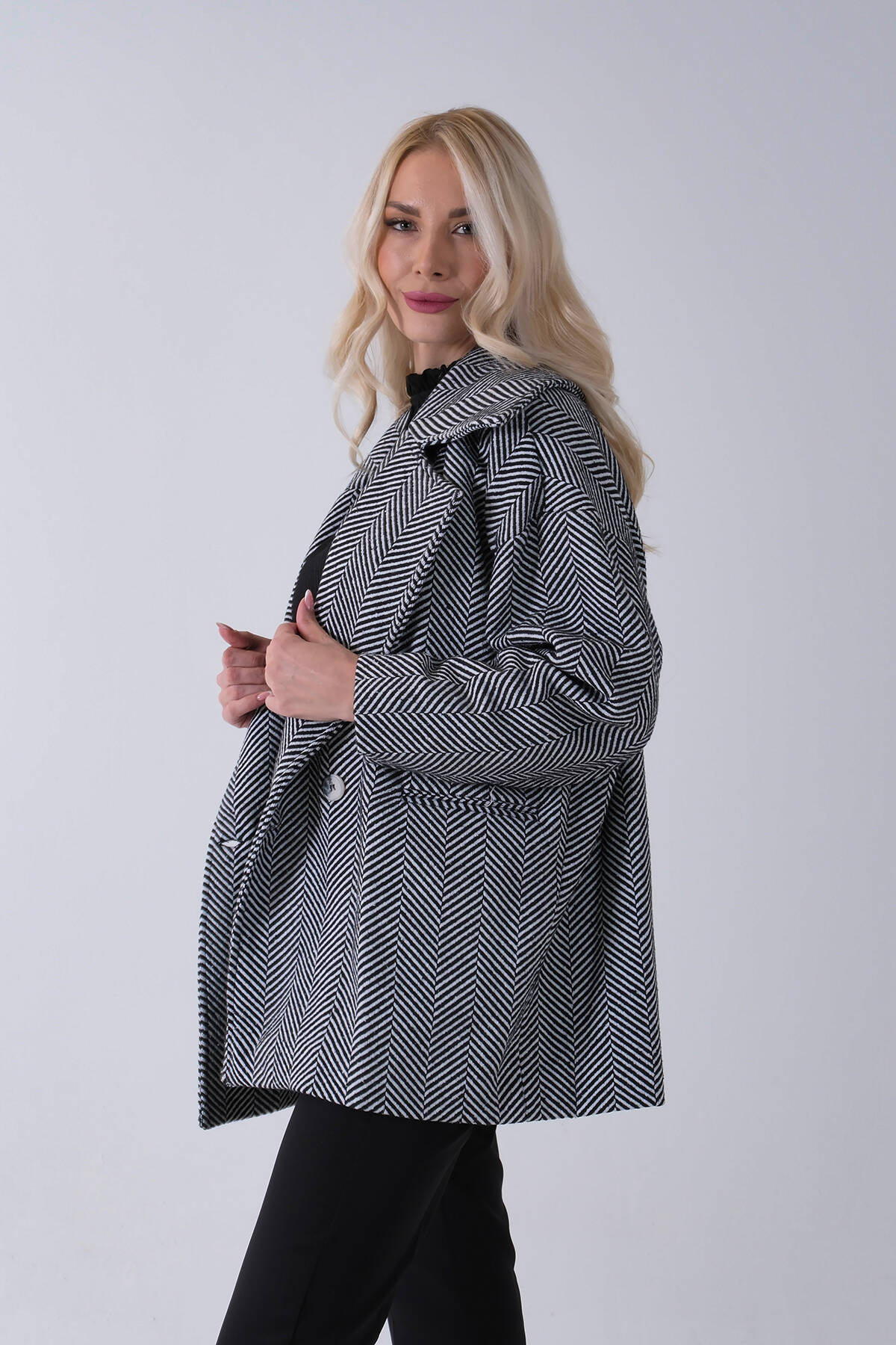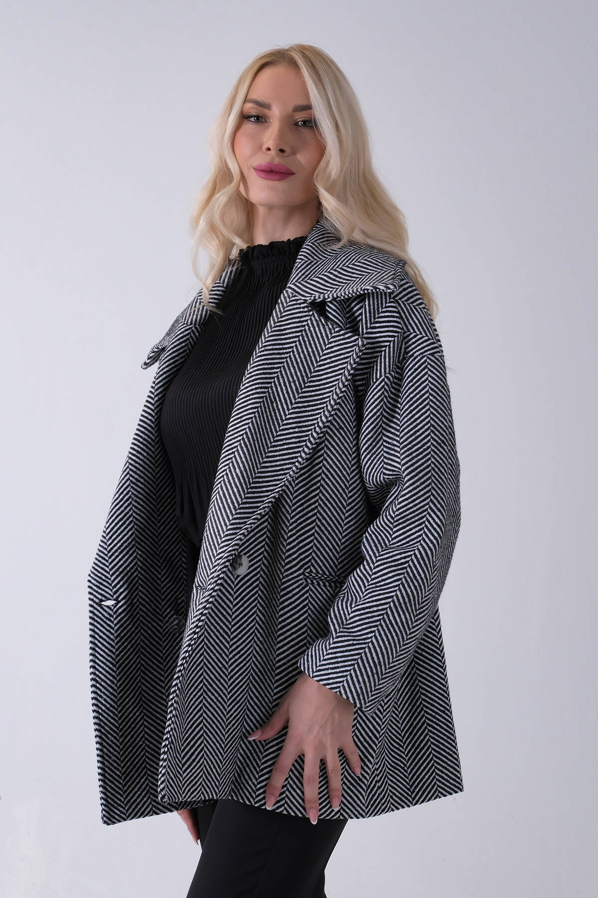 Siyah Çift Fleto Cepli Astarlı Kaşe Kaban 31050739.01