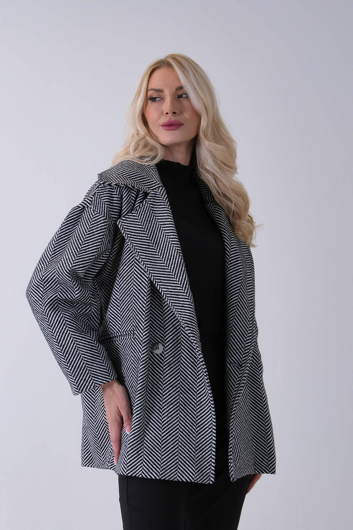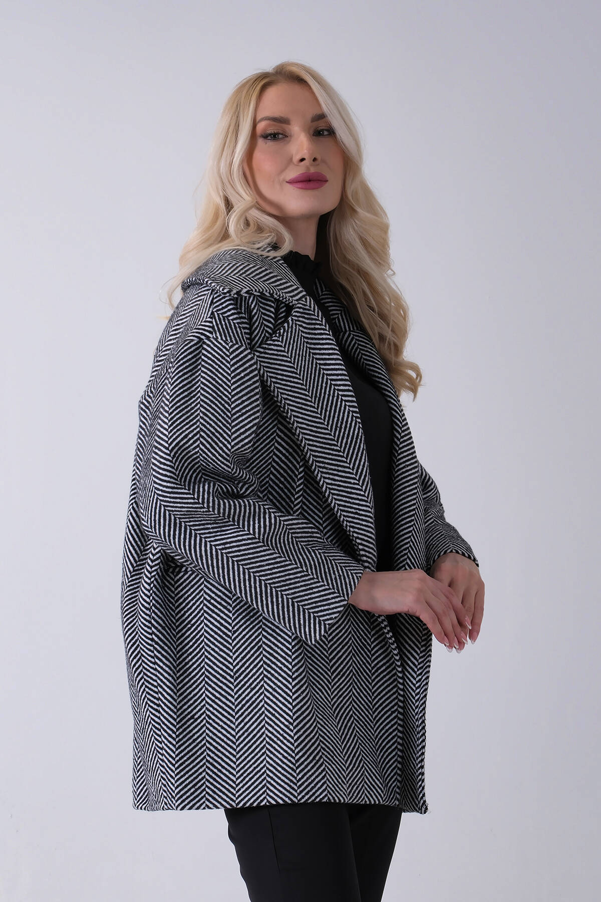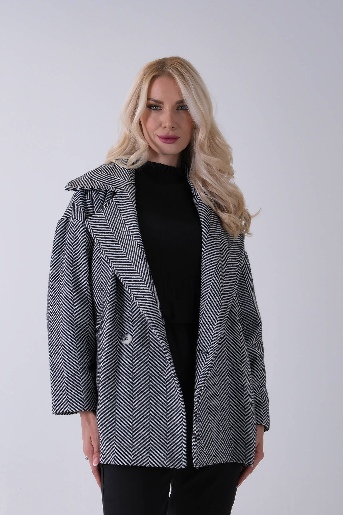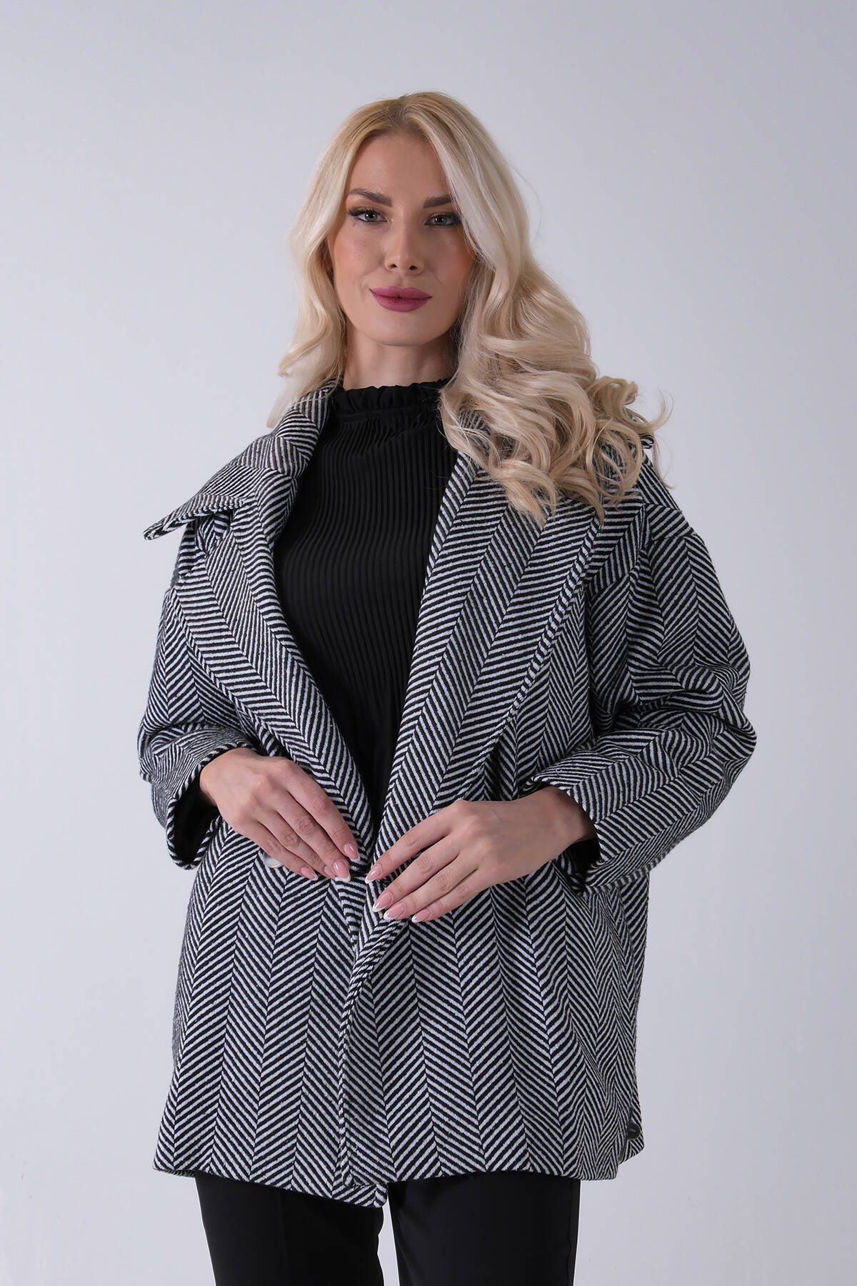 Siyah Çift Fleto Cepli Astarlı Kaşe Kaban 31050739.01
