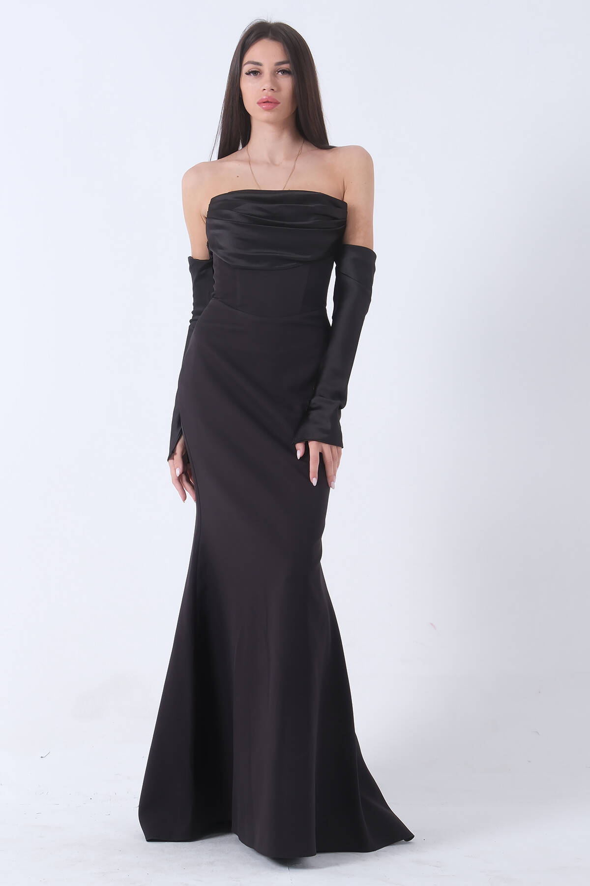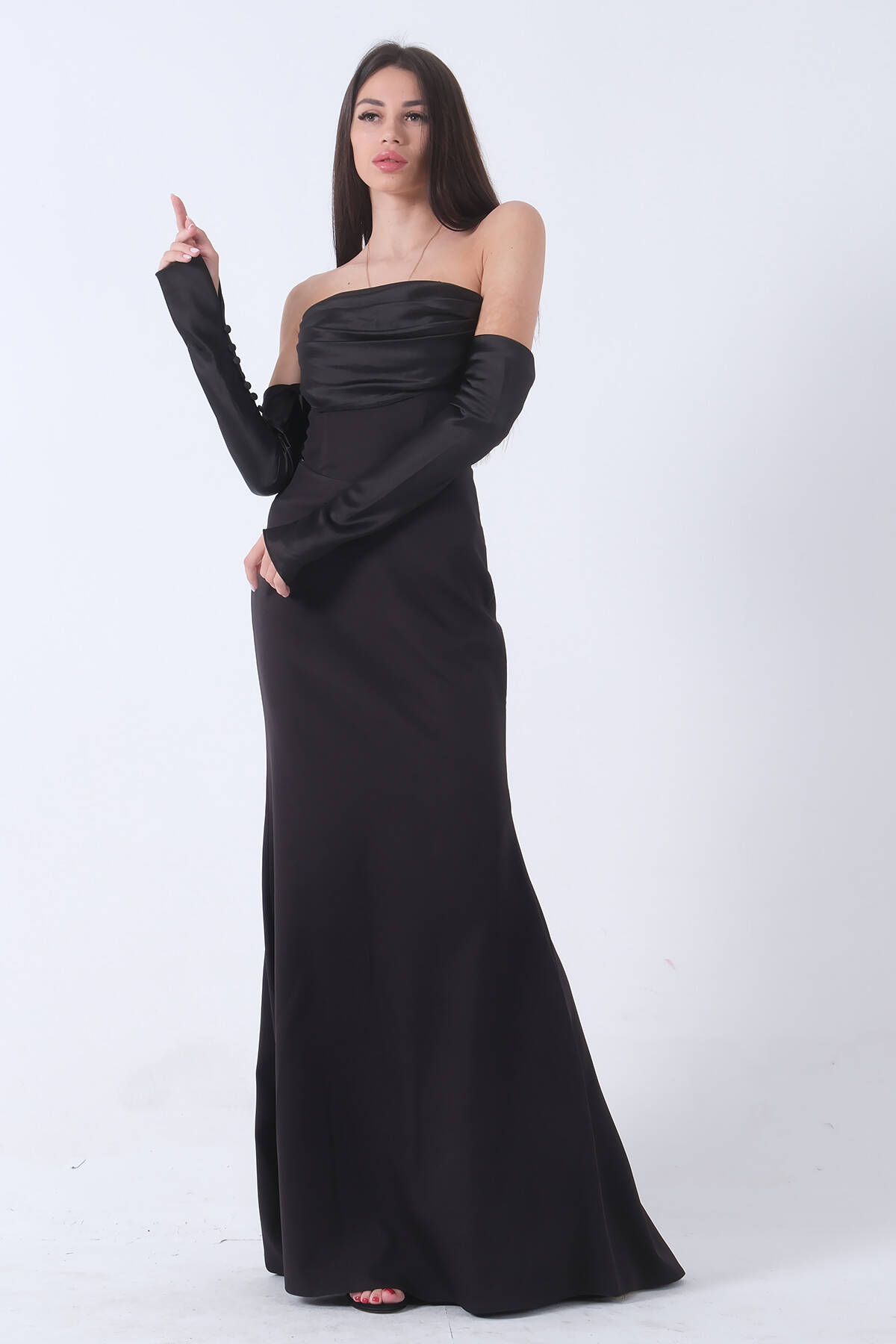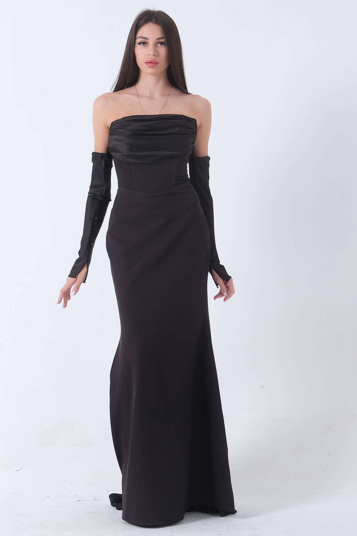 Siyah Drapeli Düğme Detaylı Uzun Abiye 9705361.01