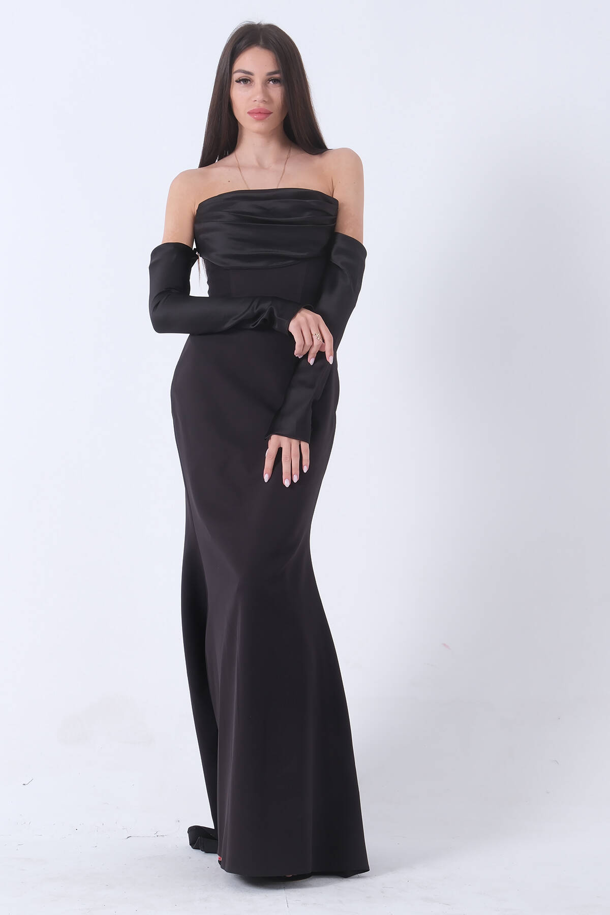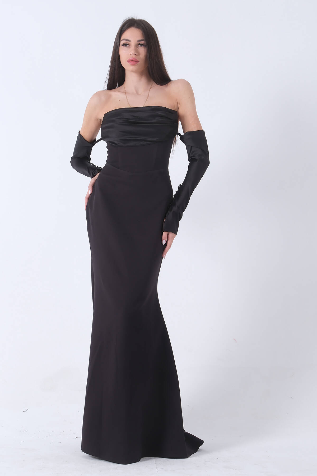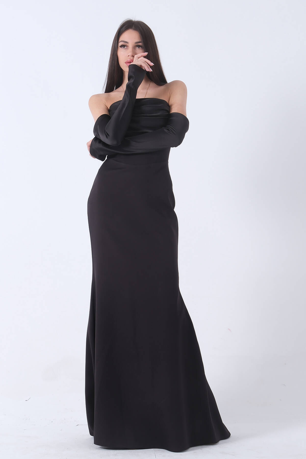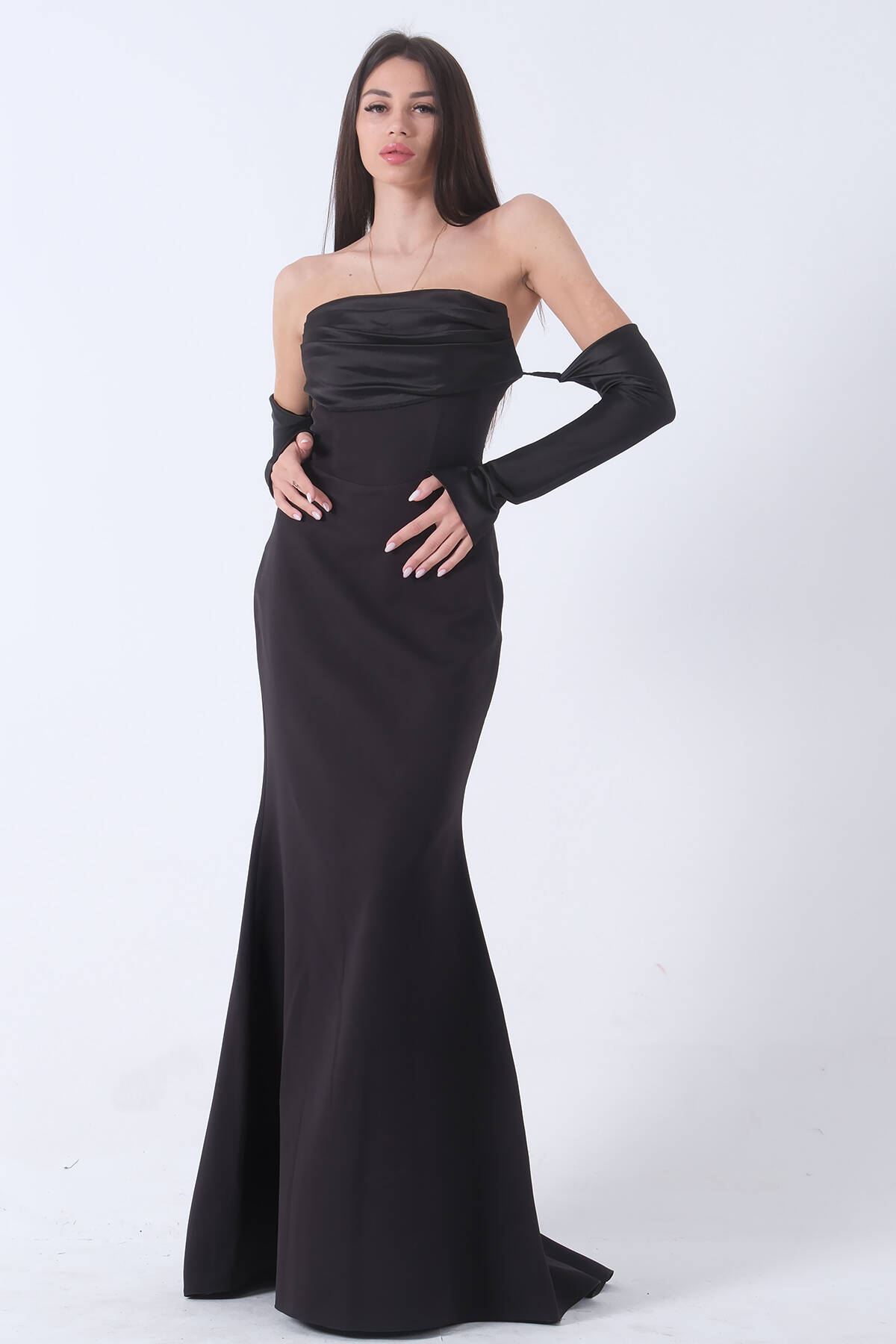 Siyah Drapeli Düğme Detaylı Uzun Abiye 9705361.01