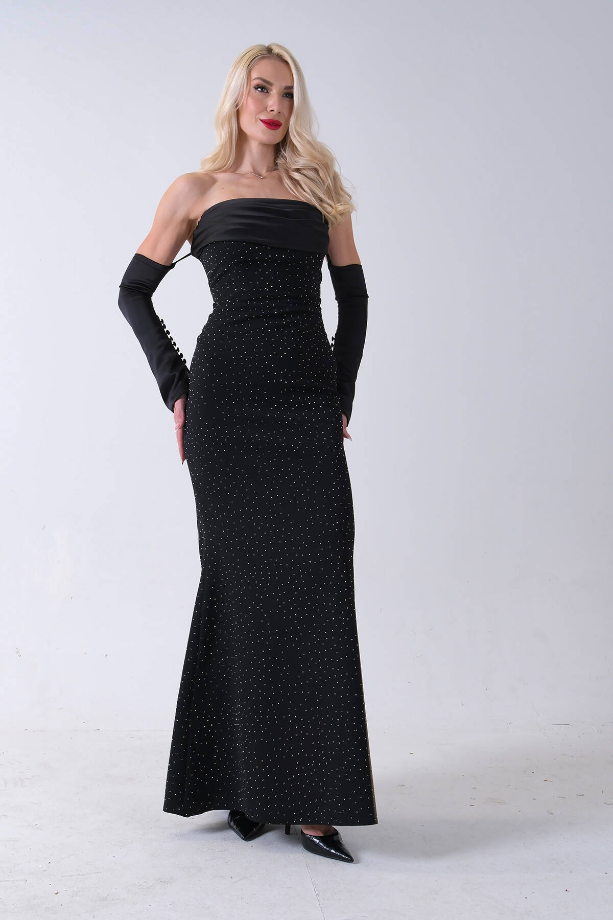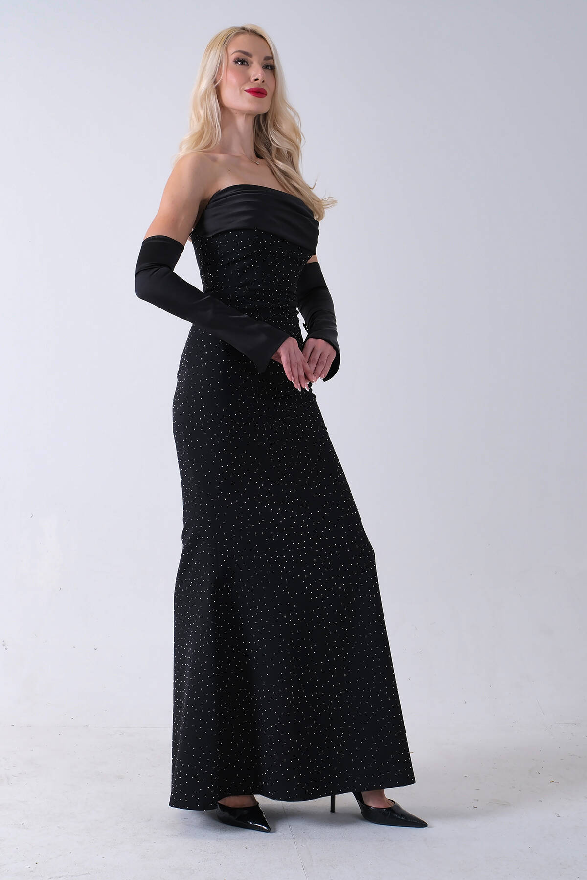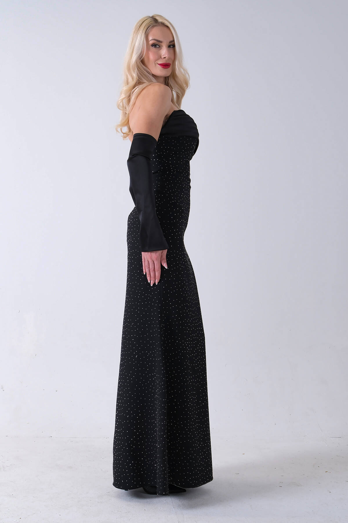 Siyah Drapeli Üzeri Işıltı Nokta Detaylı Kollu Abiye 0802502.01