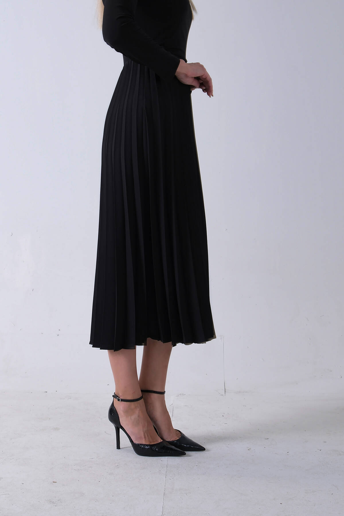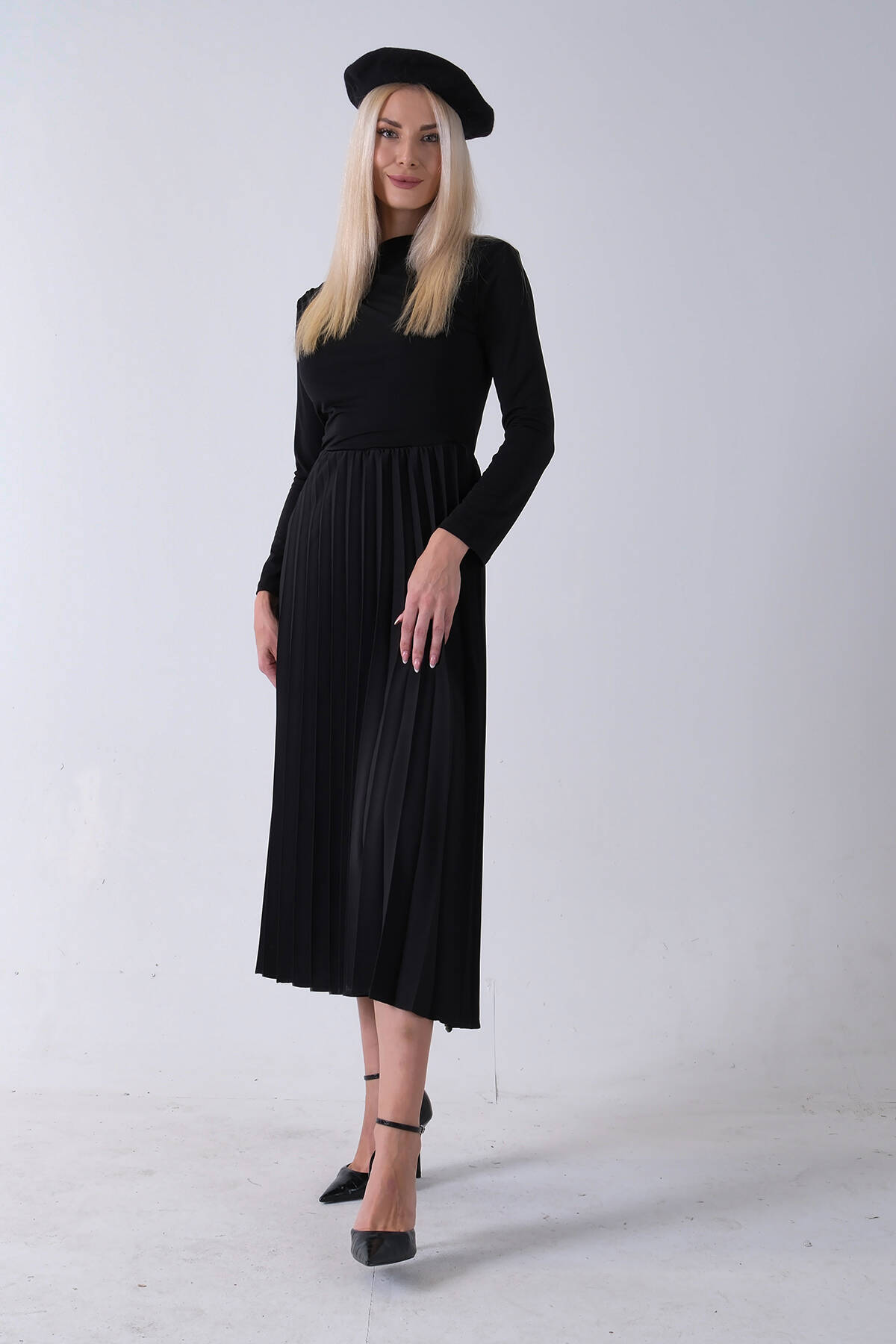 Siyah Eteği Pilise Detaylı Elbise 3975495.01