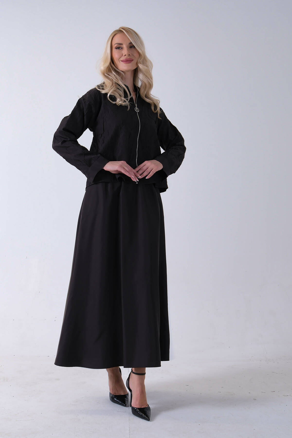 Siyah Fermuar Kapamalı Ceket Üzeri Desenli Etekli Takım 4577259.01