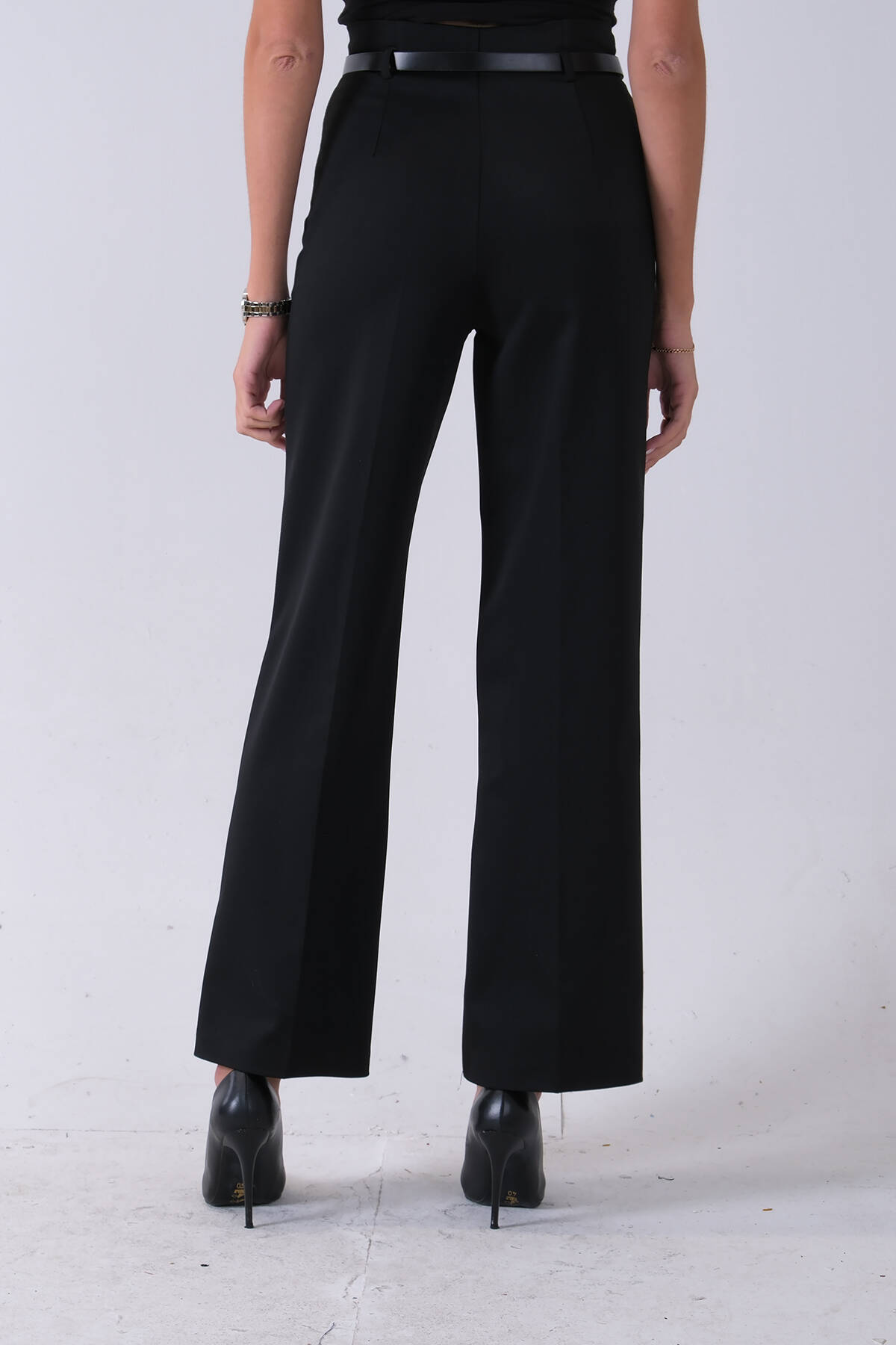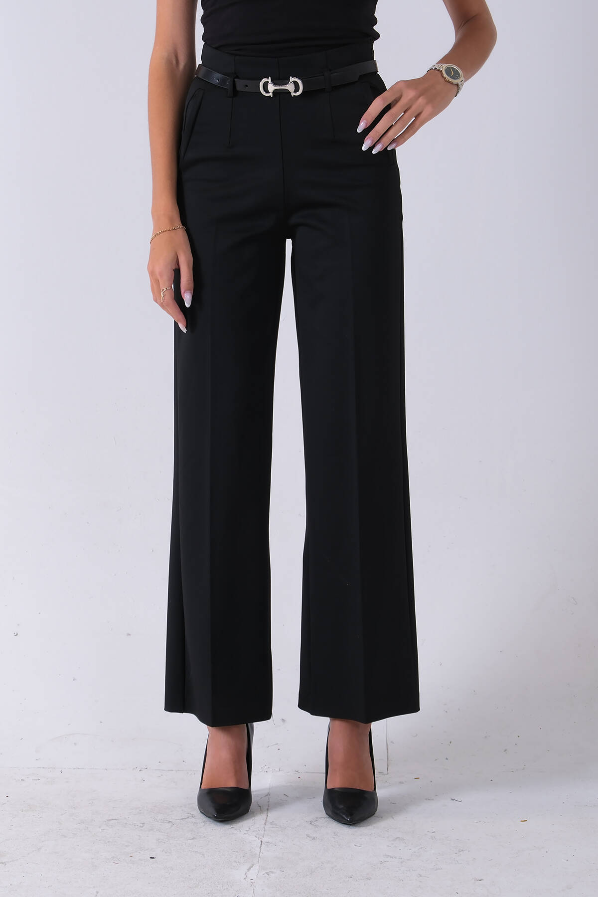 Siyah İnce Kemerli Cepsiz Bol Paça Uzun Pantolon 03030306.01
