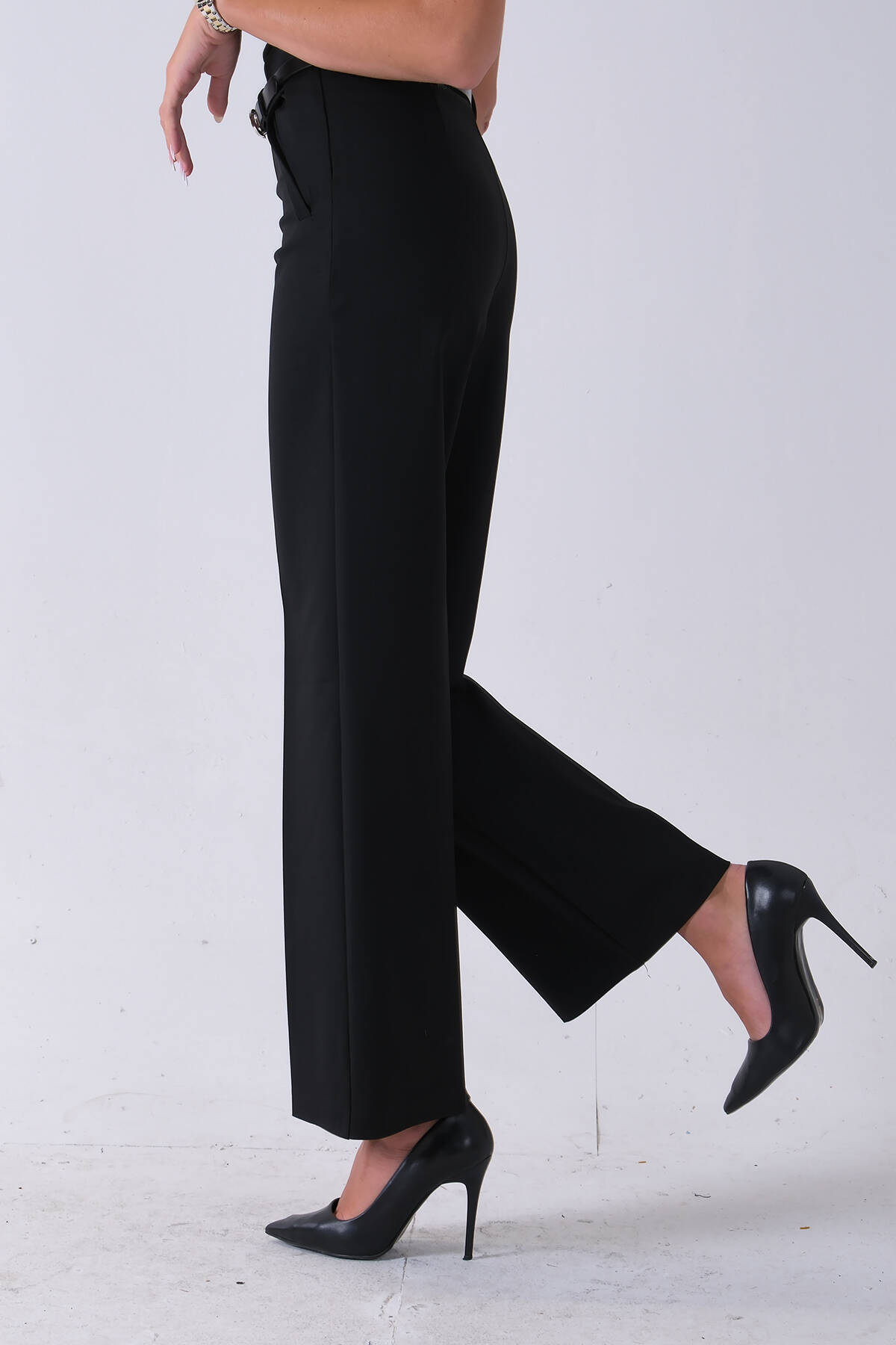 Siyah Fleto Cepli Düz Pantolon 03030309.01