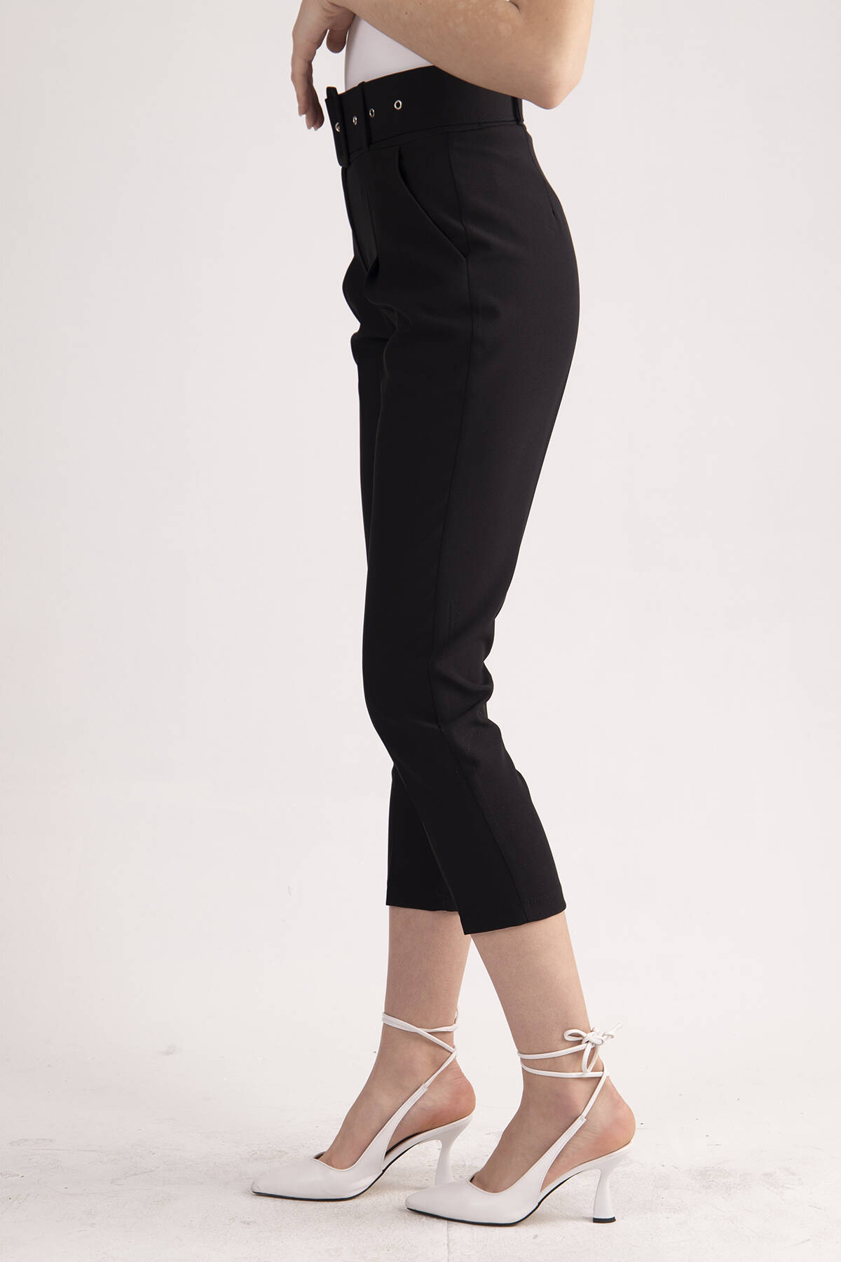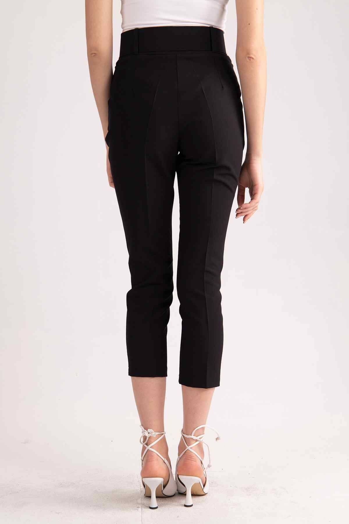 Siyah Geniş Kemerli Bilek Paça Klasik Pantolon 0303553.01