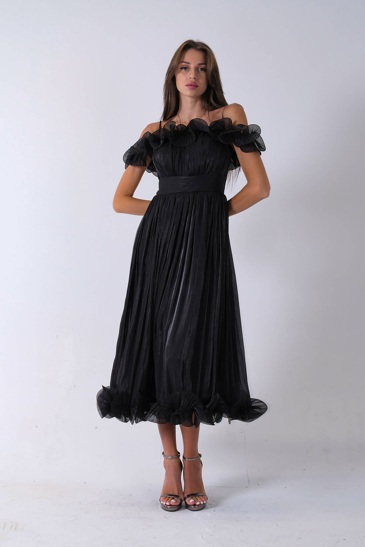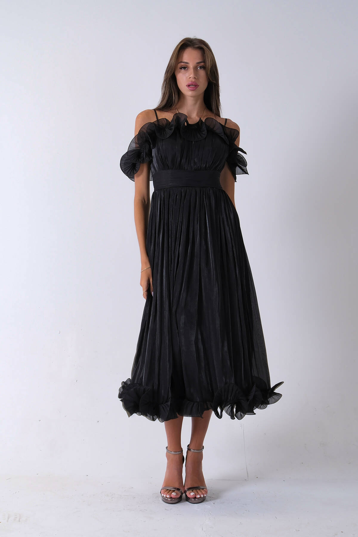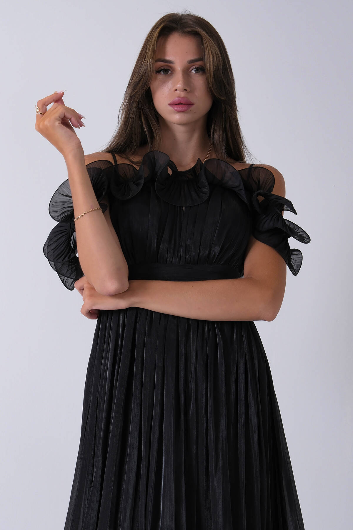 Siyah Göğüs Ve Etek Ucu Çiçek Detaylı Abiye Elbise 9705622.01