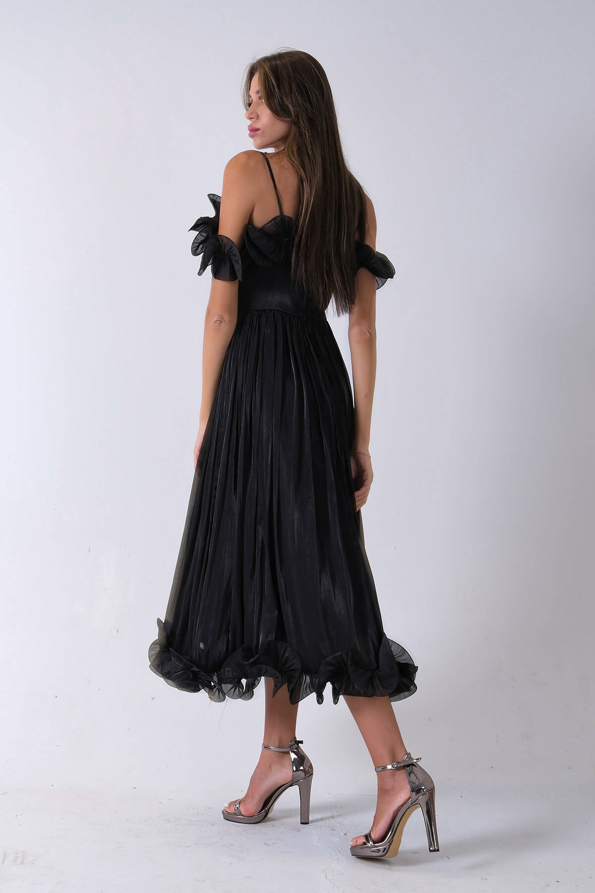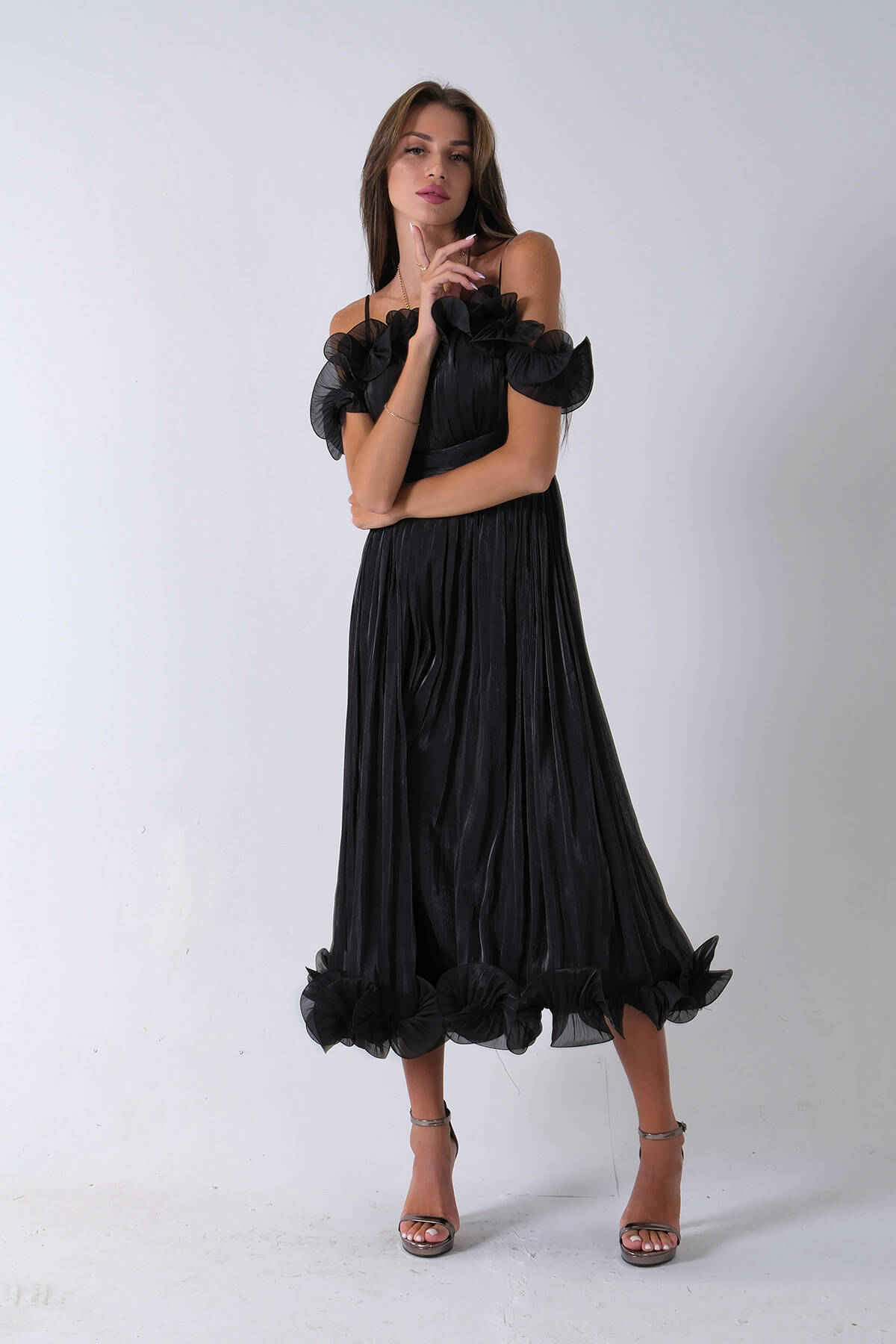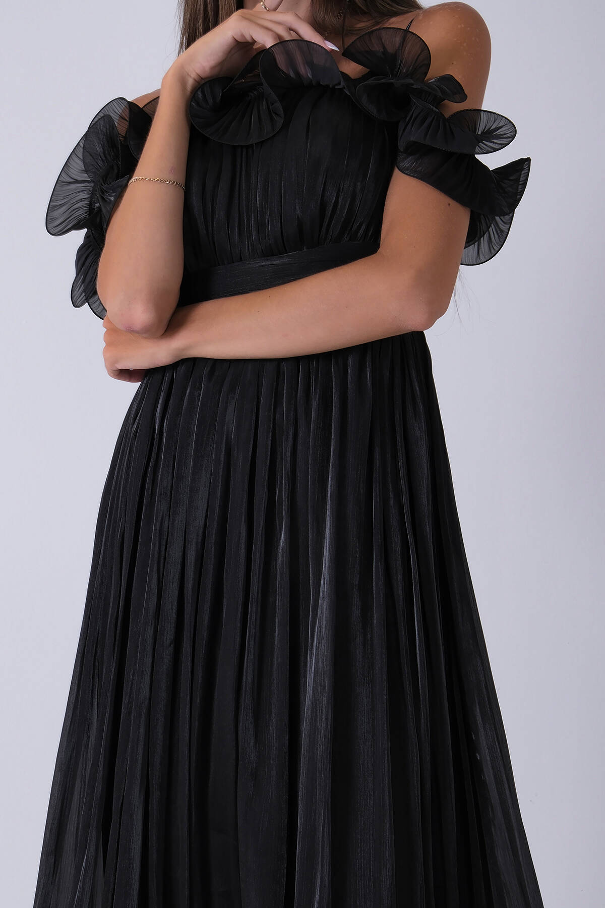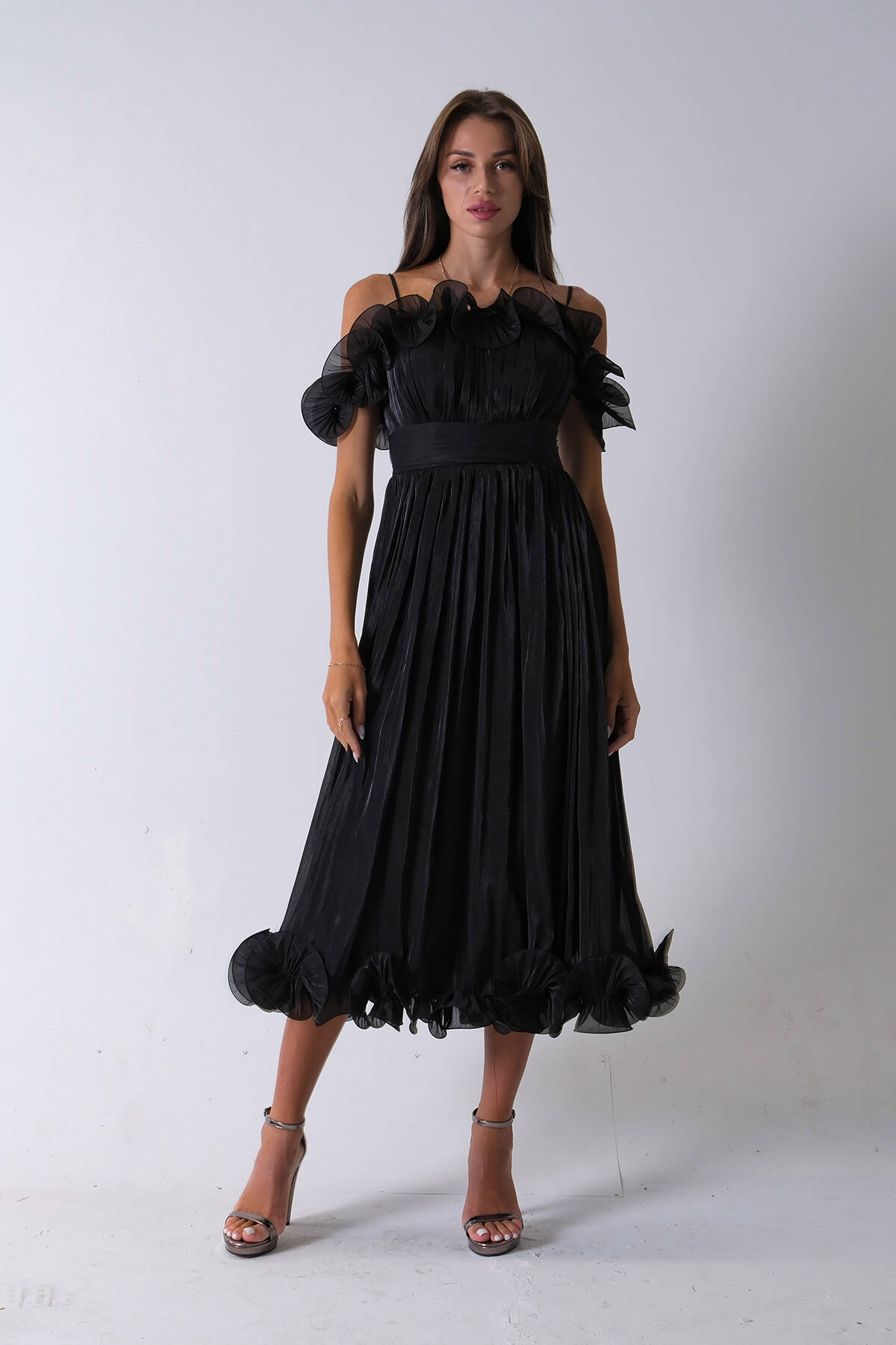 Siyah Göğüs Ve Etek Ucu Çiçek Detaylı Abiye Elbise 9705622.01