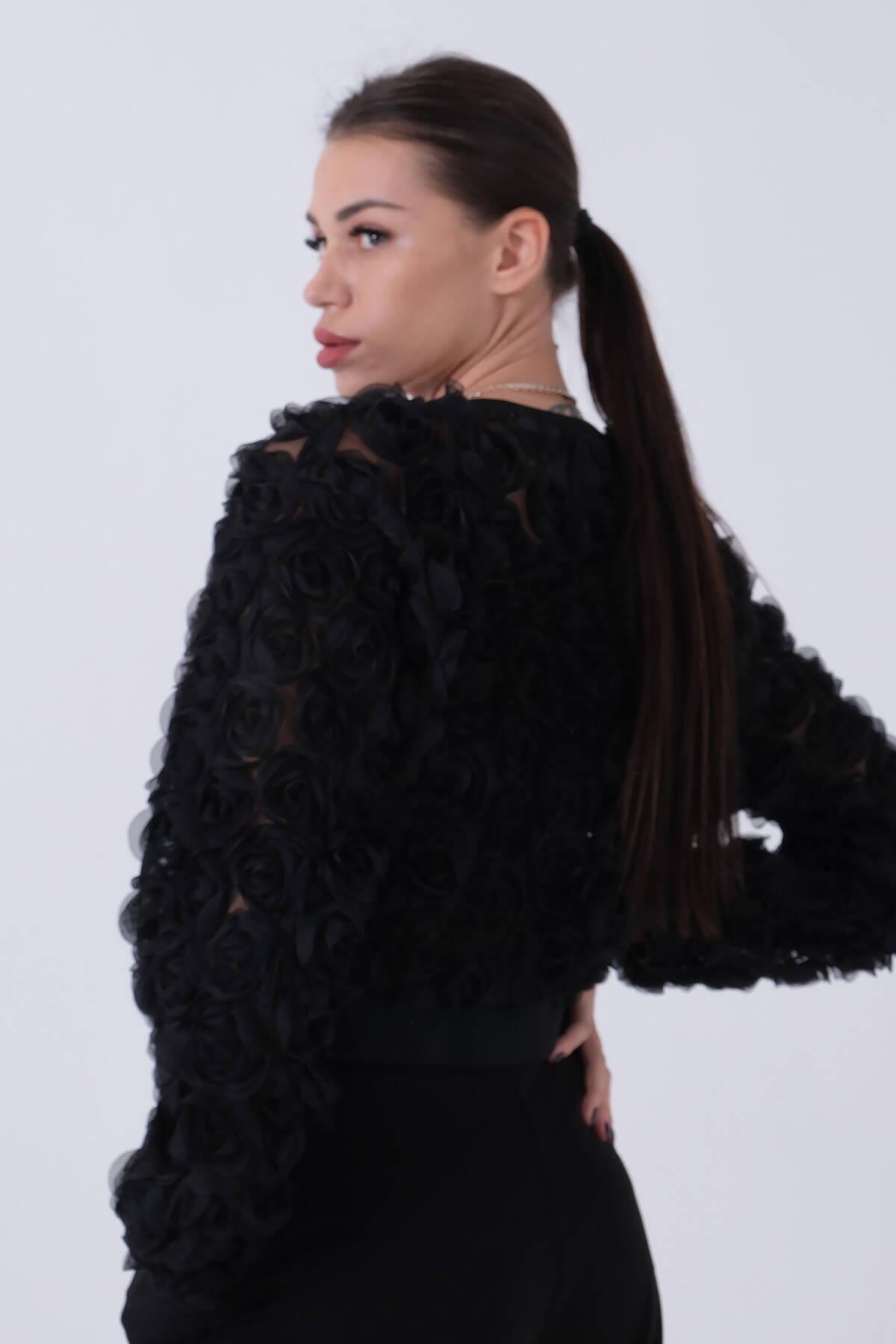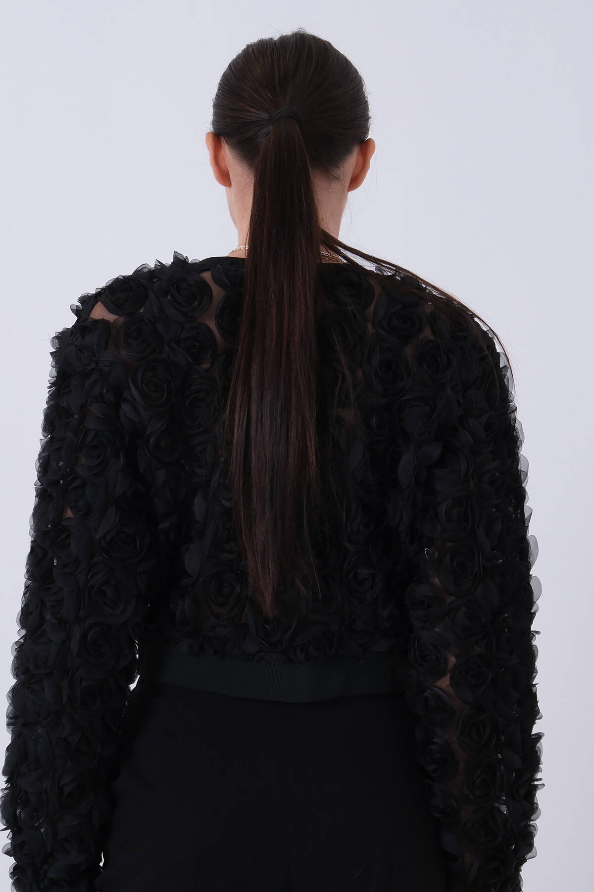Siyah Fermuarlı Oversize Kapüşonlu Çift Cepli Peluş Mont 0108078.01