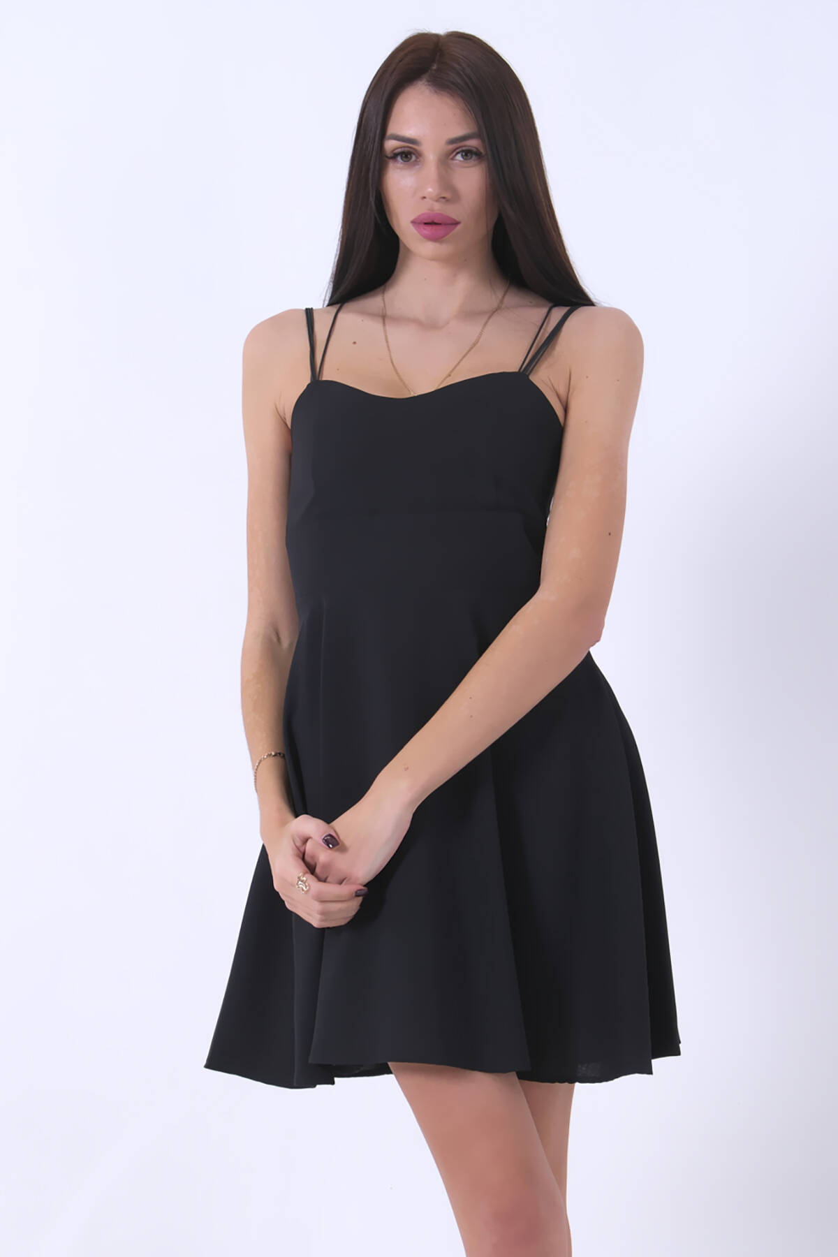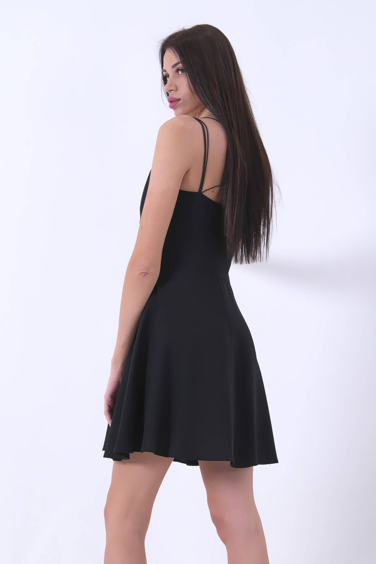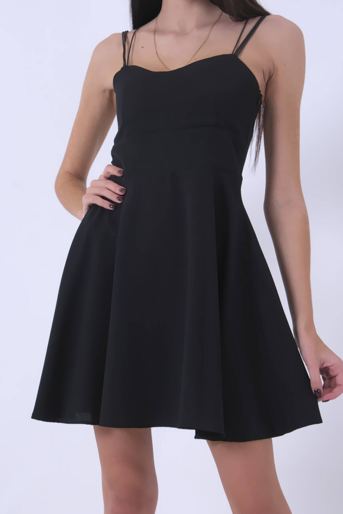 İnce Askılı Sırt Dekolteli V Yaka Kloş Siyah Abiye Elbise & Siyah Mezuniyet ElbisesiESNEK DEĞİLDİR! KREP KUMAŞTAN ÜRETİLMİŞTİR. TAM KALIPTIR. SIRTTAN FERMUARLIDIR. YERLİ MİLLİ ÜRETİM Manken Ölçüleri Boy: 168 cm Kilo: 55 kg Göğüs: 87 cm Bel: 63 cm Kalça: 93 cm Bacak Boyu: 105 cm Ürün Kumaş Türü: KREP KUMAŞ - ESNEK DEĞİLDİR Numune Beden: SMALL 36 Ürün Boyu: 86/88 cm Not : Üründe aksesuar yoktur. SORU / CEVAP : DOĞRU BEDEN TERCİHLERİ KONUSUNDA DESTEK İÇİN BİZE SORU / CEVAP KISMINDAN AKLINIZA TAKILANLARI İLETEBİLİRSİNİZ.