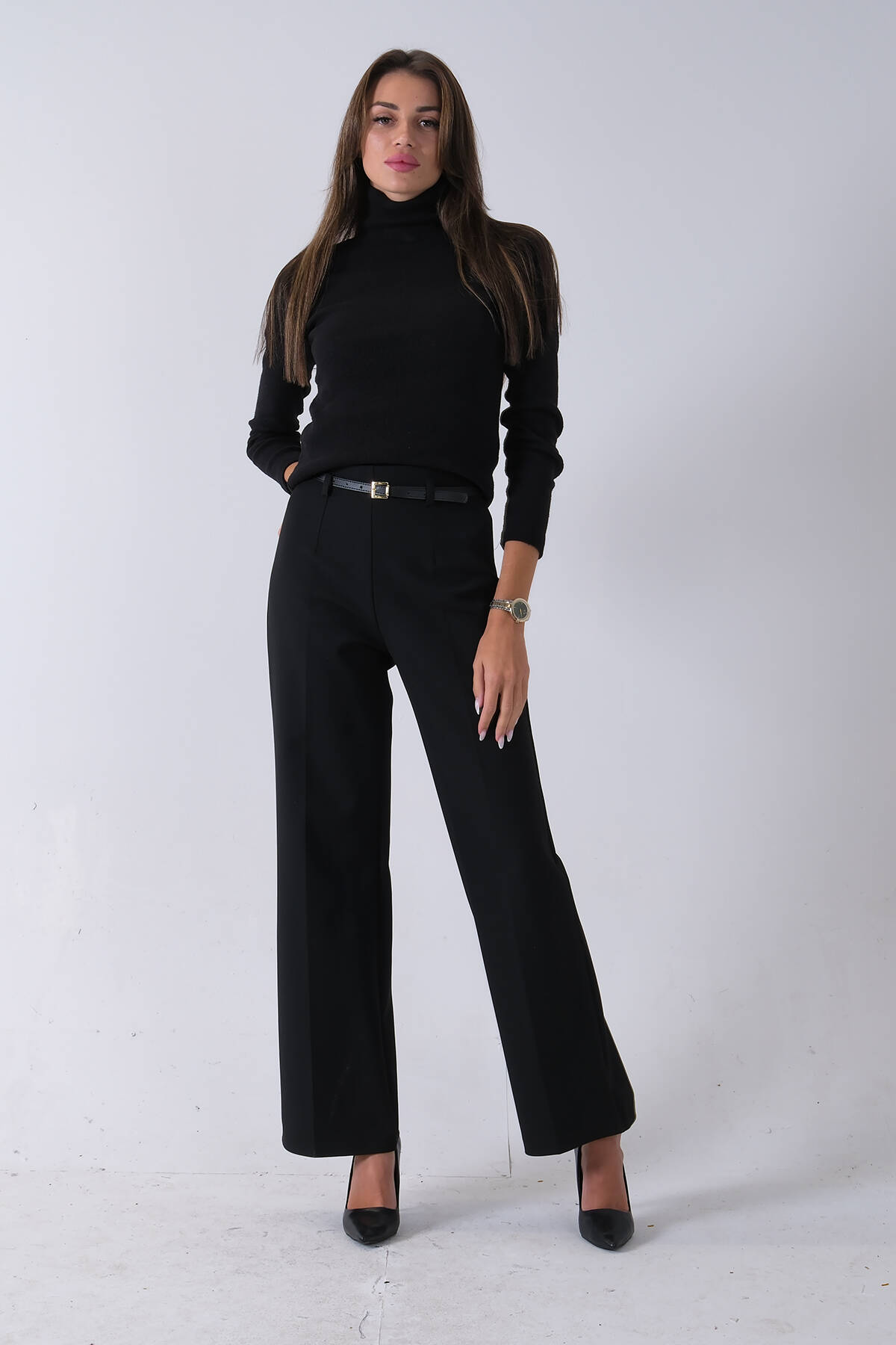 Siyah İnce Kemerli Cepsiz Bol Paça Uzun Pantolon 03030306.01