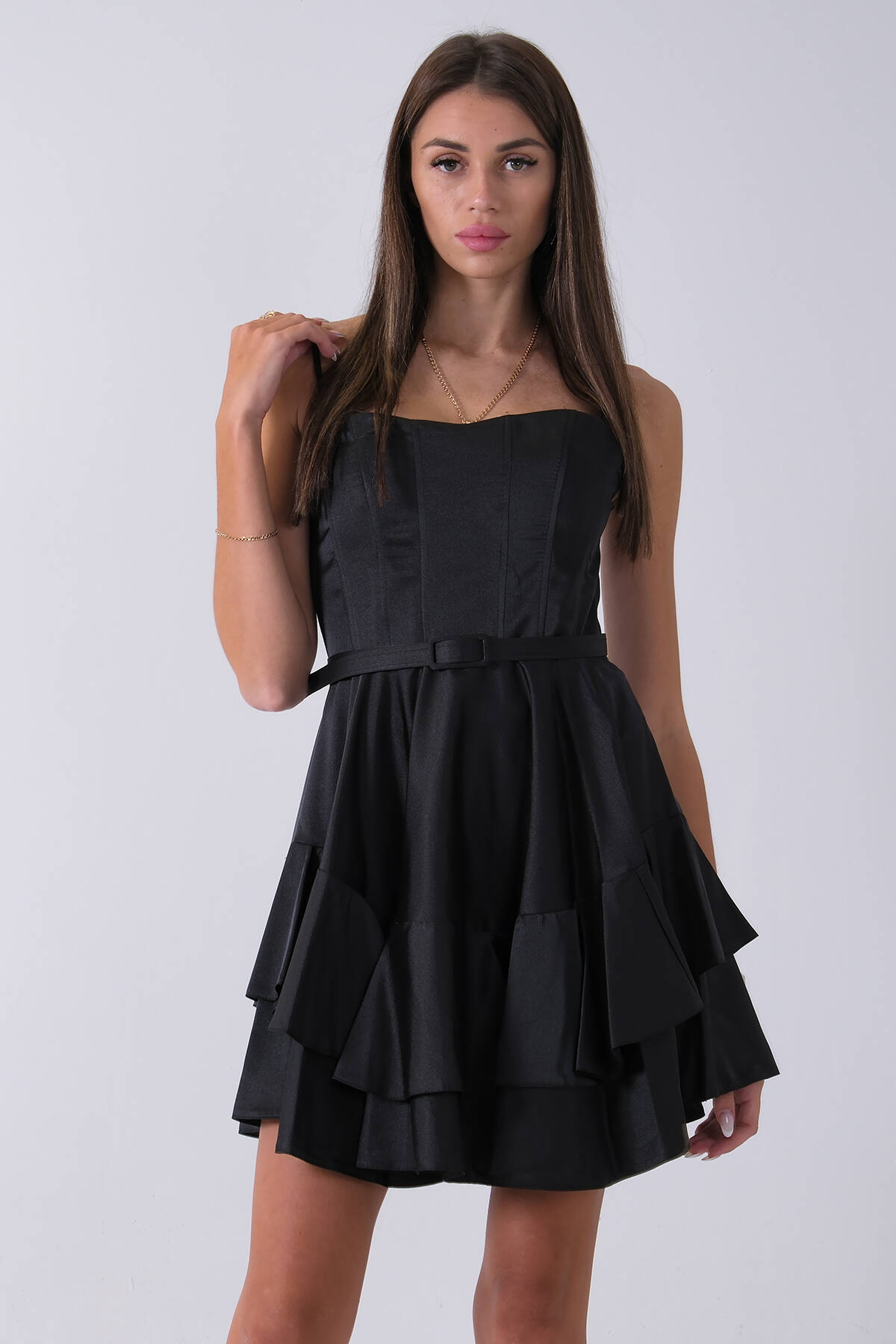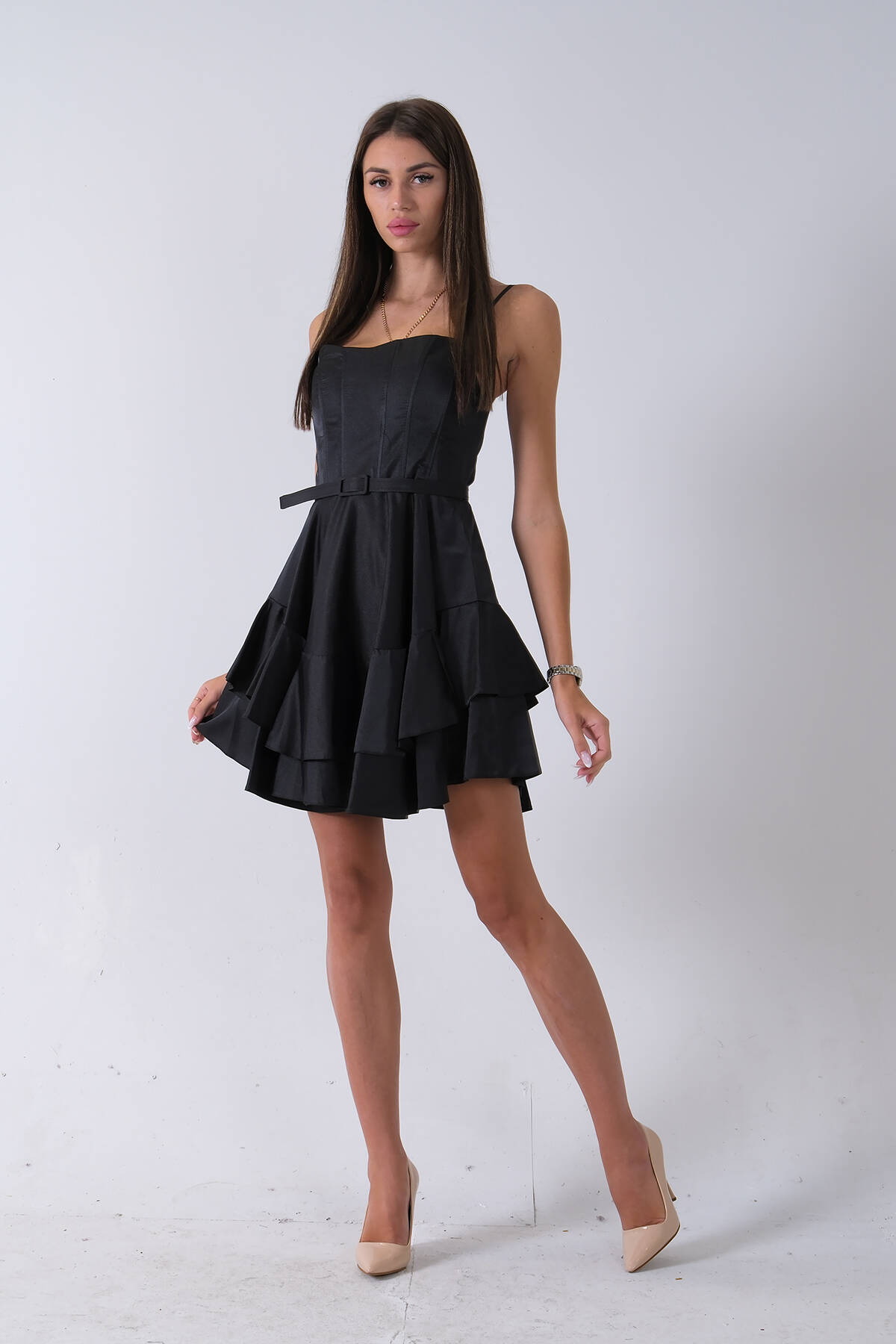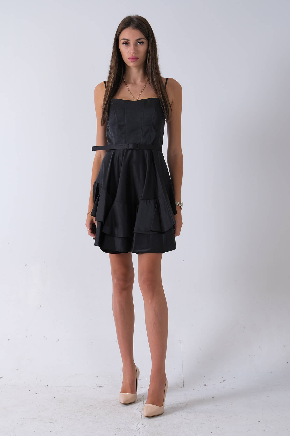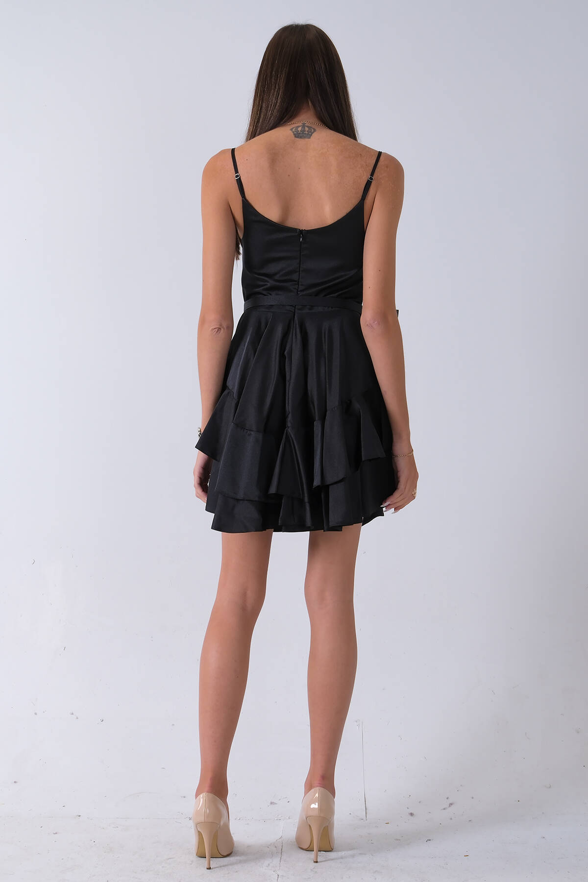 Siyah İp Askılı Bel Kemer Bağlamalı Mini Boy Abiye 0802004.01