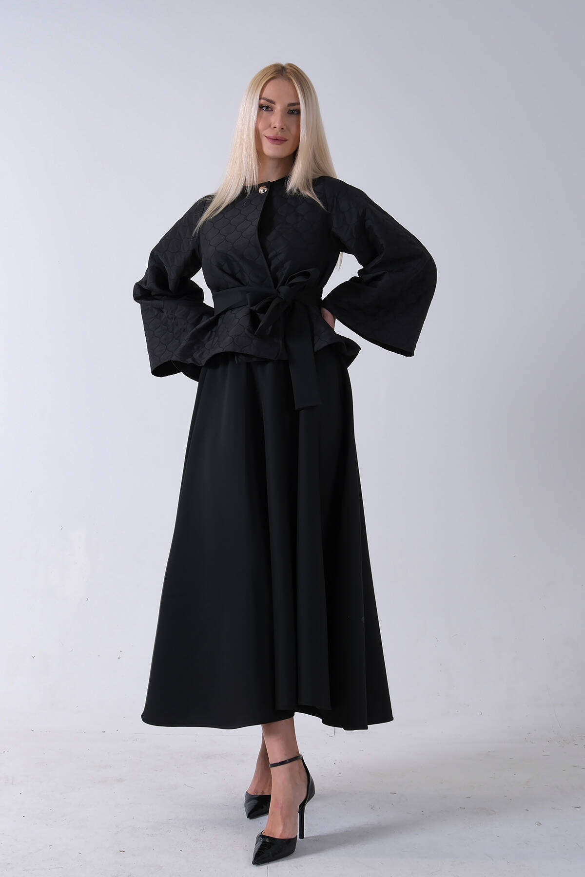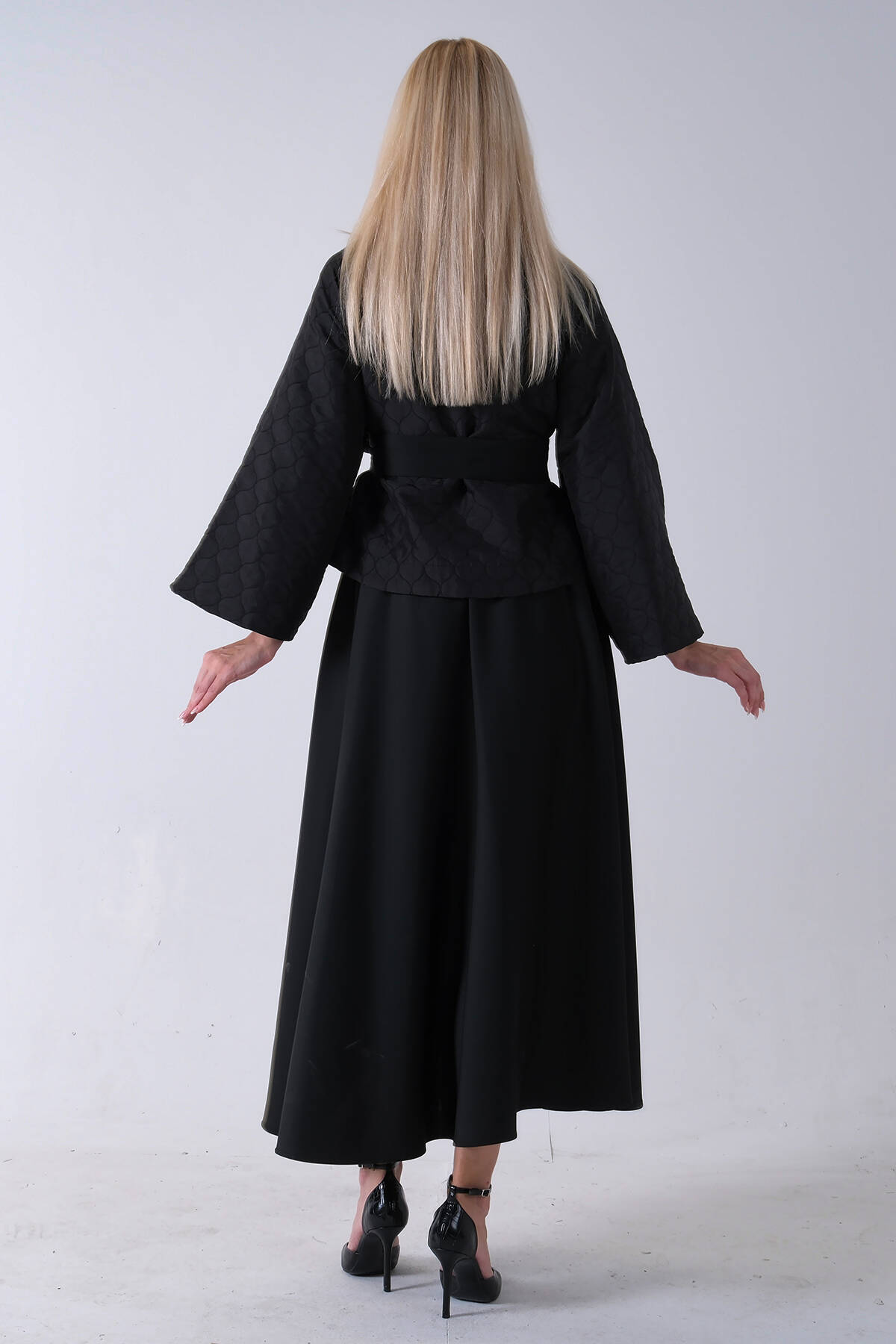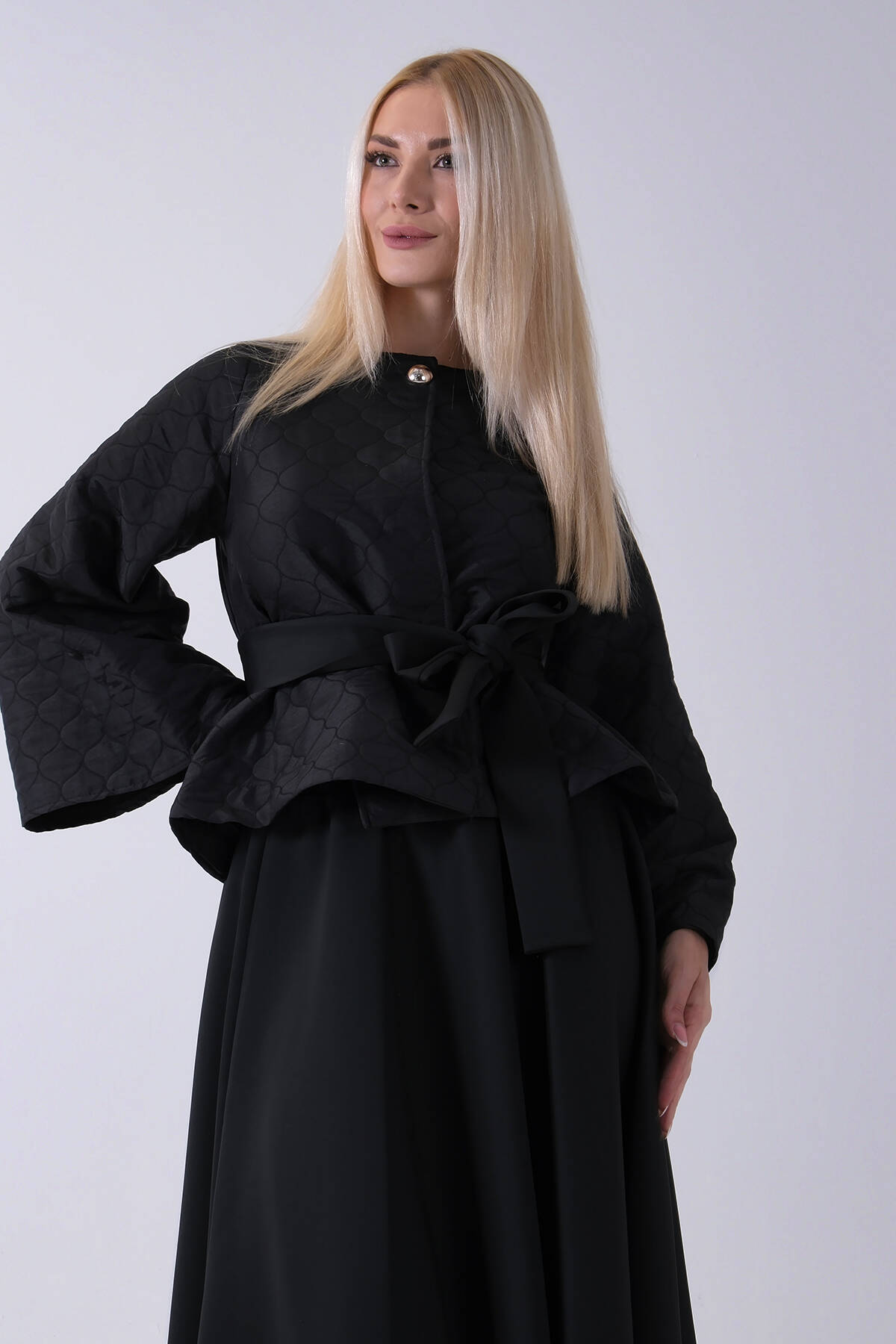 Siyah Kapitone Desenli Ceket Etekli Scuba Takım 5303163.01